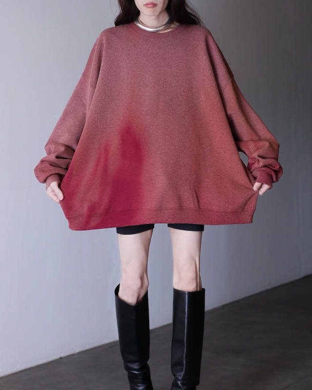 ボロのフェードスウェット! 絶妙なレッド~ピンクのカラーリングが アーティスティックにフェードしており 唯一無二の見た目に仕上がっております。 たっぷりとしたオーバーシルエットも魅力で 身幅71cmのワイドかつ着丈が長すぎない リブの効いた丸いシルエットがとにかく可愛いです。 スウェットなので 気楽に着れるしアイデンティティもあって凄く良いと思います。 写真のように ロングブーツでスタイリングするのもおすすめですー! ⚫︎color fade red ※お使いのモニター環境により、画像の色味が実物と異なって見える場合がございます。 ⚫︎fabric 50% cotton, 50% polyester ⚫︎size size : 2XL 肩幅 73cm / 身幅 71cm / 袖丈 60cm / 着丈 69cm model : 165cm 46kg ※測定における若干の誤差はご了承下さいませ。 ⚫︎condition B S : deadstock (未使用品) A : good condition (使用感の少ない美品) B : usually condition (通常のusedアイテム) C : damage (ダメージあり) ※尚、実店舗でも販売しております為、掲載されていても時間差で在庫切れになる場合がございます。予めご了承下さい。 Instagram : @oo_koenji