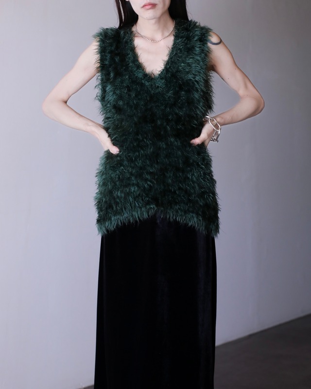 1990s fur × knit "mofu mofu" hi-neck design vest