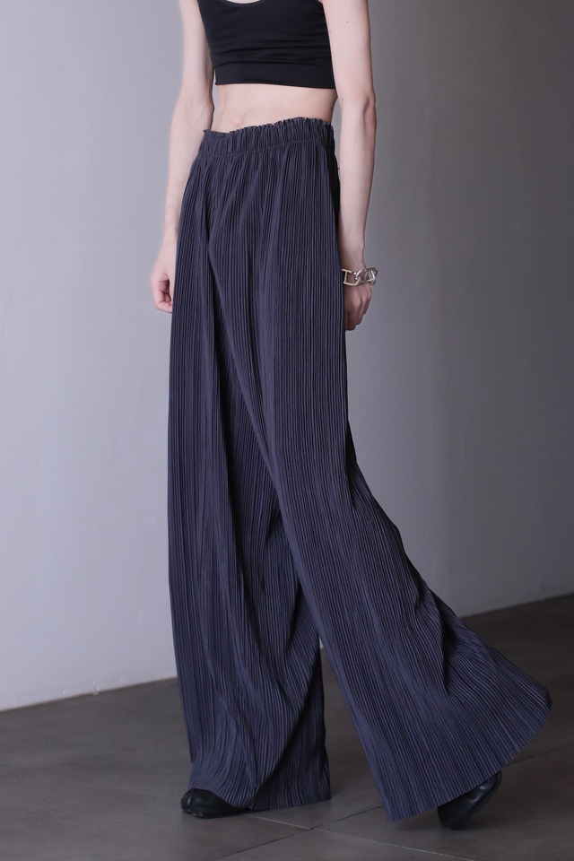 "tsutsu" 3D wide straight pleats pants deep gray color