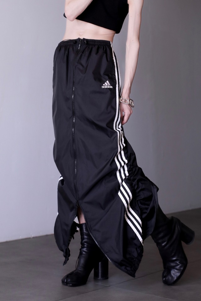 1990s adidas nylon center zip tech drawstring design maxi skirt