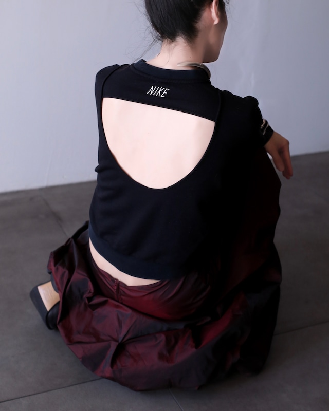 NIKE "senaka paccaan" hangetsu kurinuki design short length sweat top