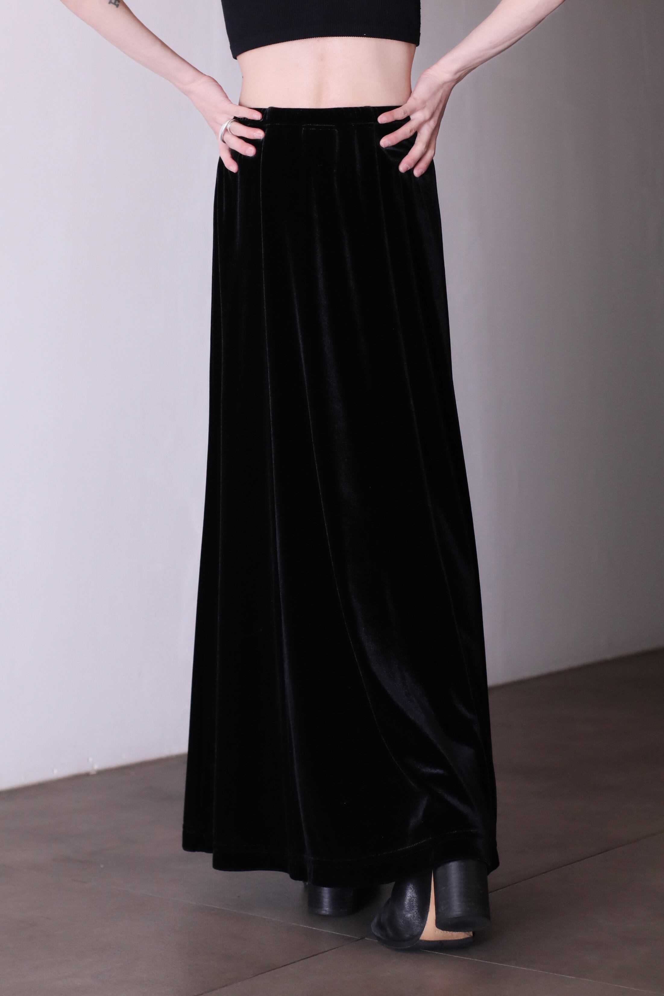 1990s black velours "daikei" maxi length skirt Made In USA