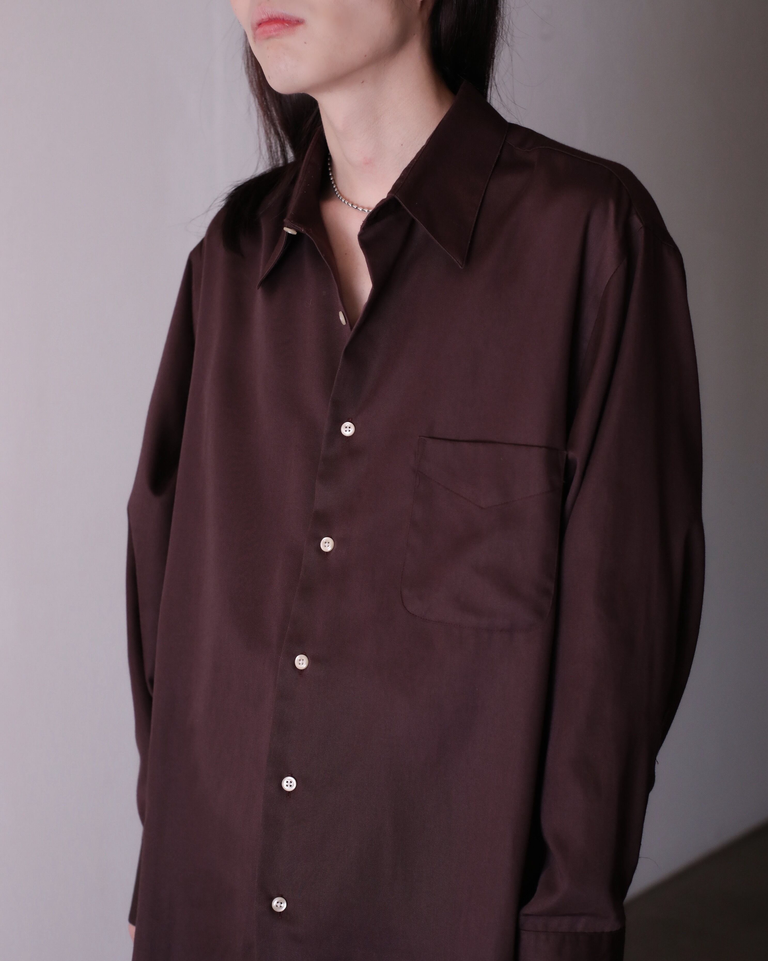 1990s~ cotton satin brown color dress shirt oversized