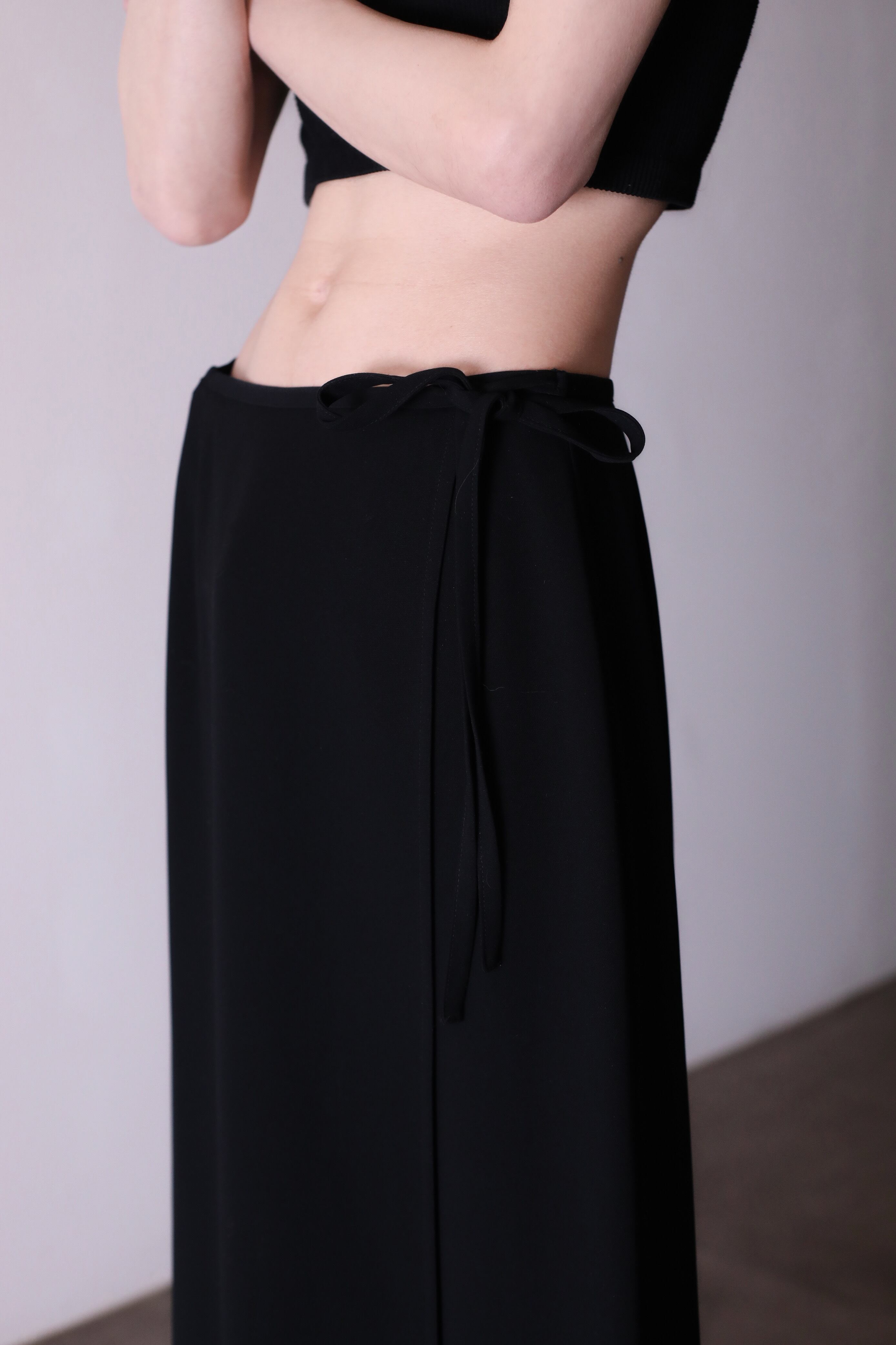 こちらはスラックスのデザインをスカートに落とし込んで更にラップデザインにしたようなニュアンスでモードな印象。