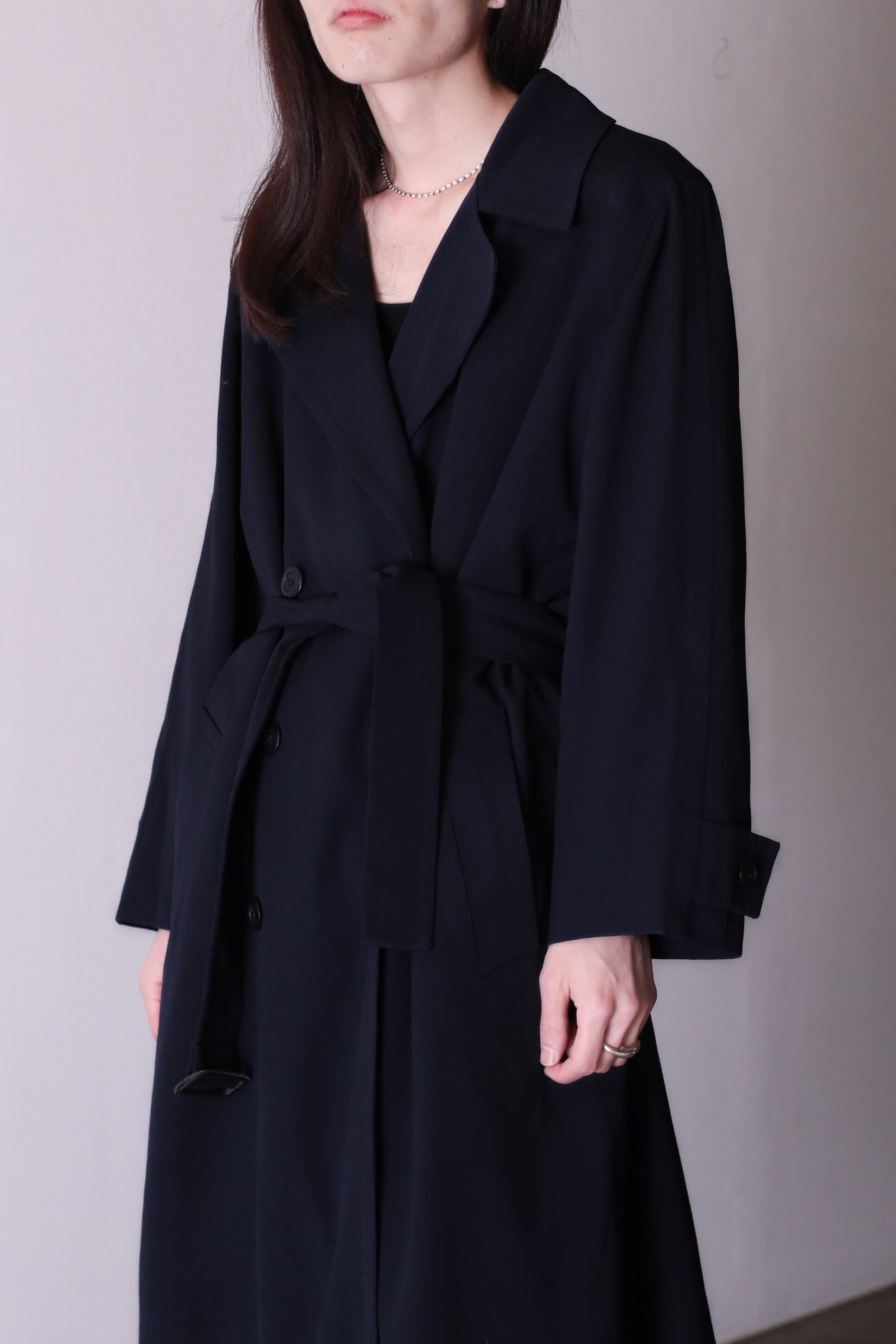 1980s~ wool gabardine double breasted belted design trench coat Made In USA
