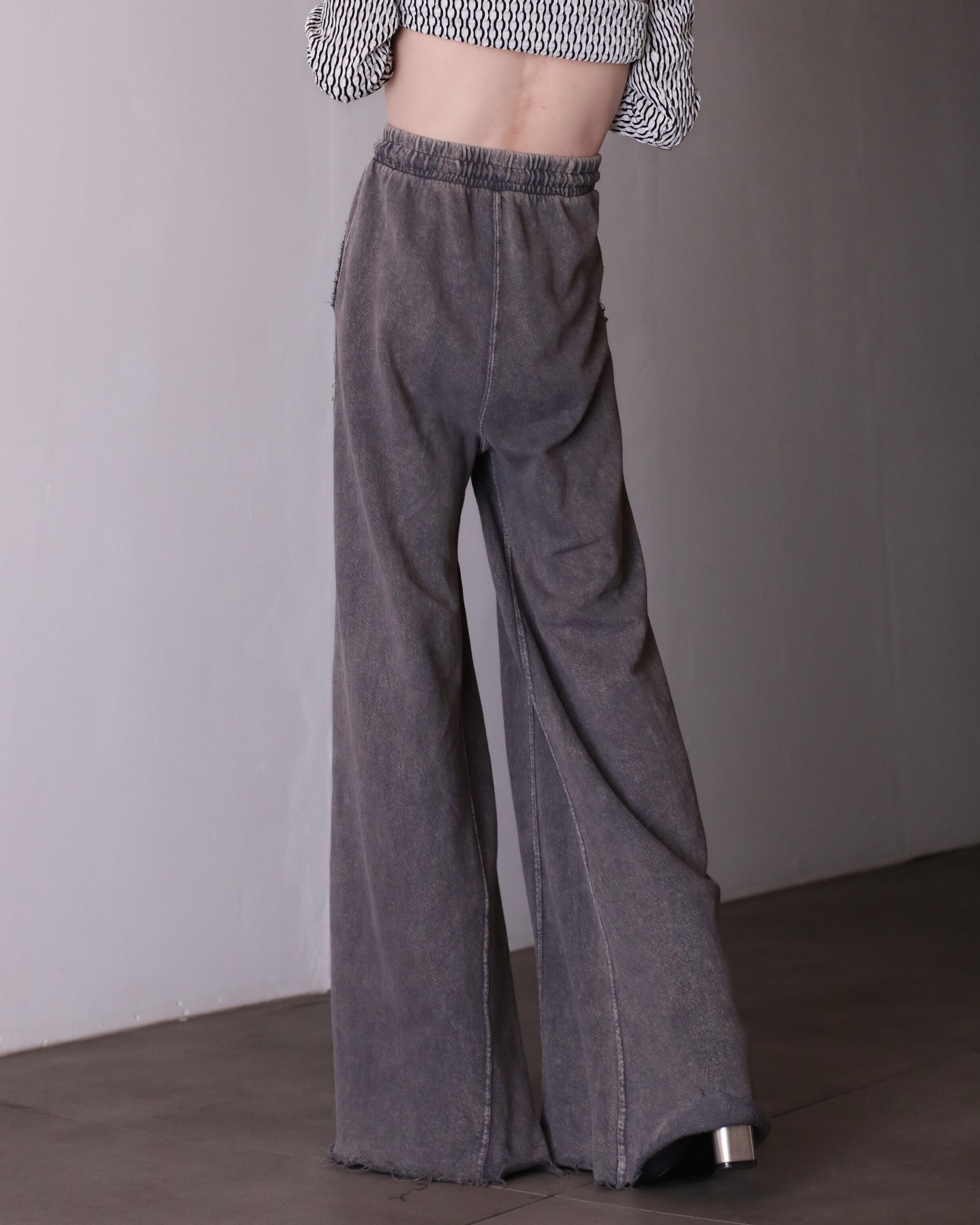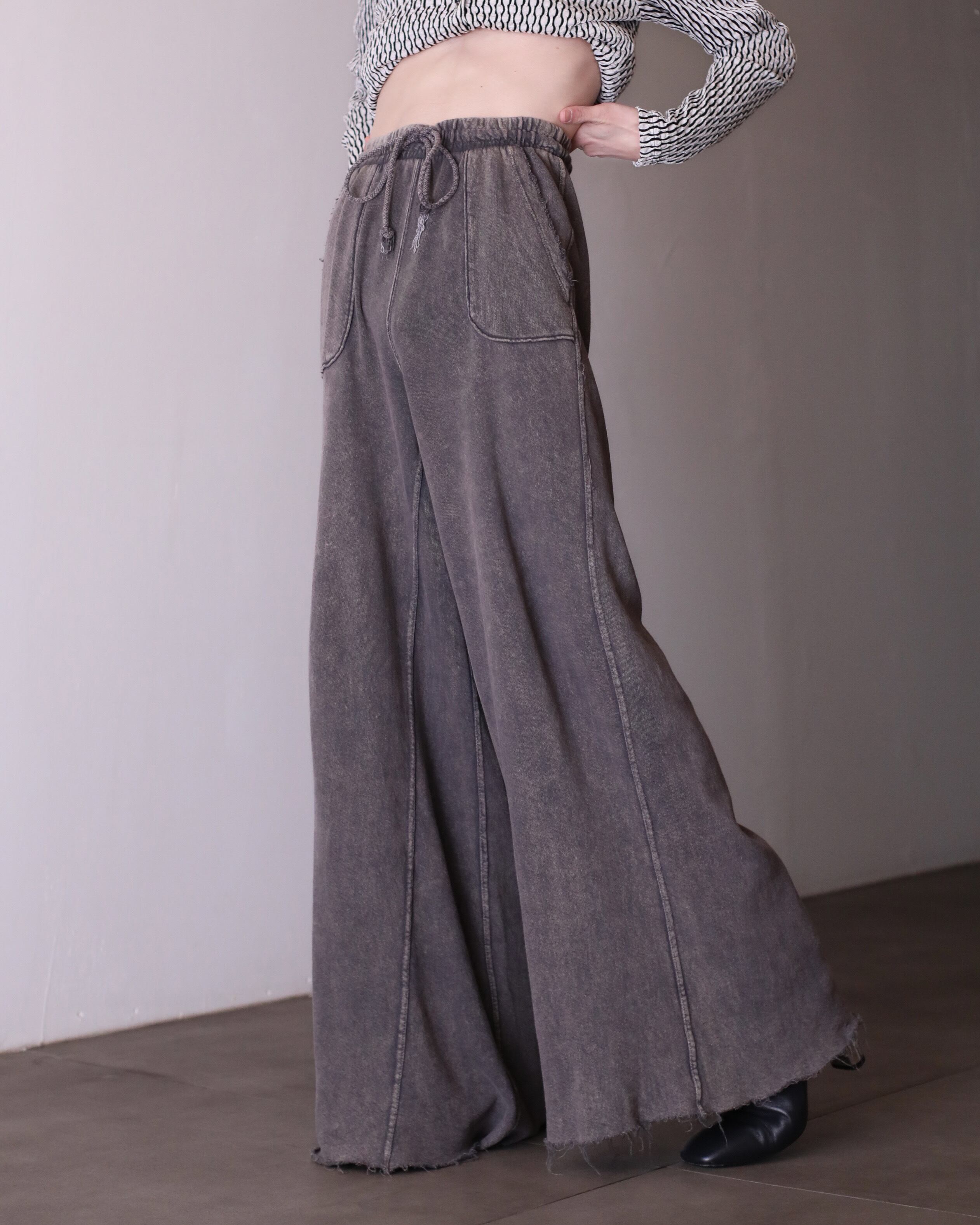 hi-waist wide baggy silhouette fade smoke brown color sweat pants