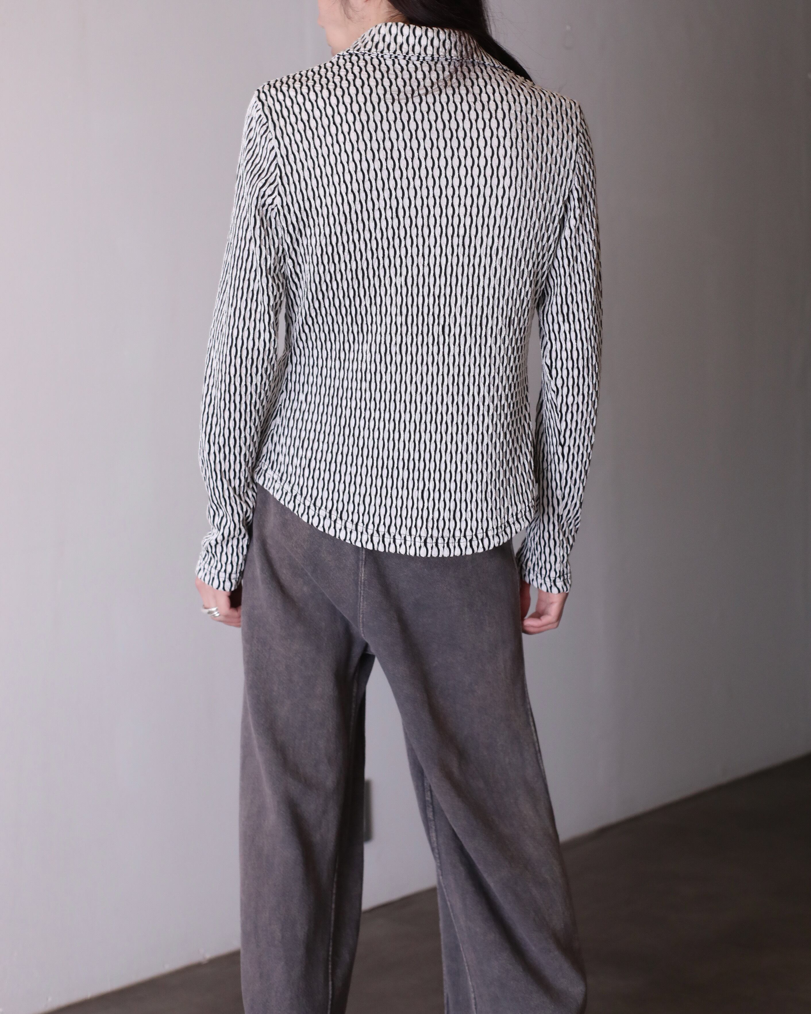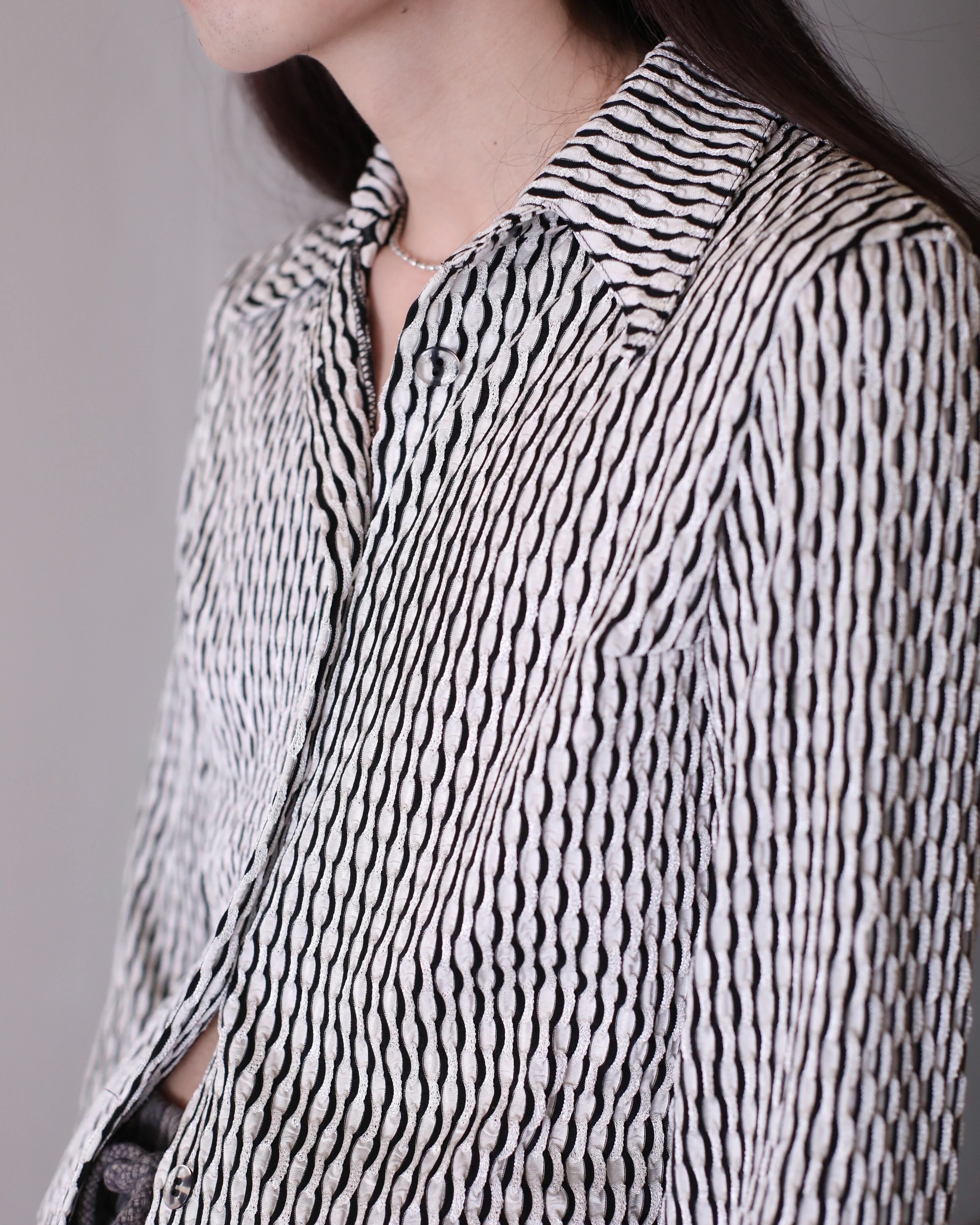 1980s 3D textile white × black color design shirt Made In USA
