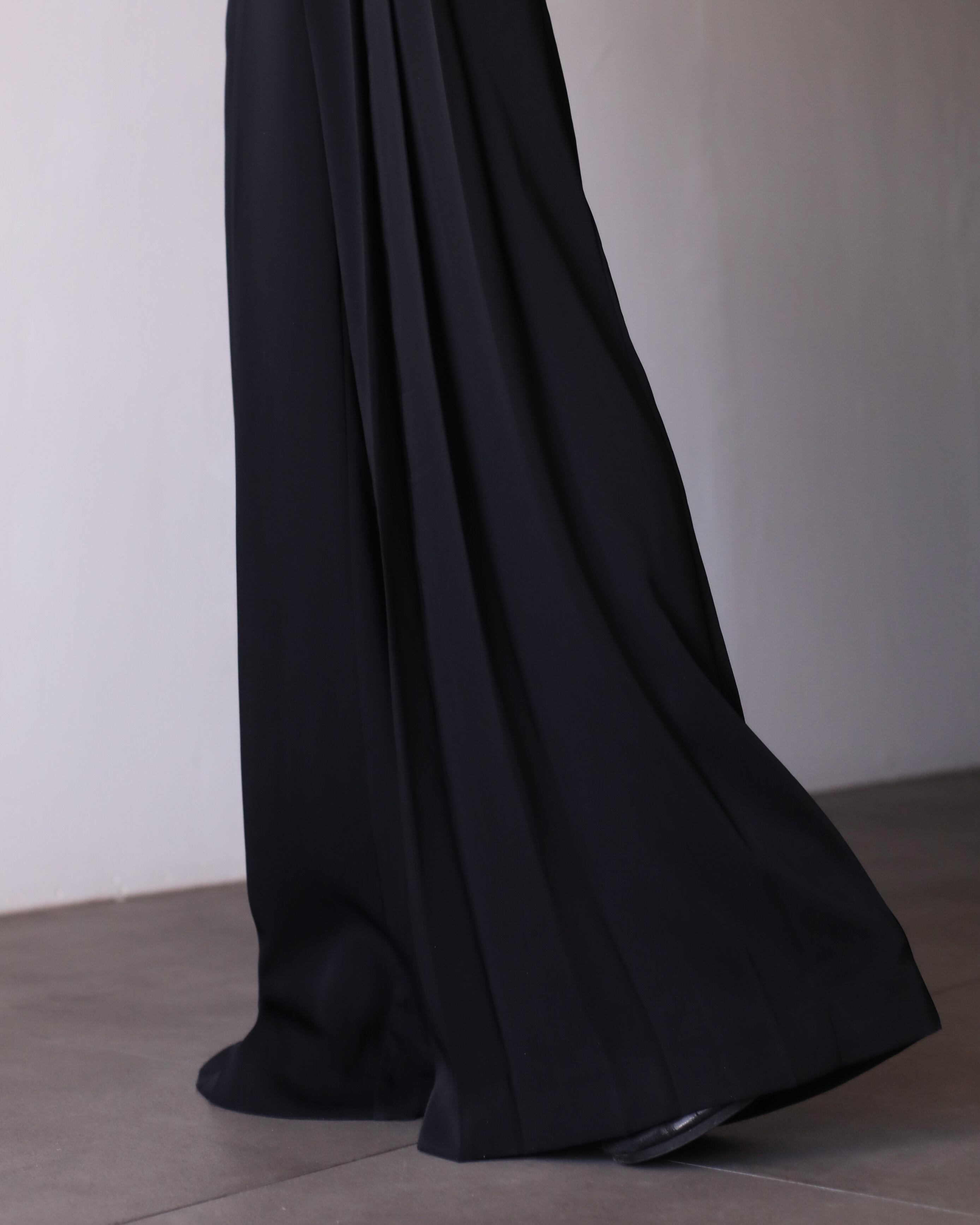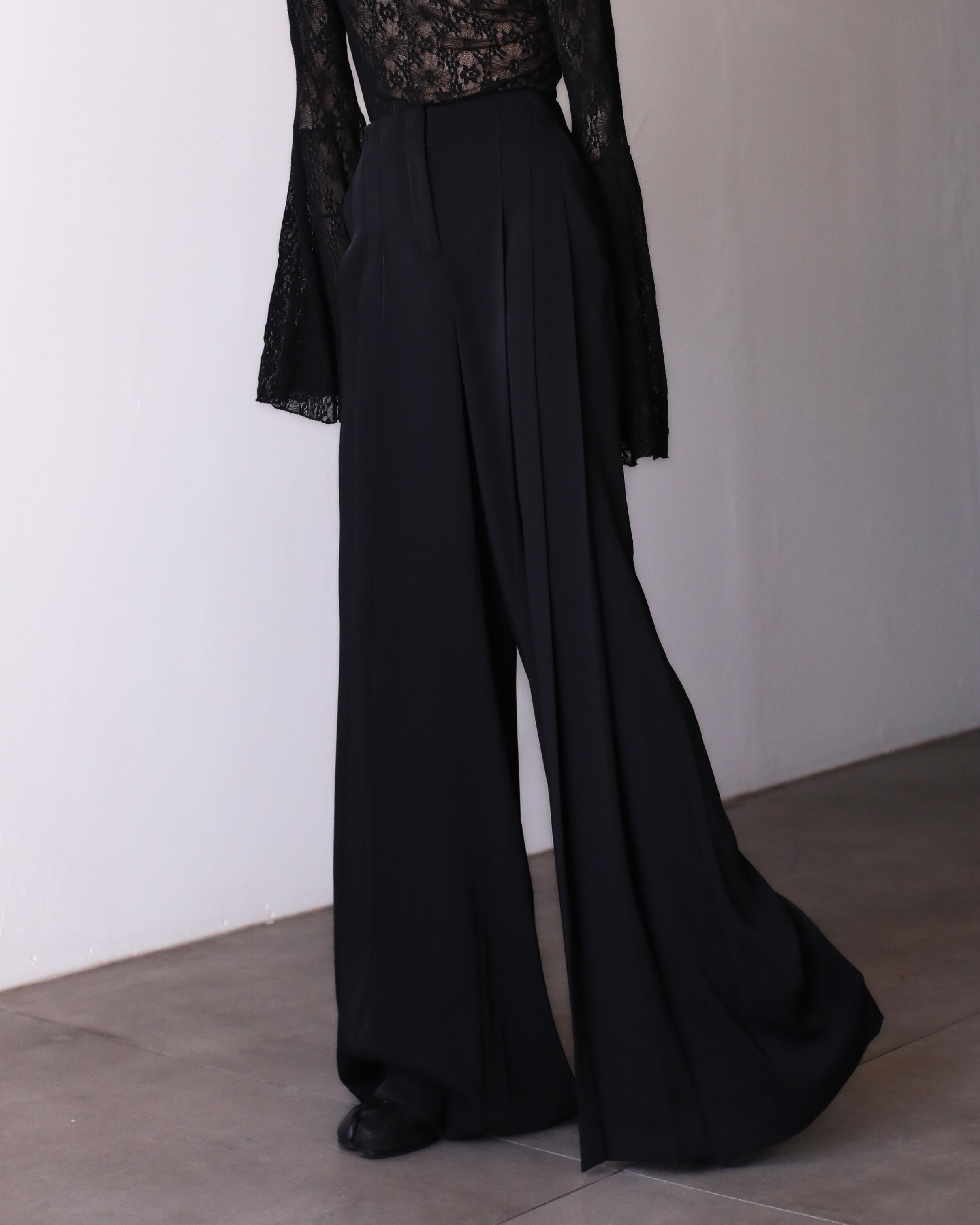 super long accordion pleats tuck design hi-waist wide straight slackstoromi fabric
