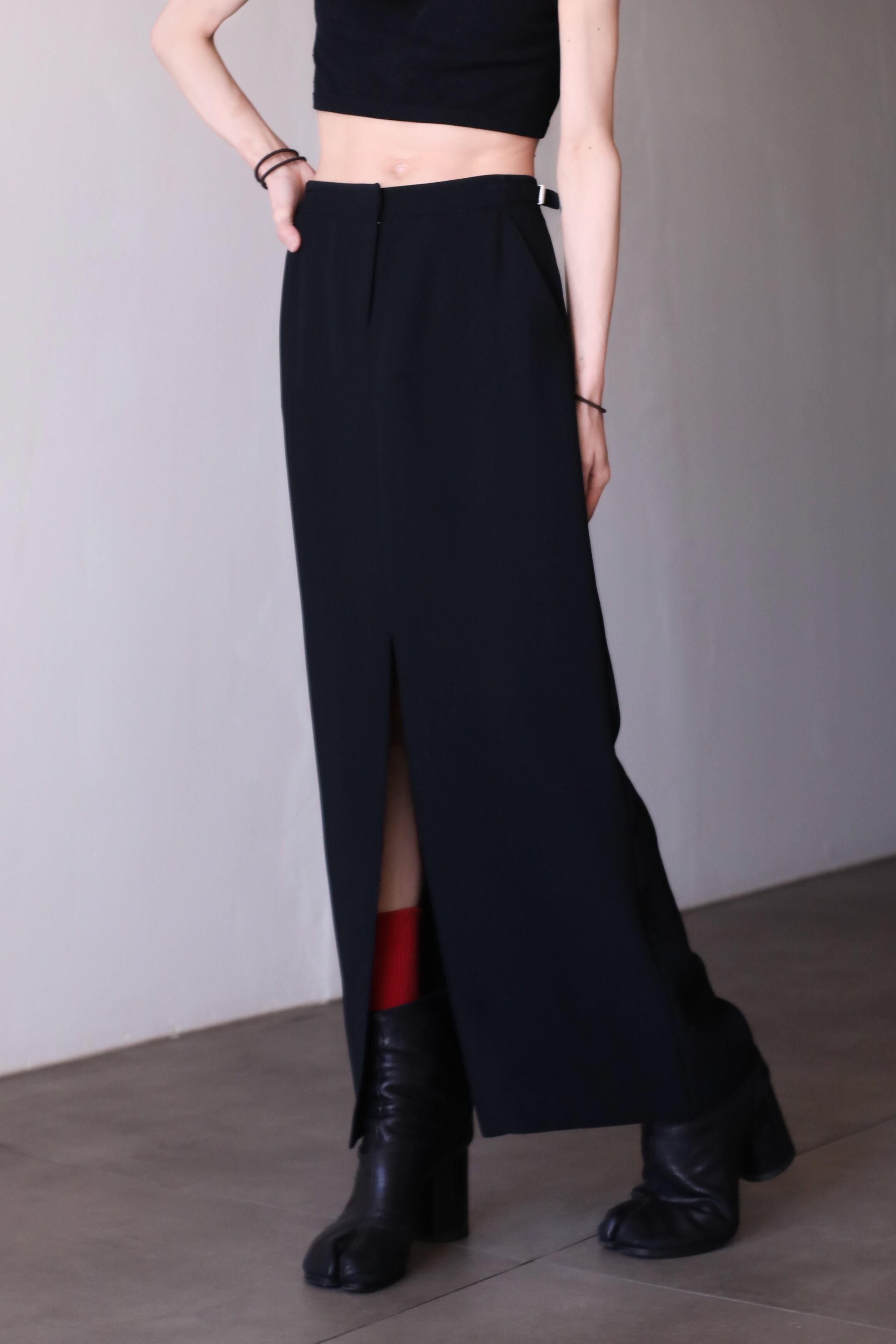 1990s deep slit design side metal cinch trousers skirt maxi length toromi fabric