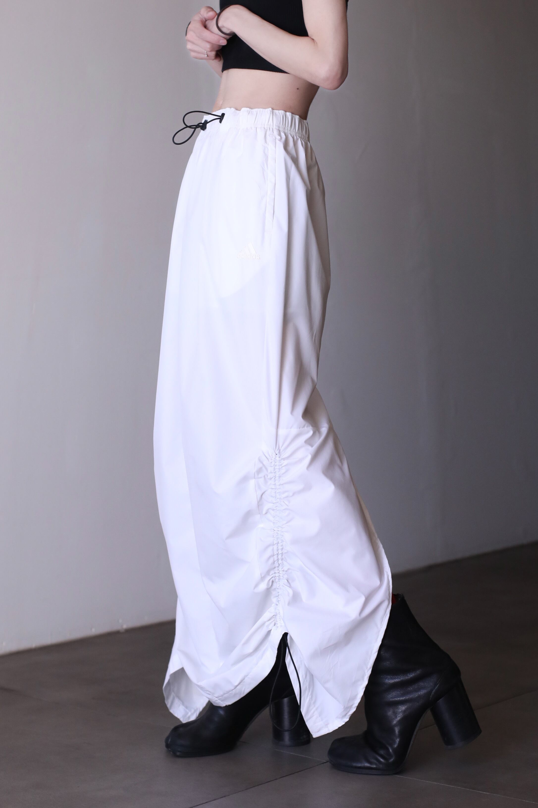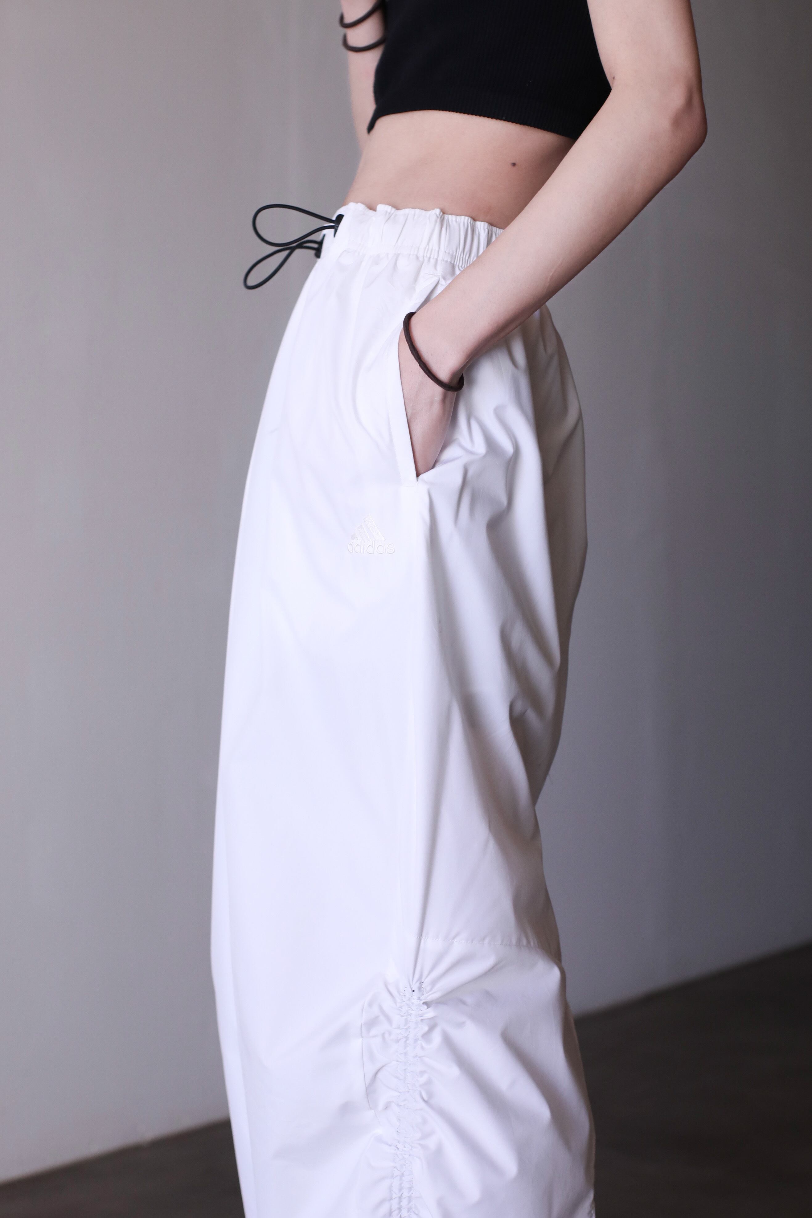 ウエストと両サイド裾にドローコードが仕込まれているディテールで裾のドローはしぼると縦にクシュクシュとしてくれてデザイン性もバッチリです。