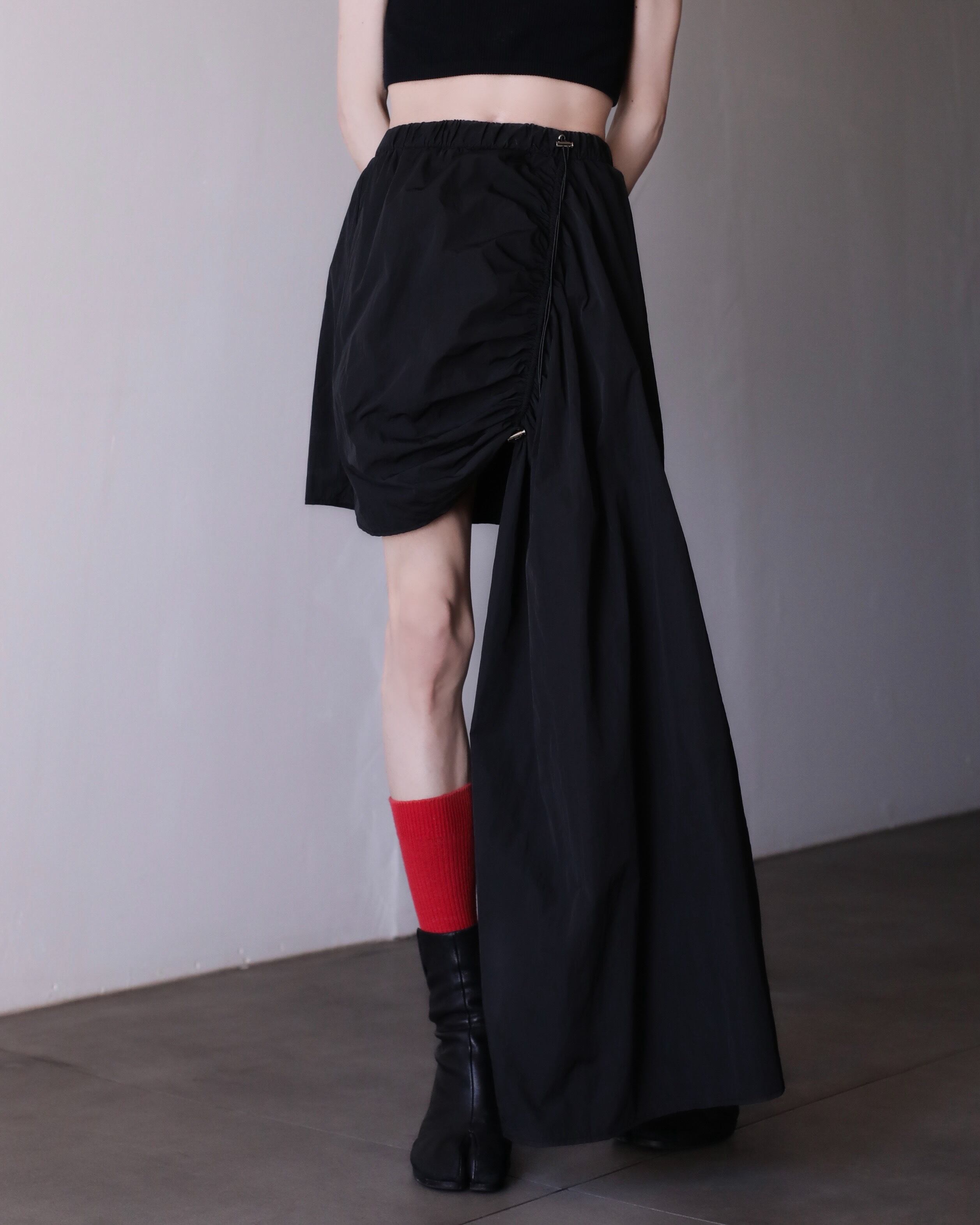 mini × long asymmetry tech drawstring design nylon skirt