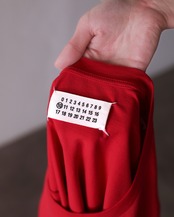 個人的にも同じようなマルジェラの赤いTを着ているのですが、赤ボディに背面の四つ系白ステッチが