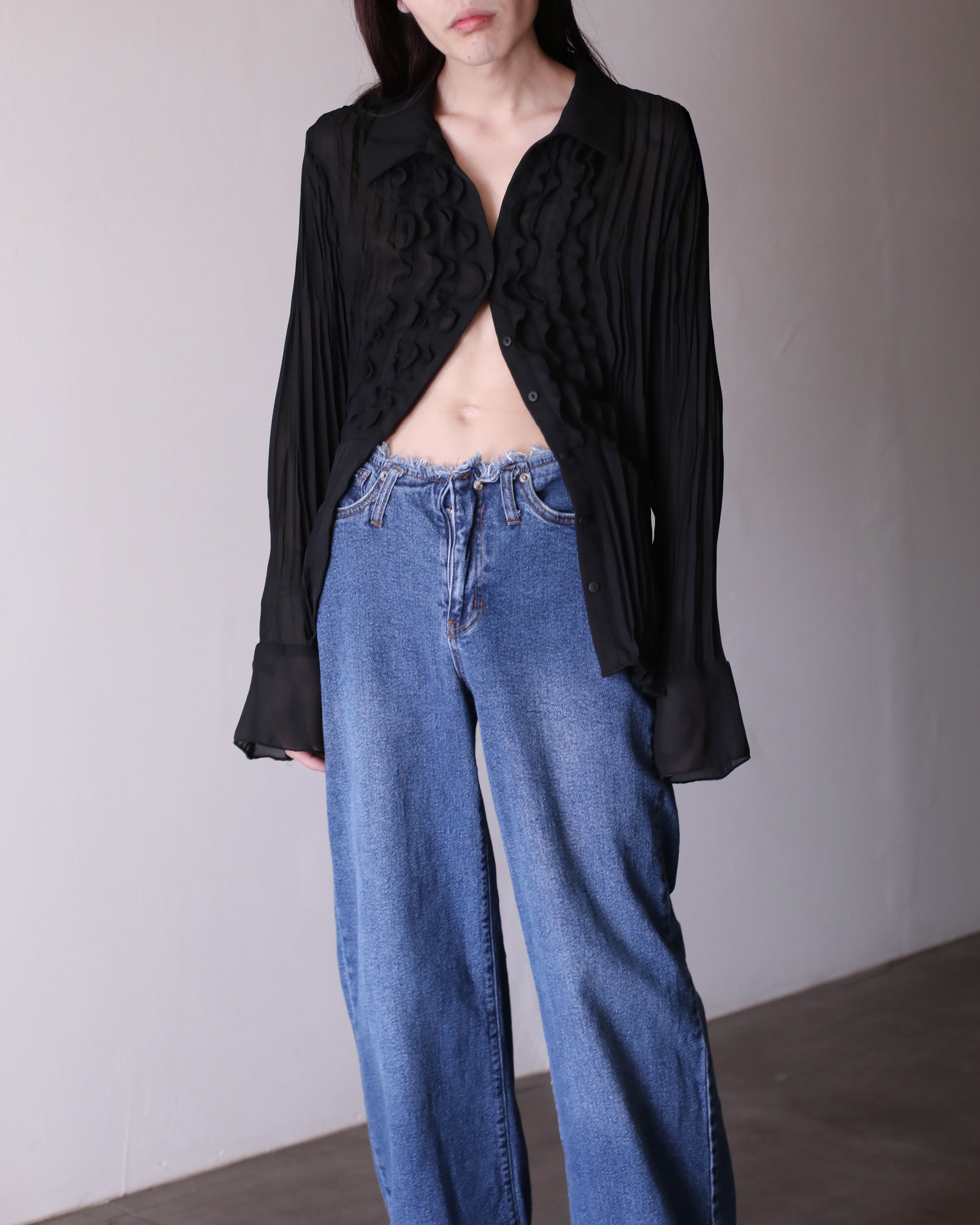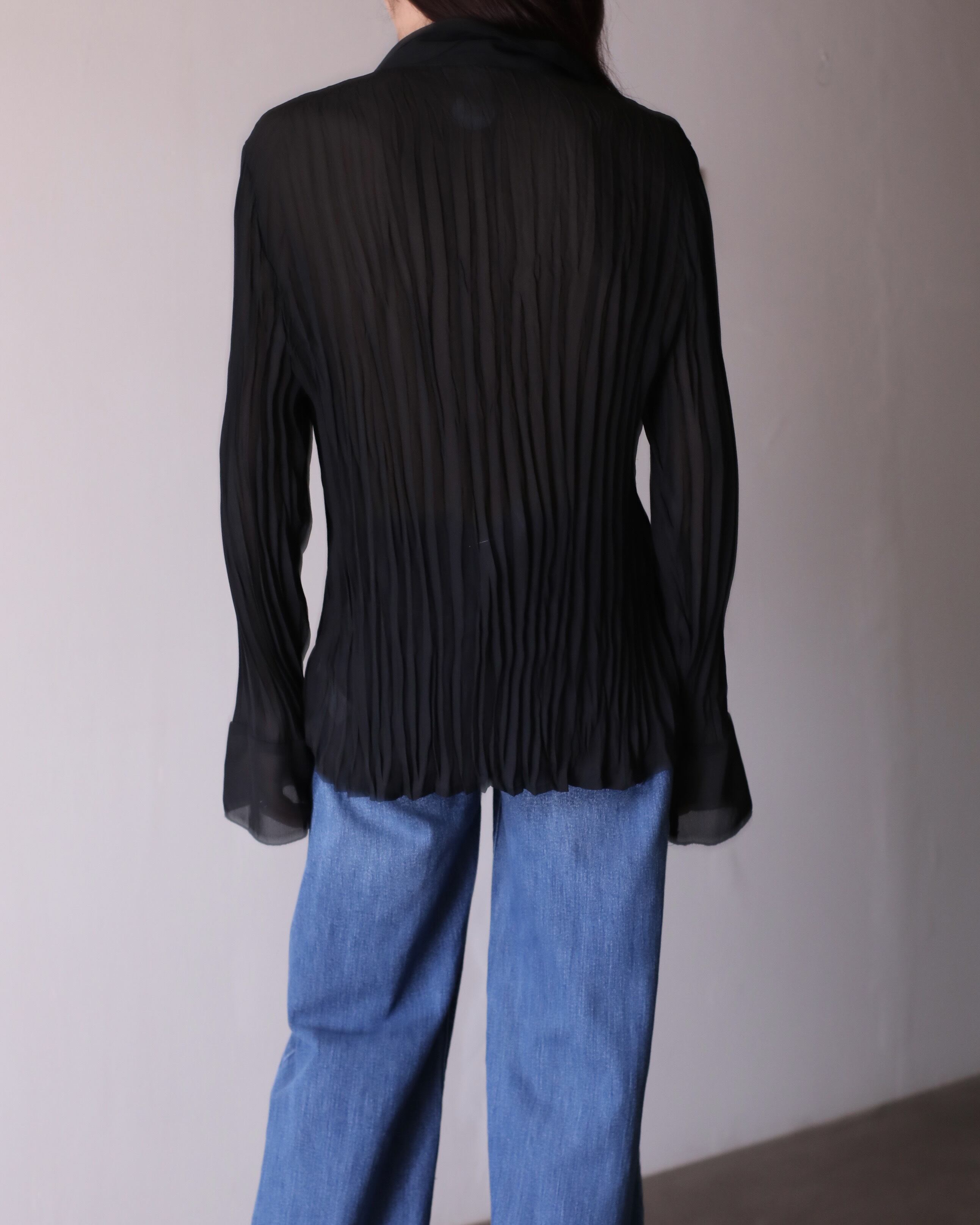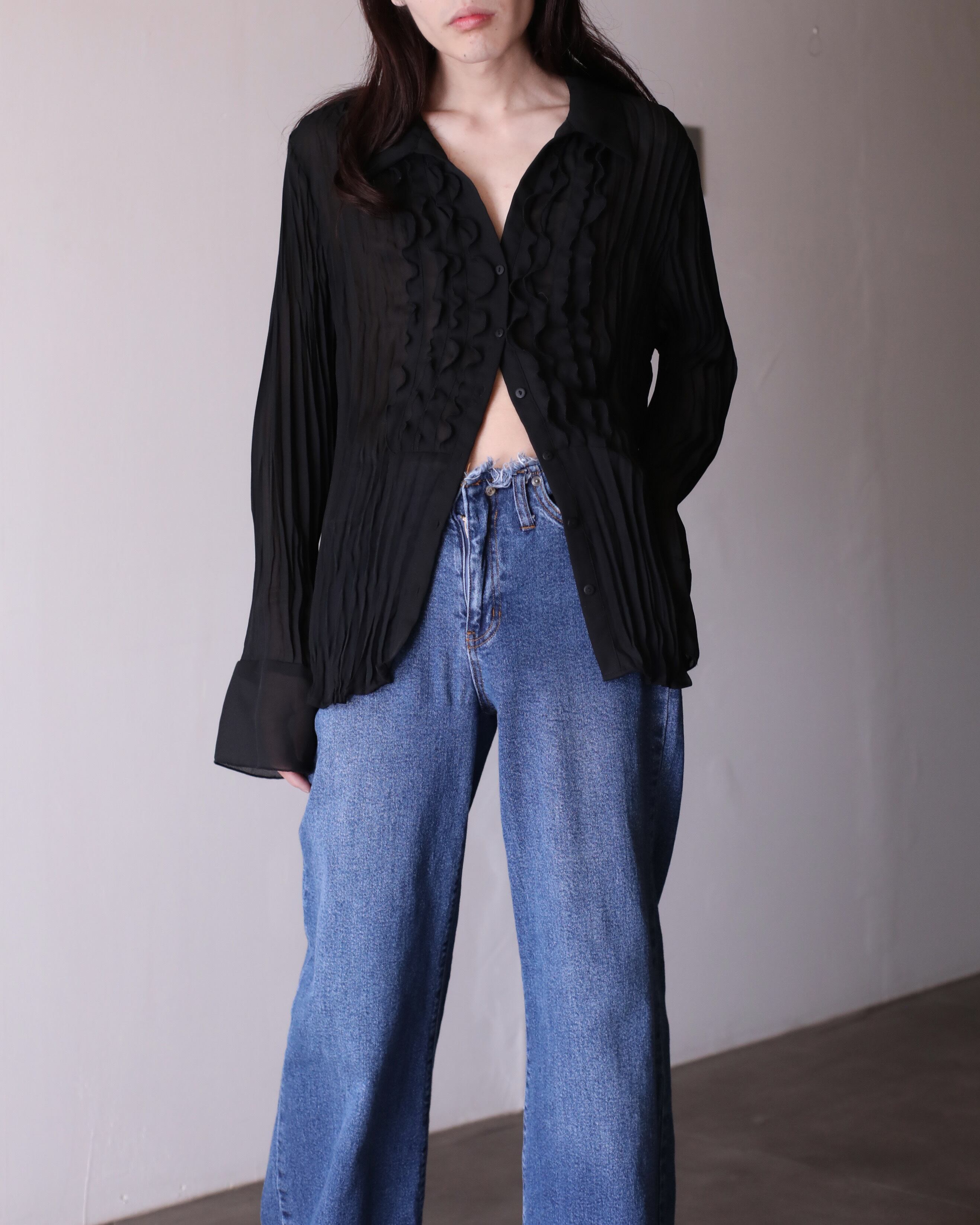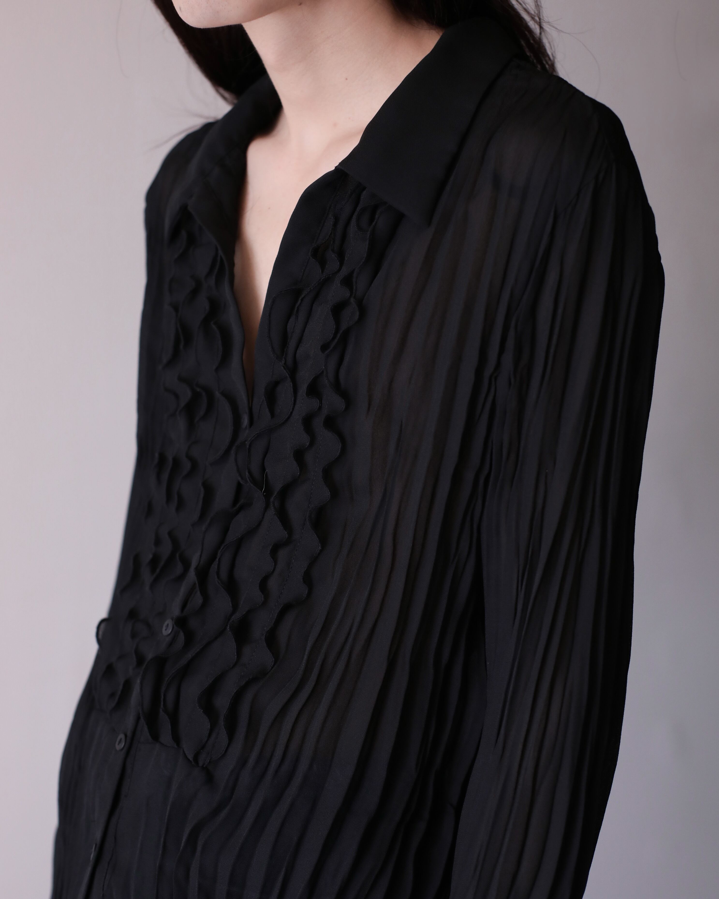 1990s sheer × pleats × frill design relax shirt