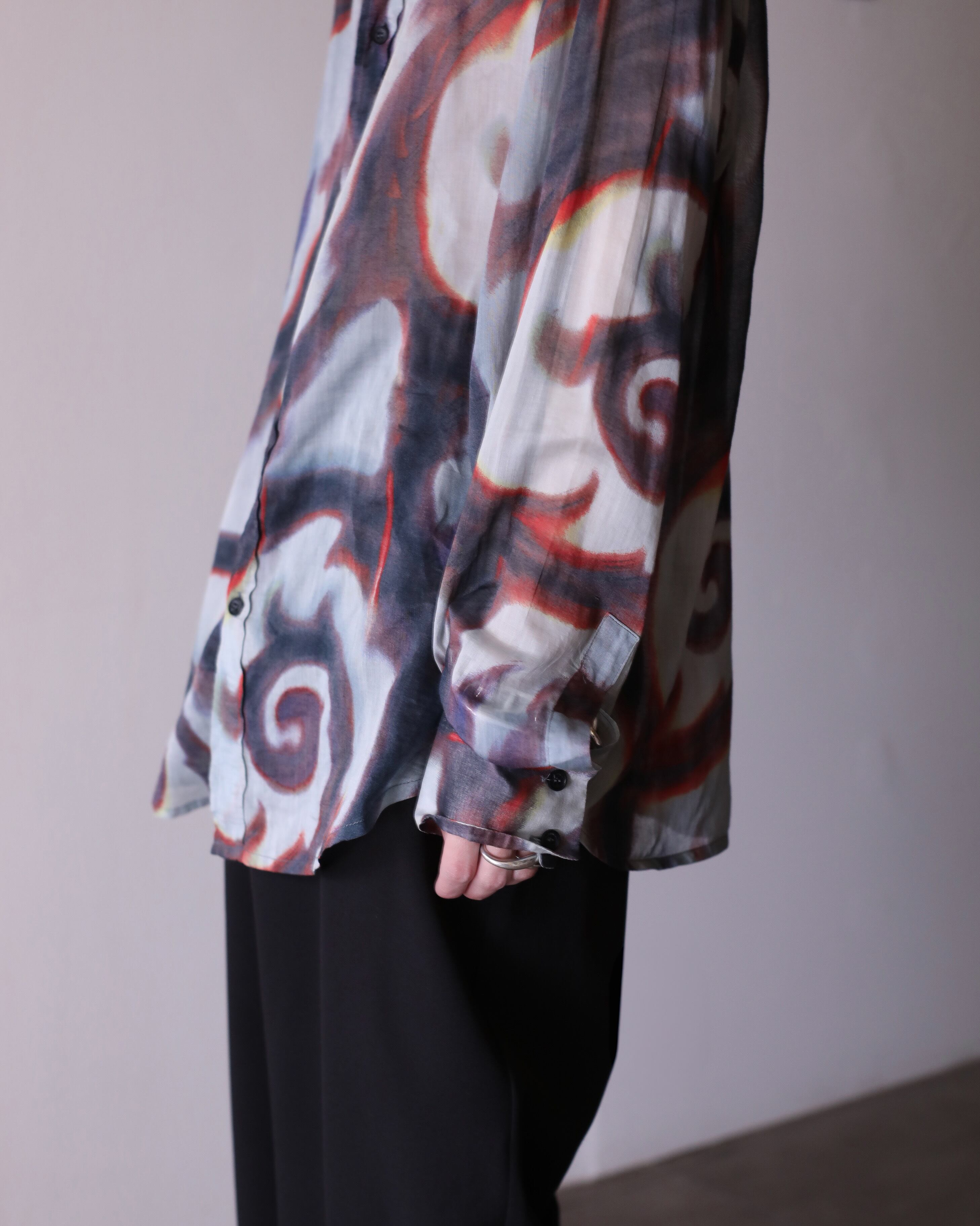 1990s VERSACE gradation art design cotton sheer fabric over shirt made in Italy