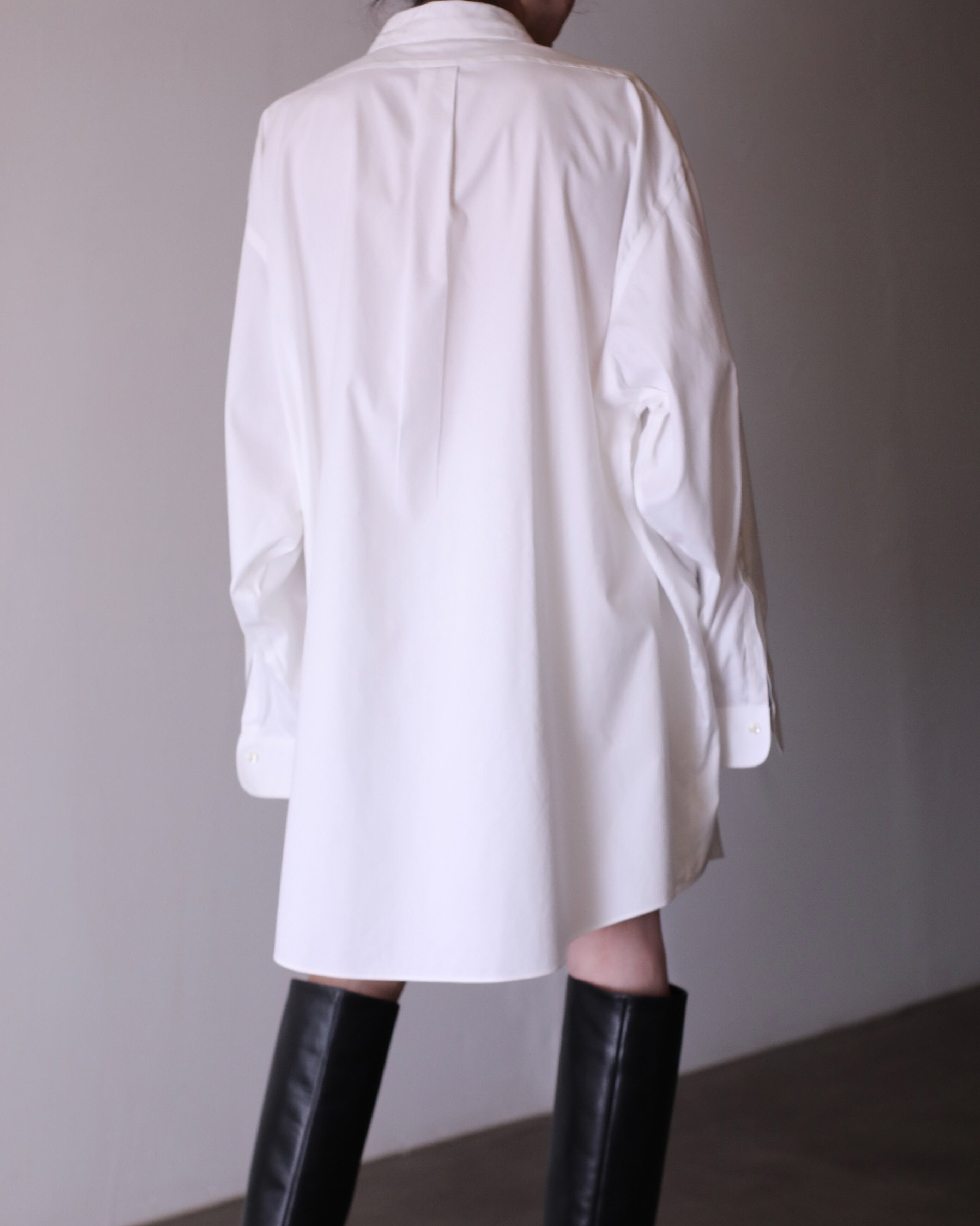 なぜかというと、色々アレンジが効いたり、プレーンな白シャツなのでこのサイジングだからこそファッションとして成立したり、何より普通のサイズの白シャツに魅力を感じないから当店ではこのオーバーな物をあえてセレクトしております。