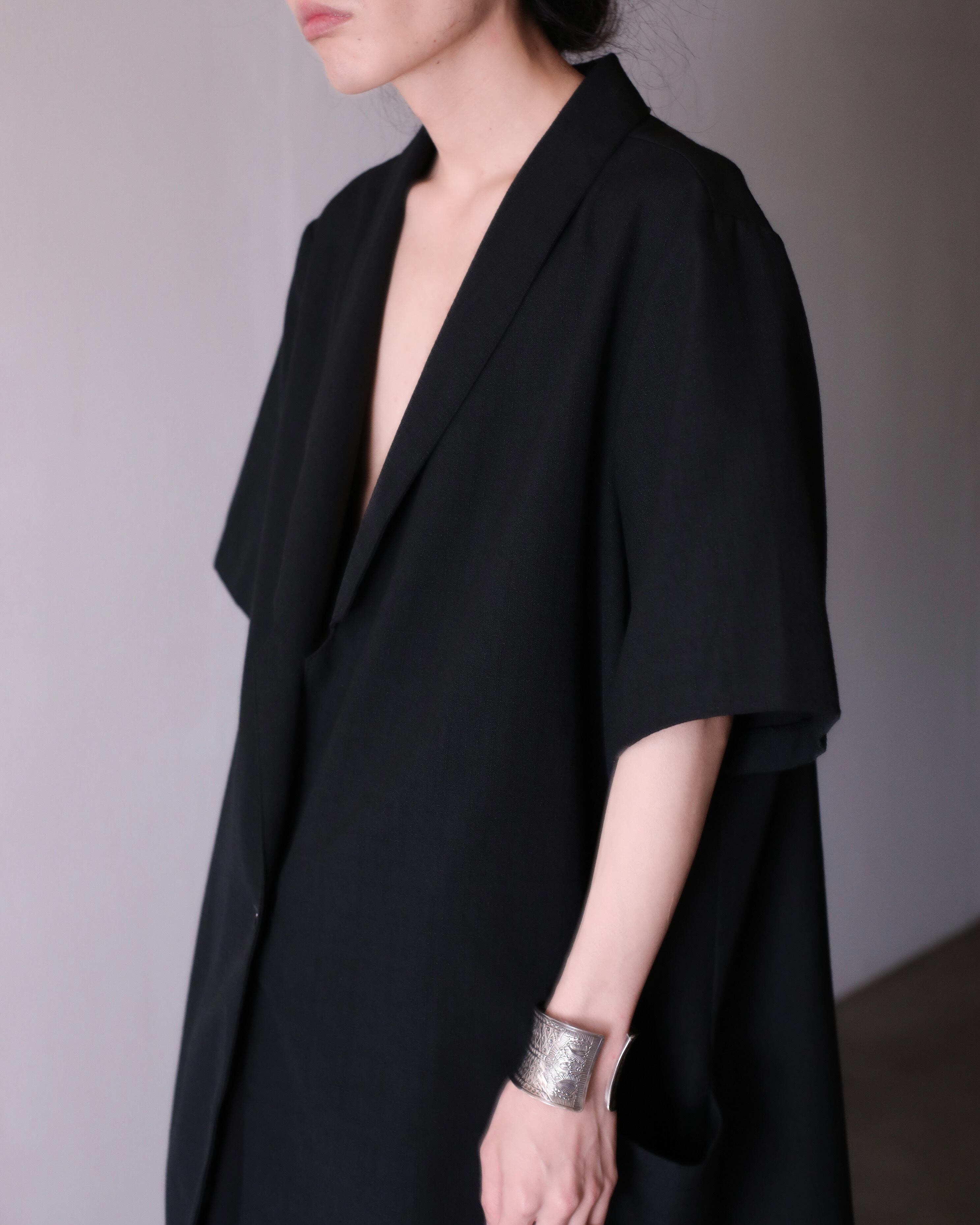 肩パッドも入っていなければ、裏地もないデザイン。レーヨンポリエステルのさらっとした生地感。