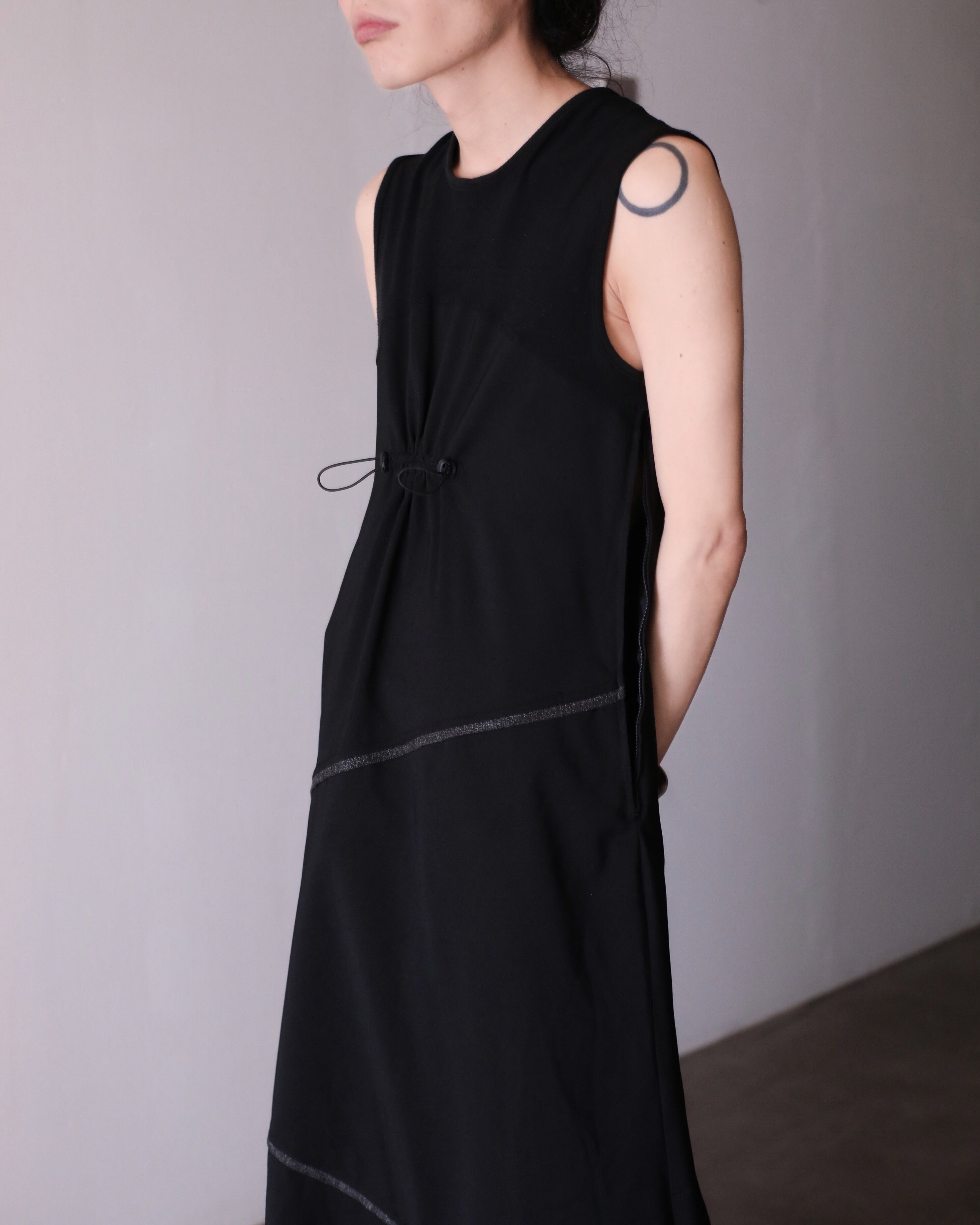 1990s France tech drawstring design cocoon silhouette maxi length dress one piece