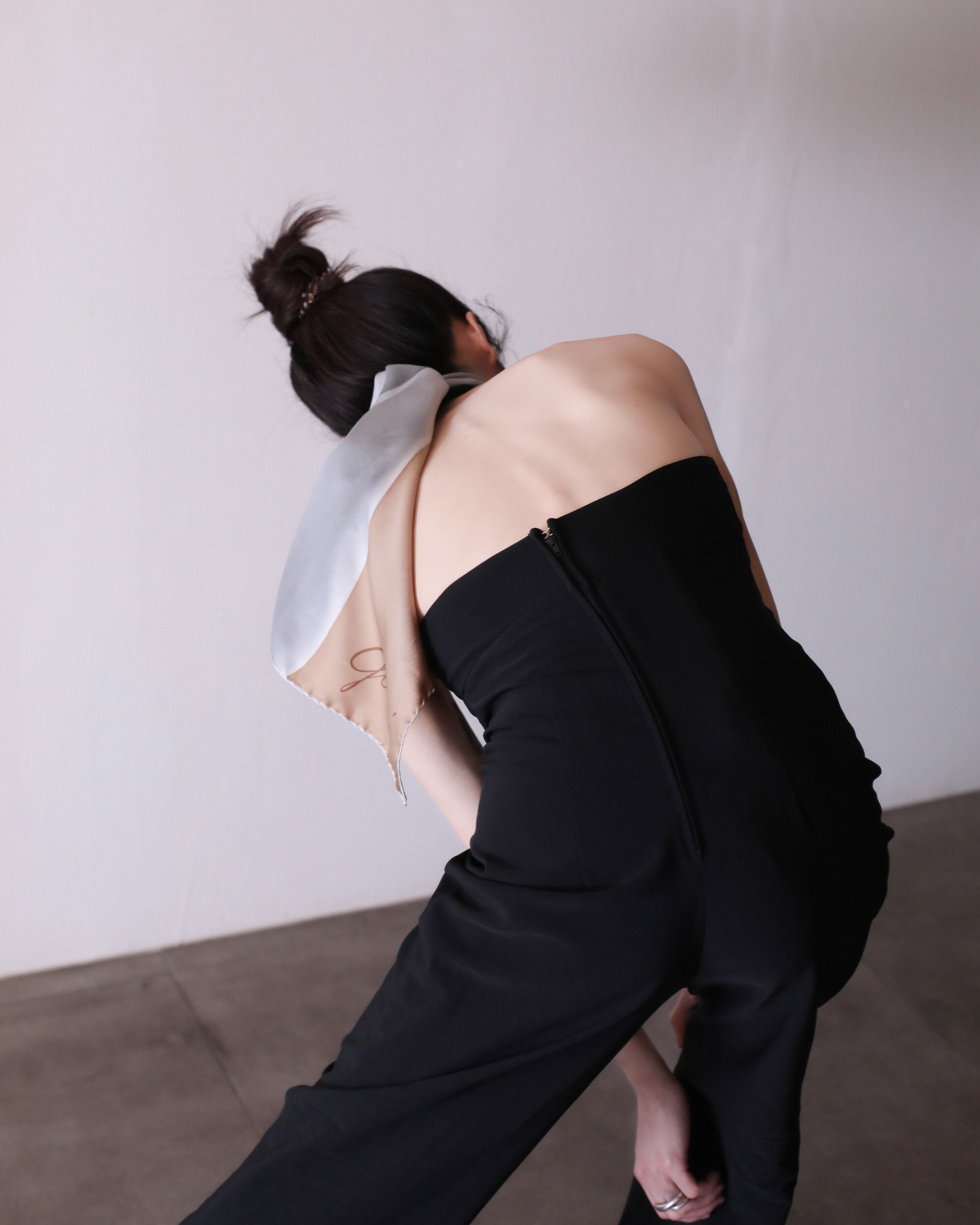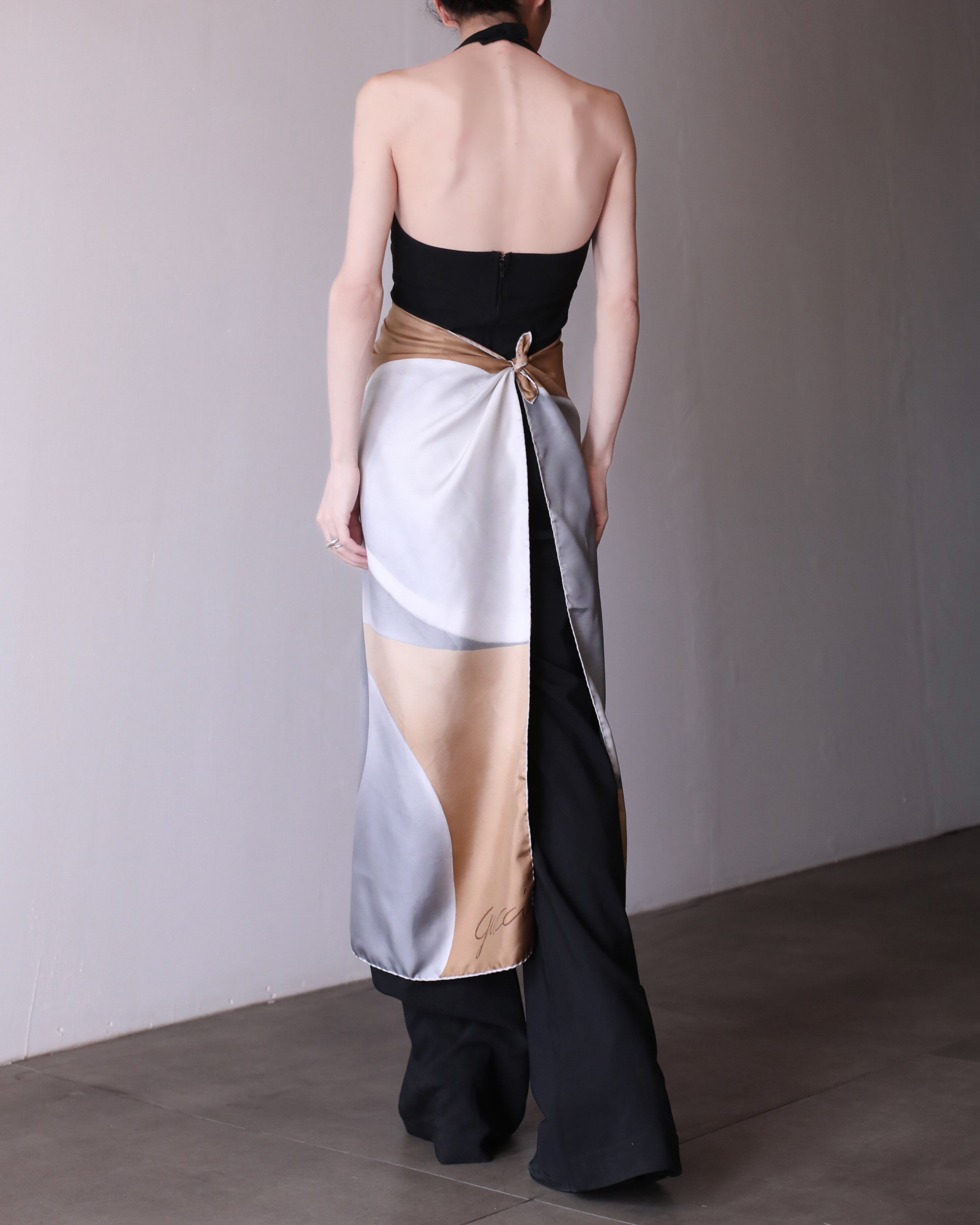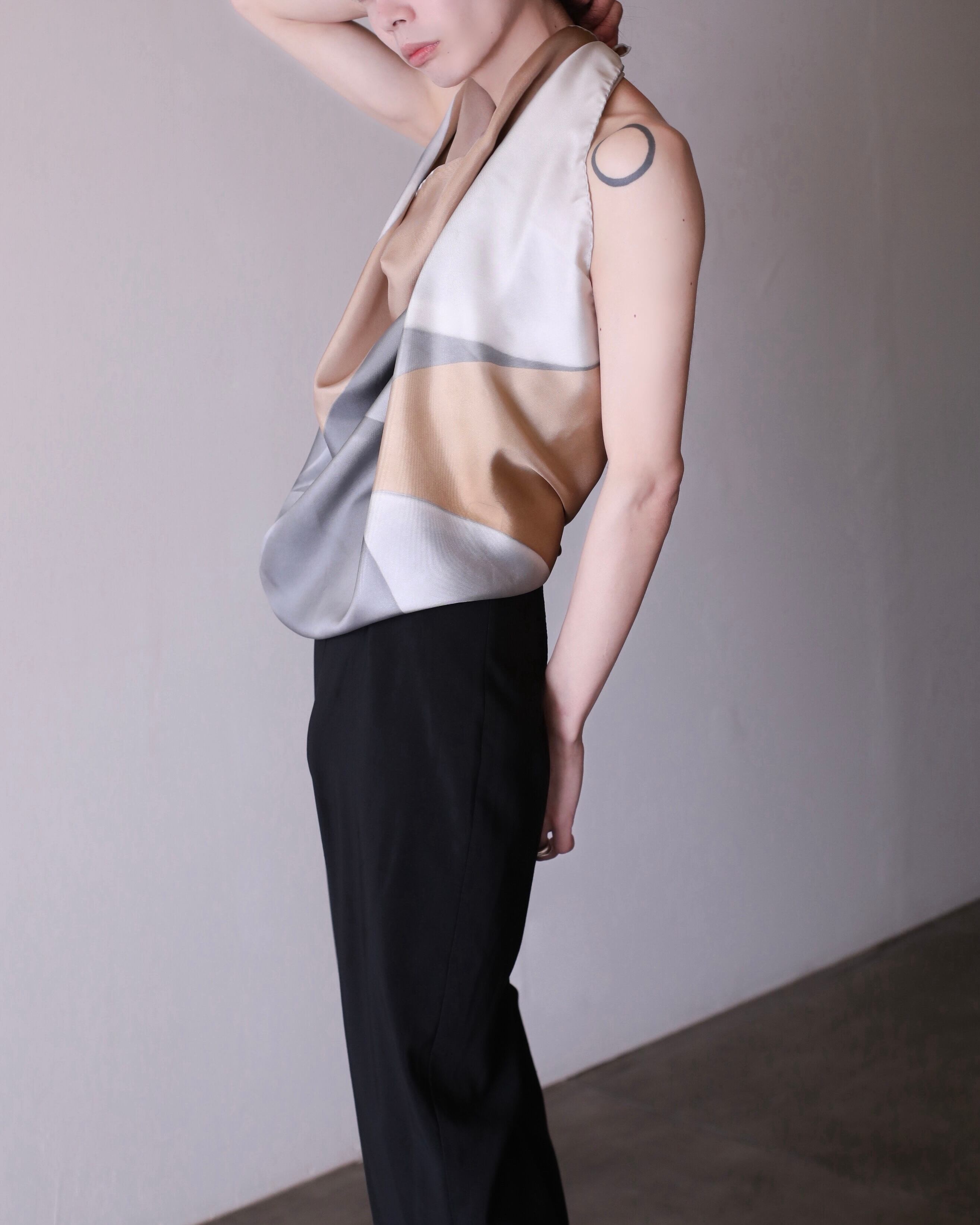 首にぐるんと巻いて後ろ垂らし
