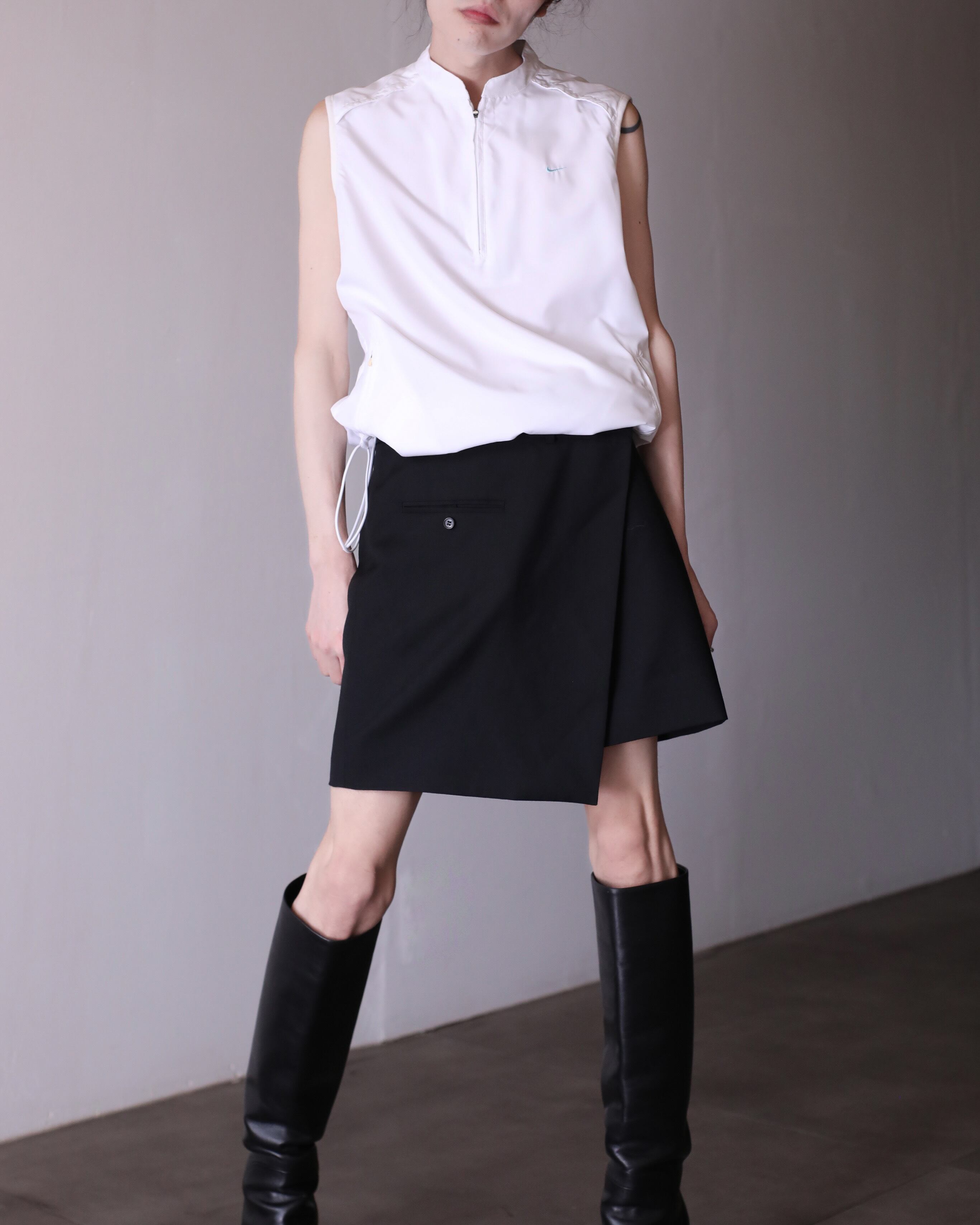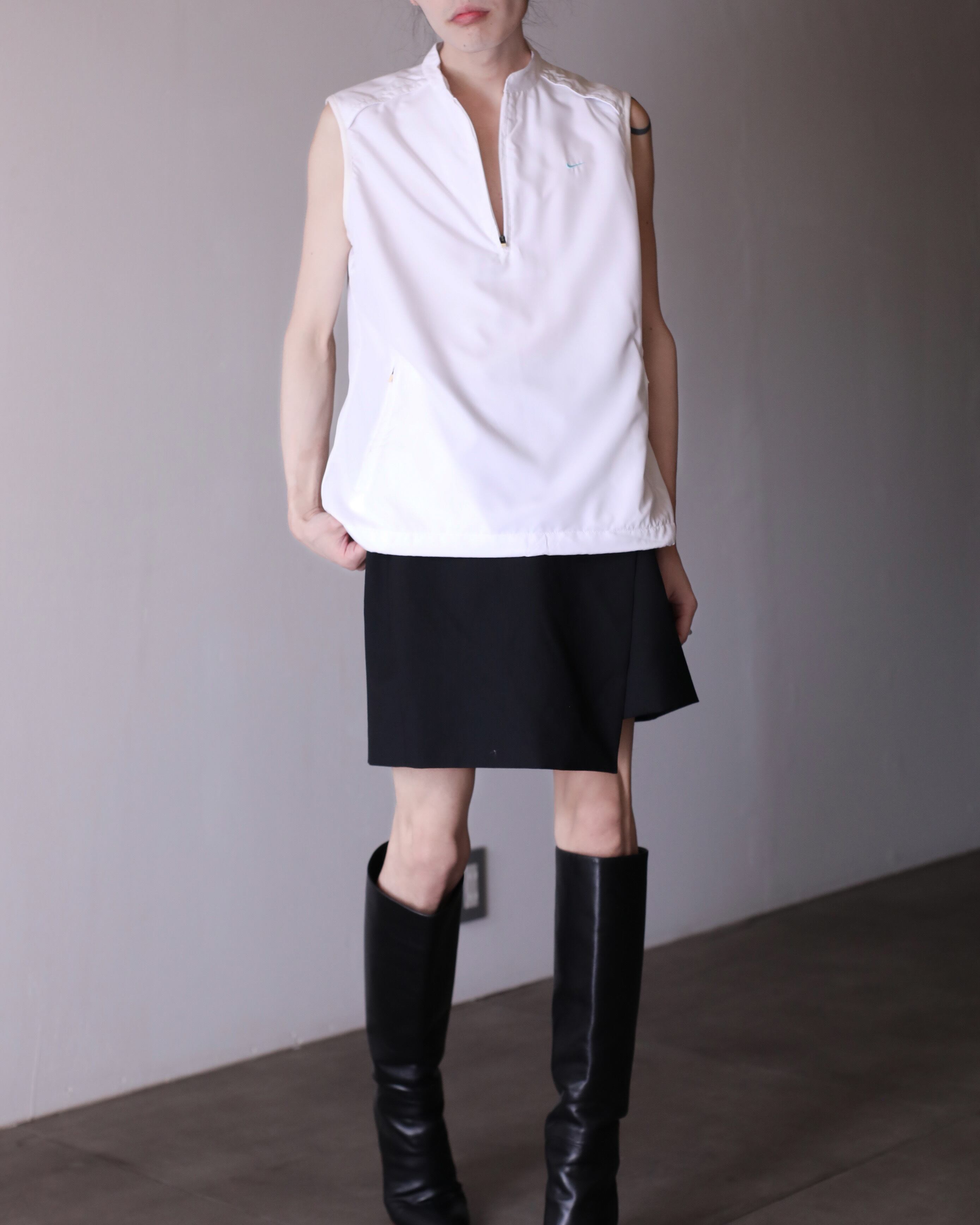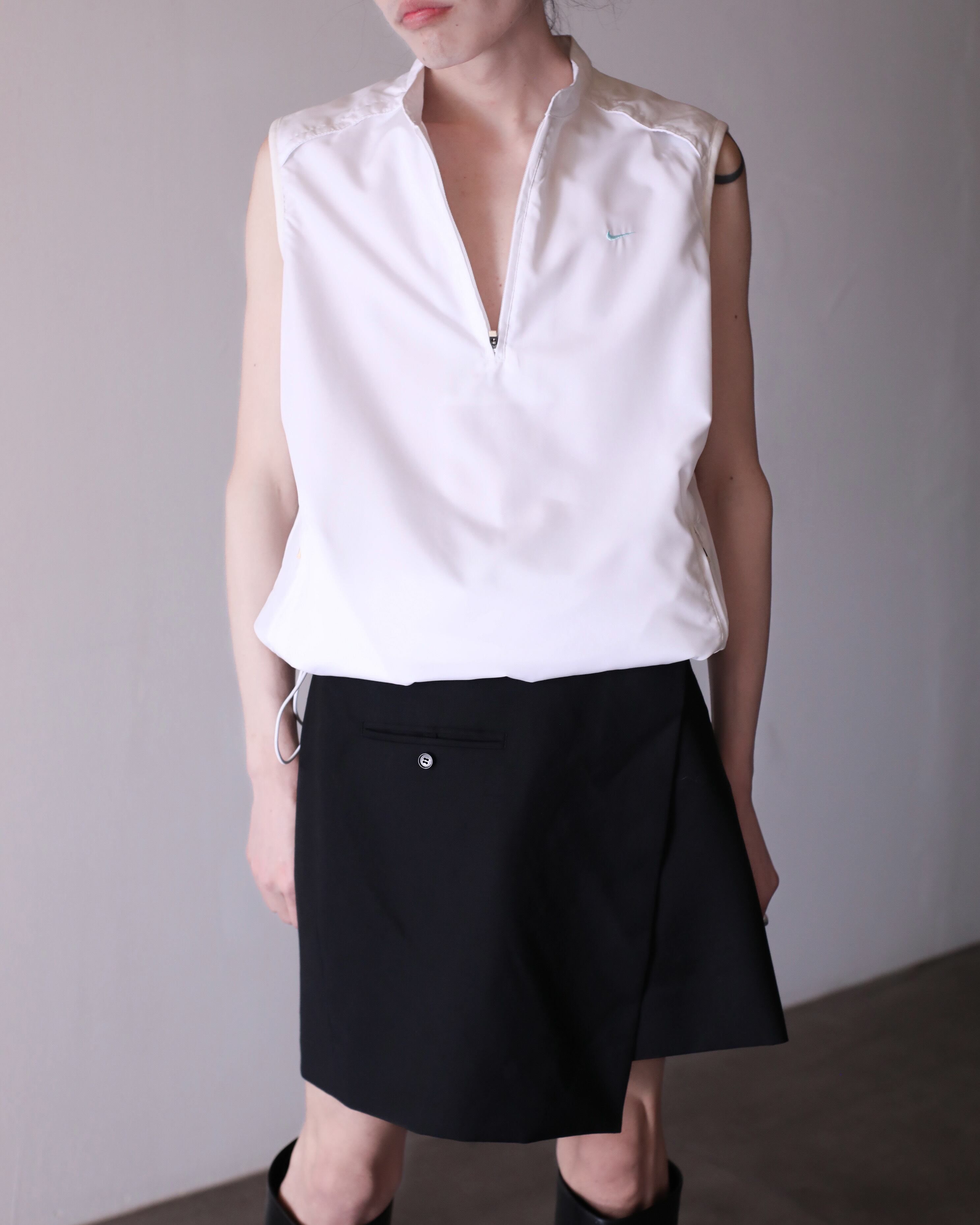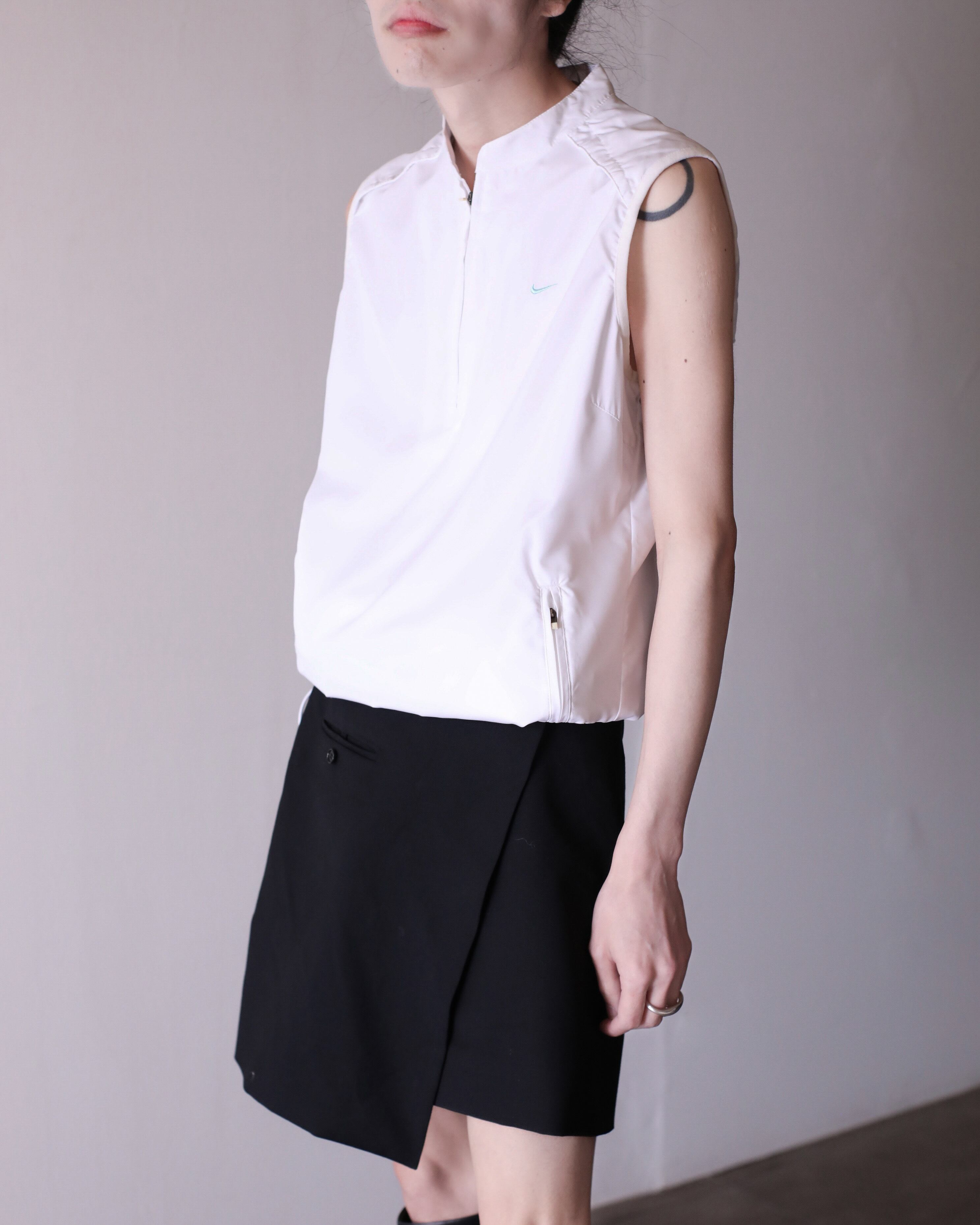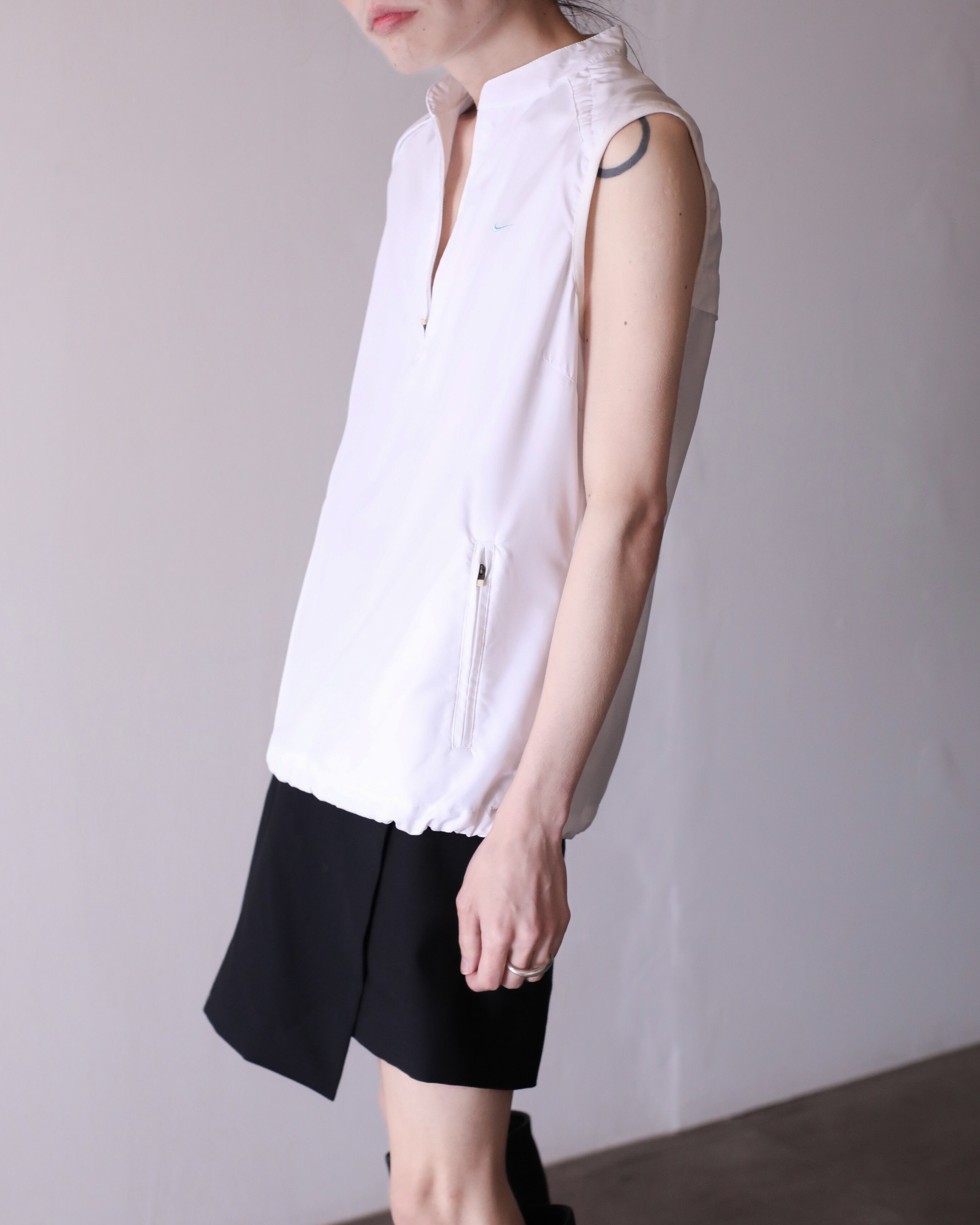 NIKE hi-neck no sleeve tech drawstring design top