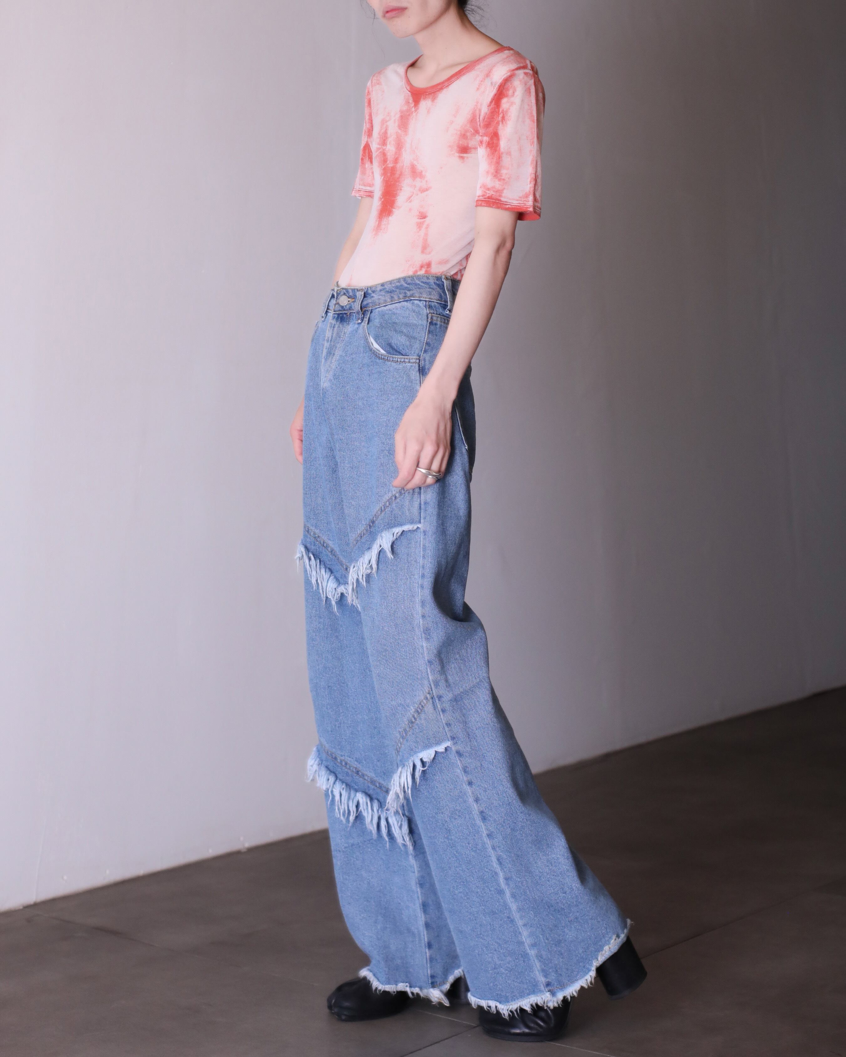 写真のように捲し上げて裾に溜める感じのスタイリングもとても良かったですー!