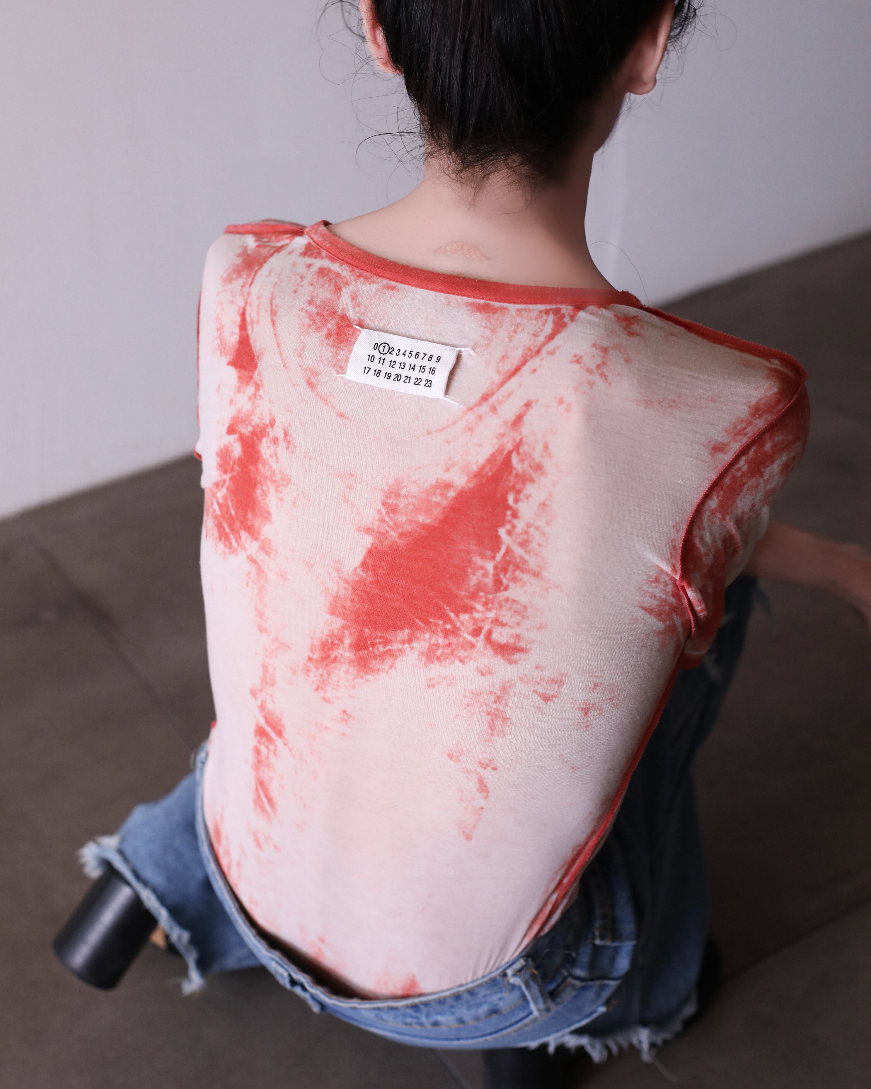 Maison Martin Margiela 2010s/s gradation sheer short sleeve top made in Italy