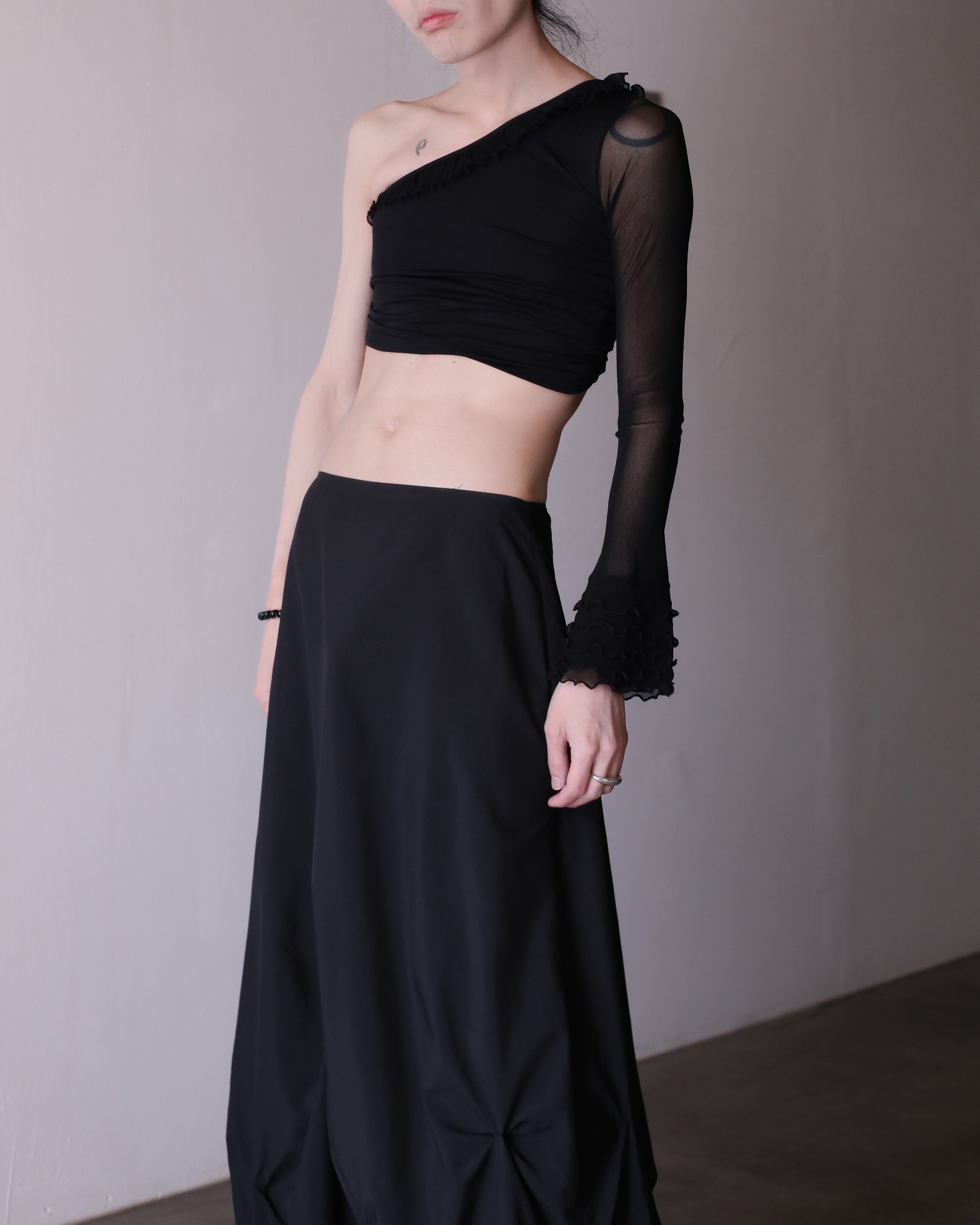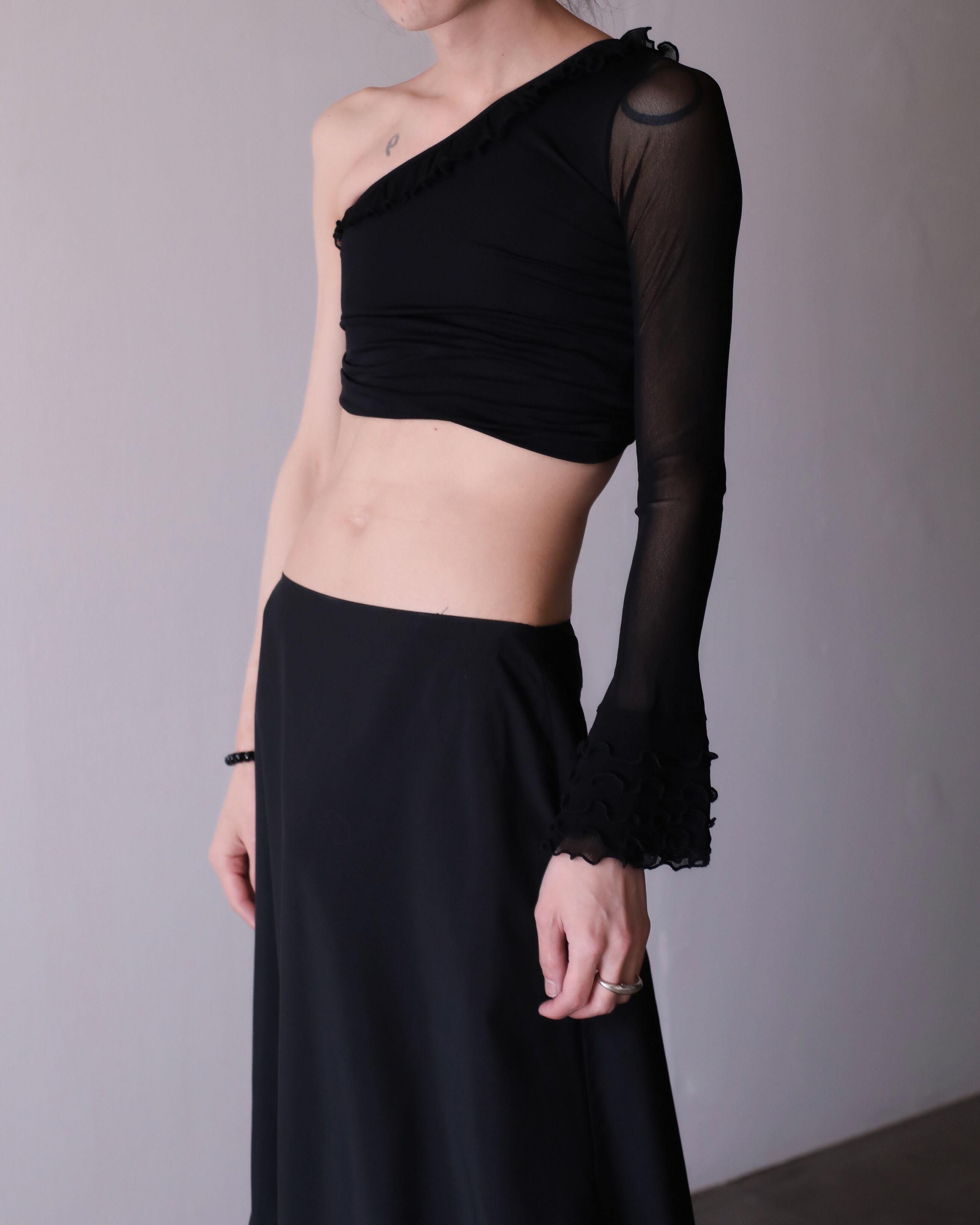 1990s~ sheer switching design one shoulder top Made In Italy