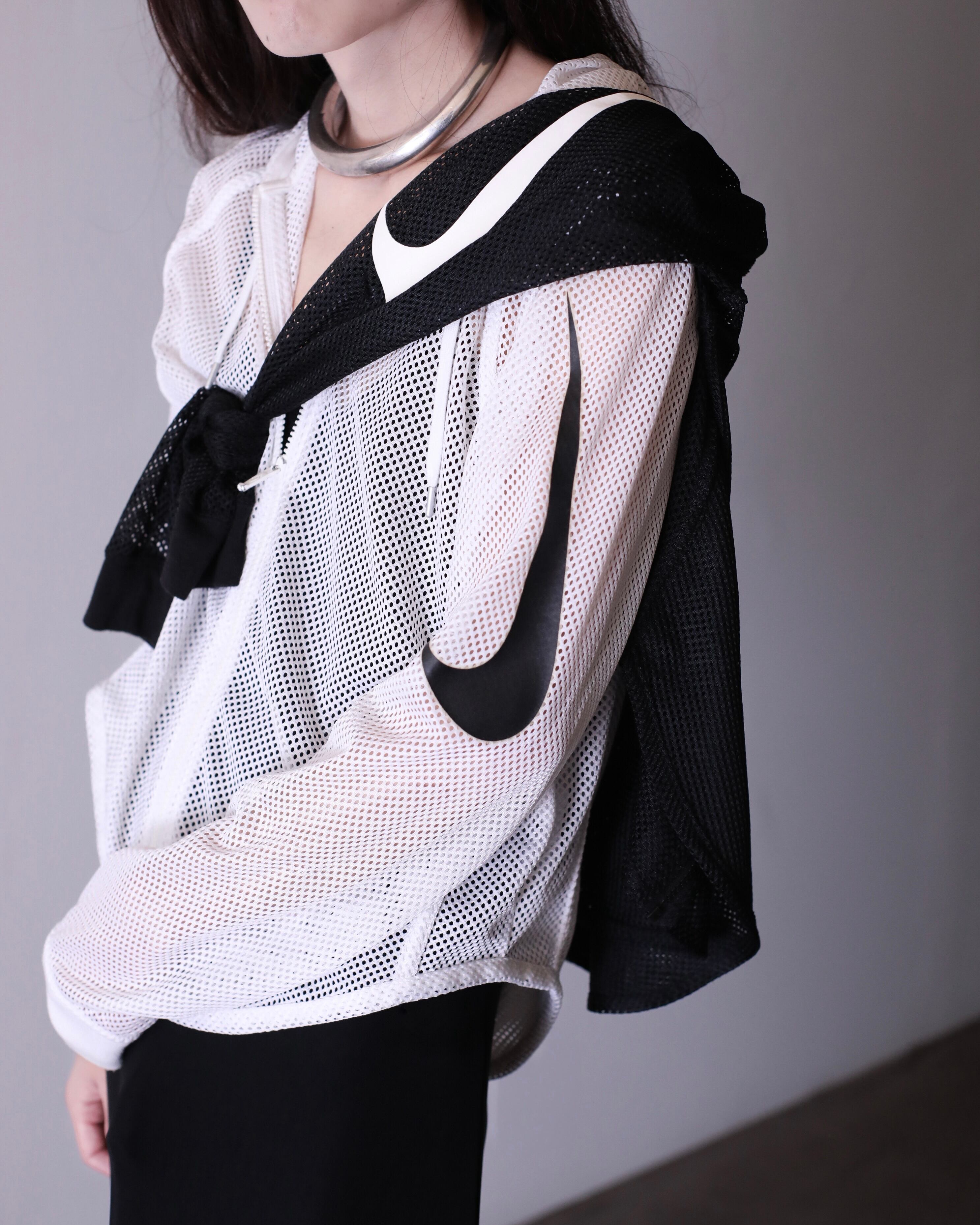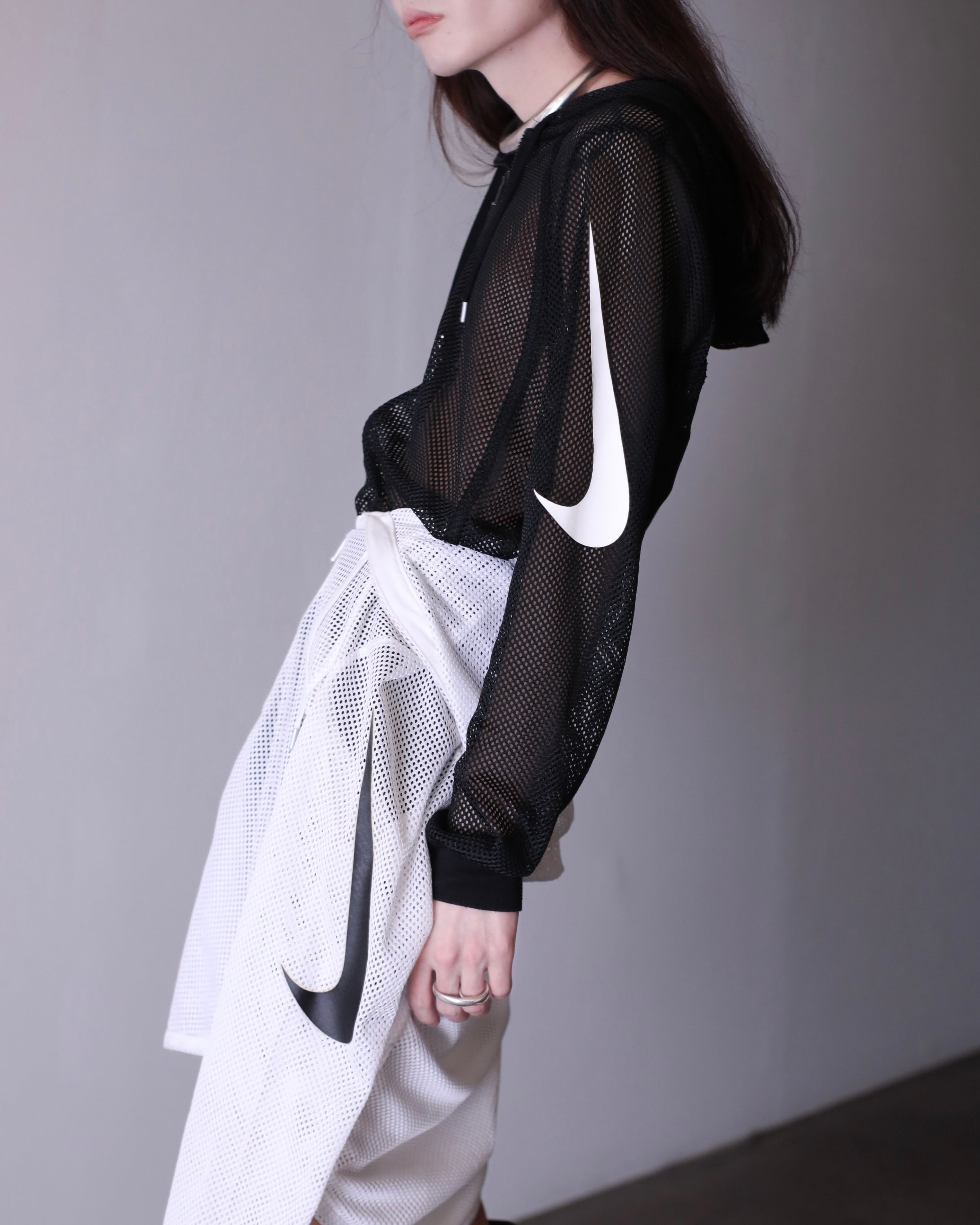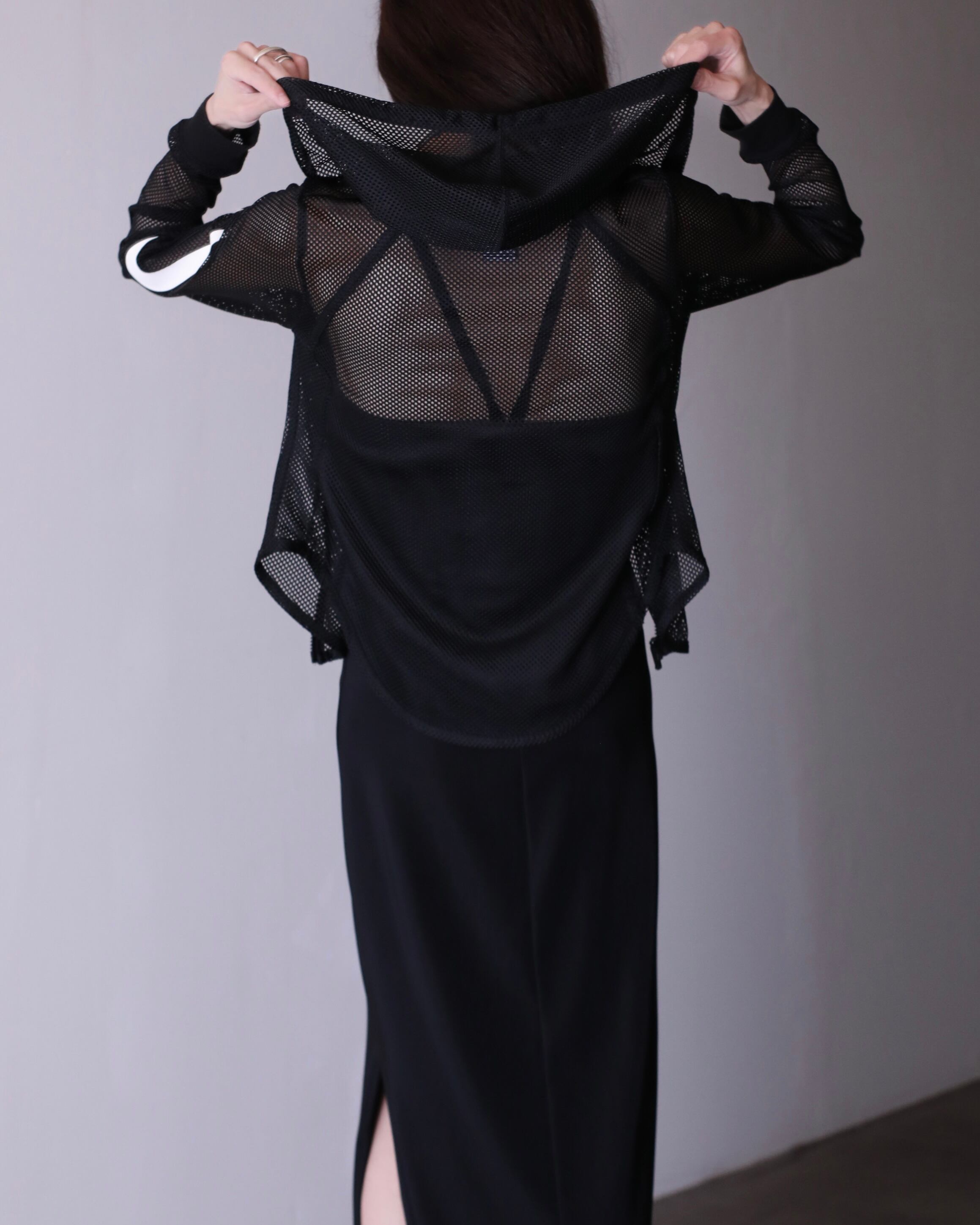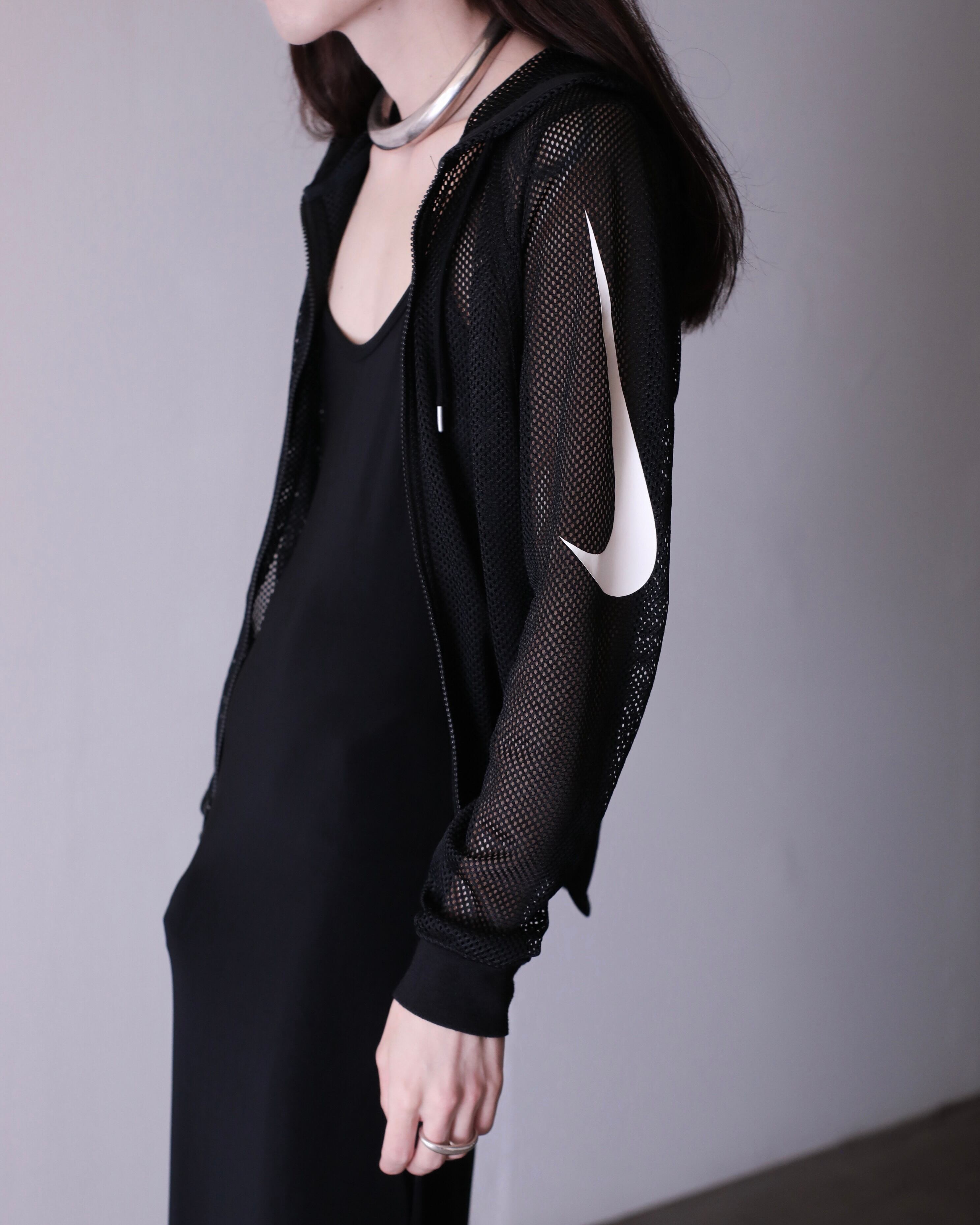 NIKE "sode big swoosh" mesh fabric full zip parka black