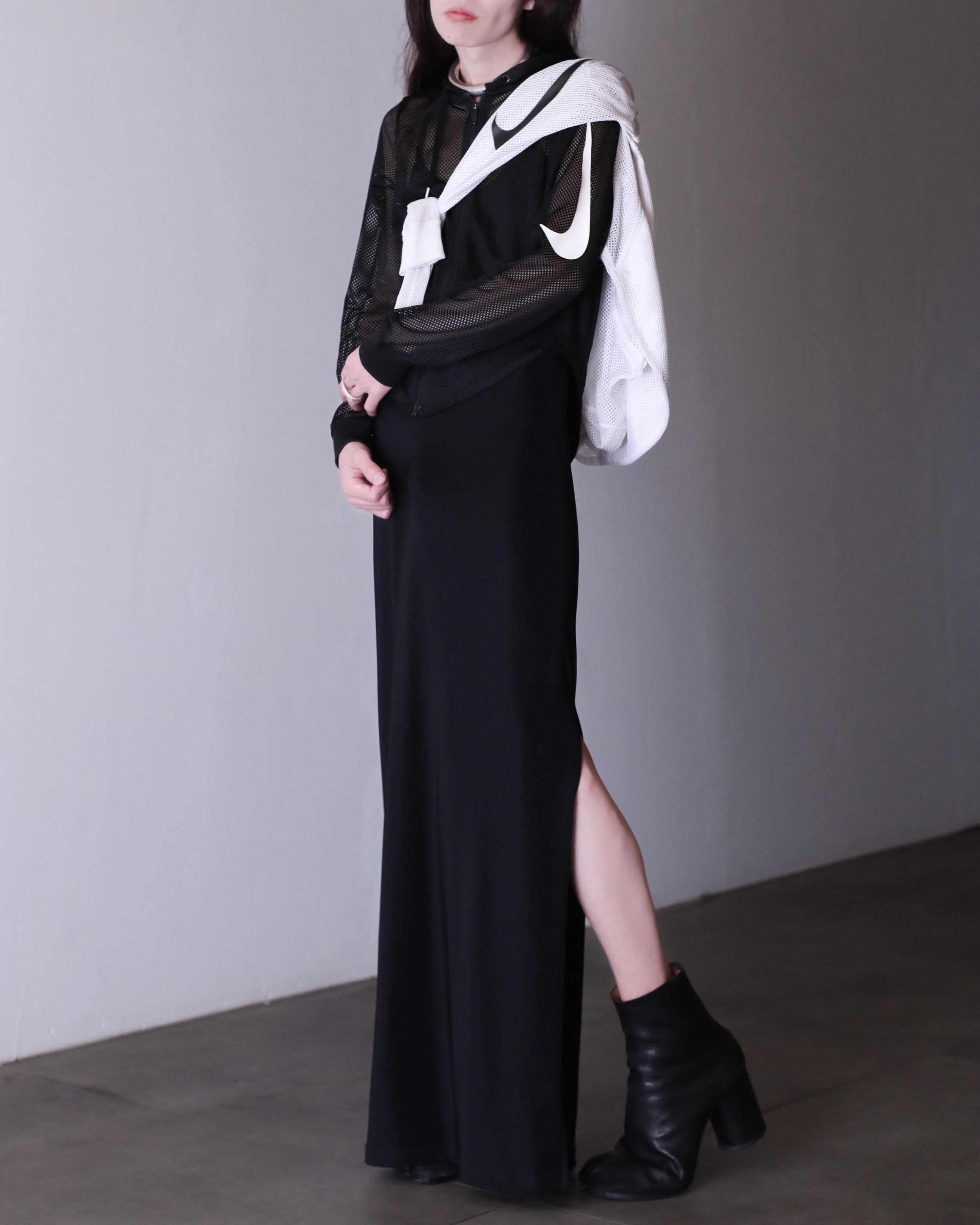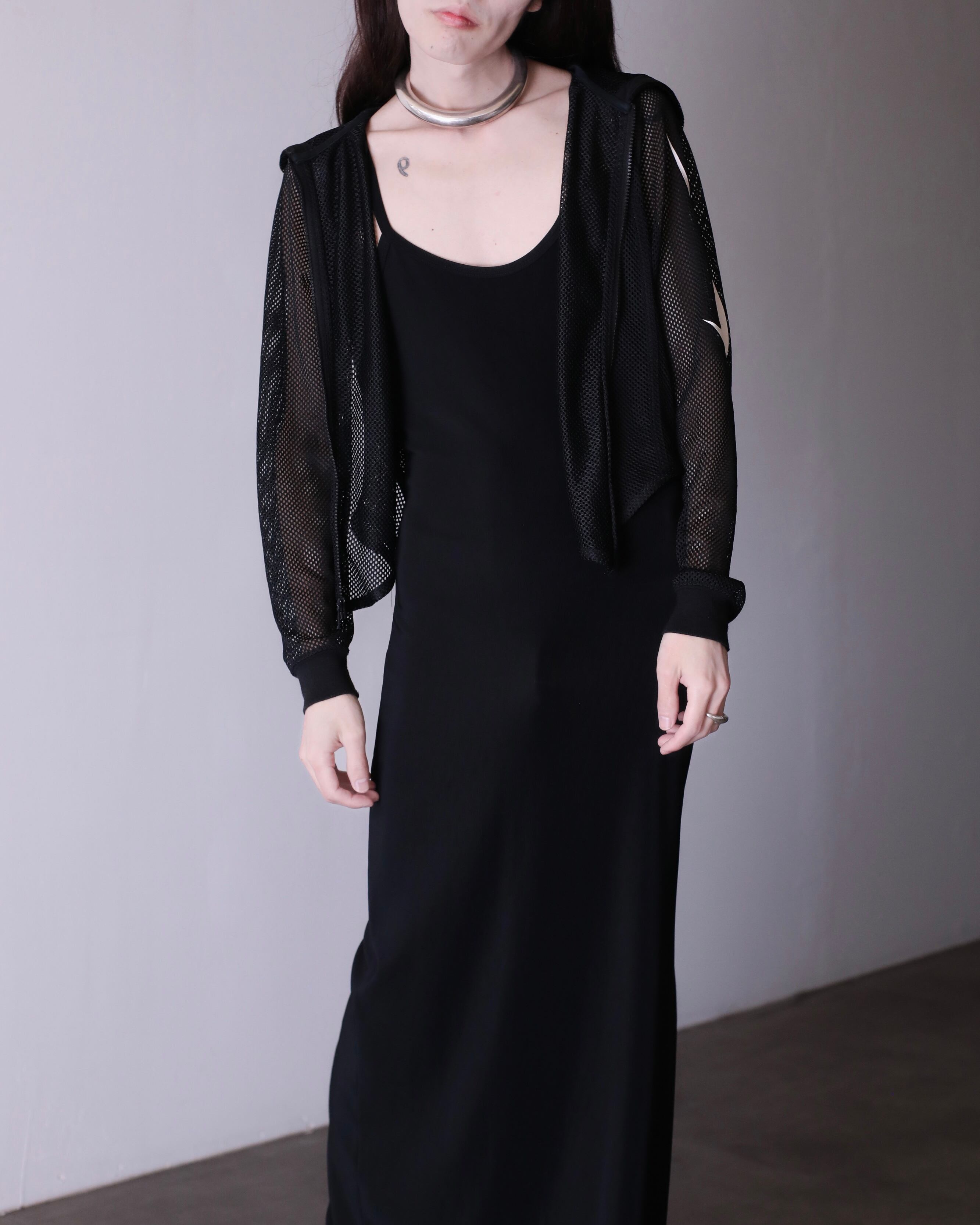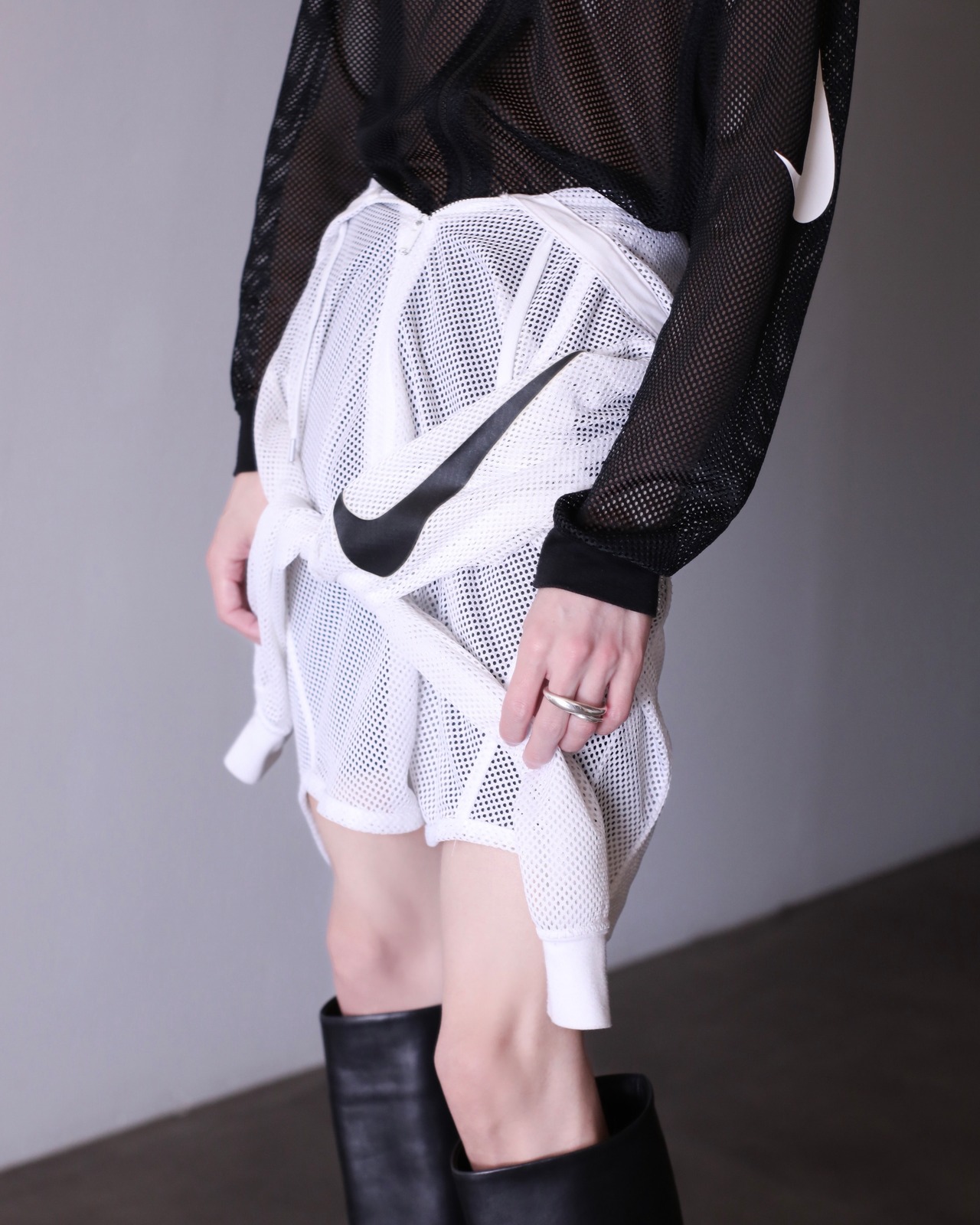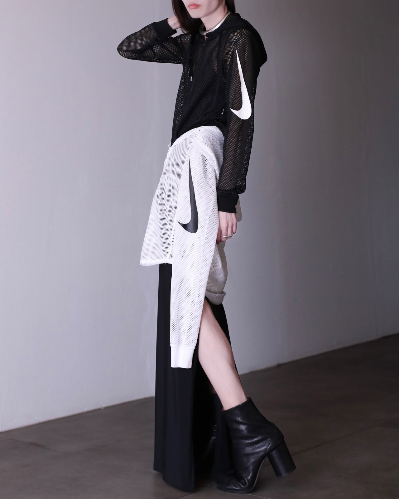NIKE "sode big swoosh" mesh fabric full zip parka black