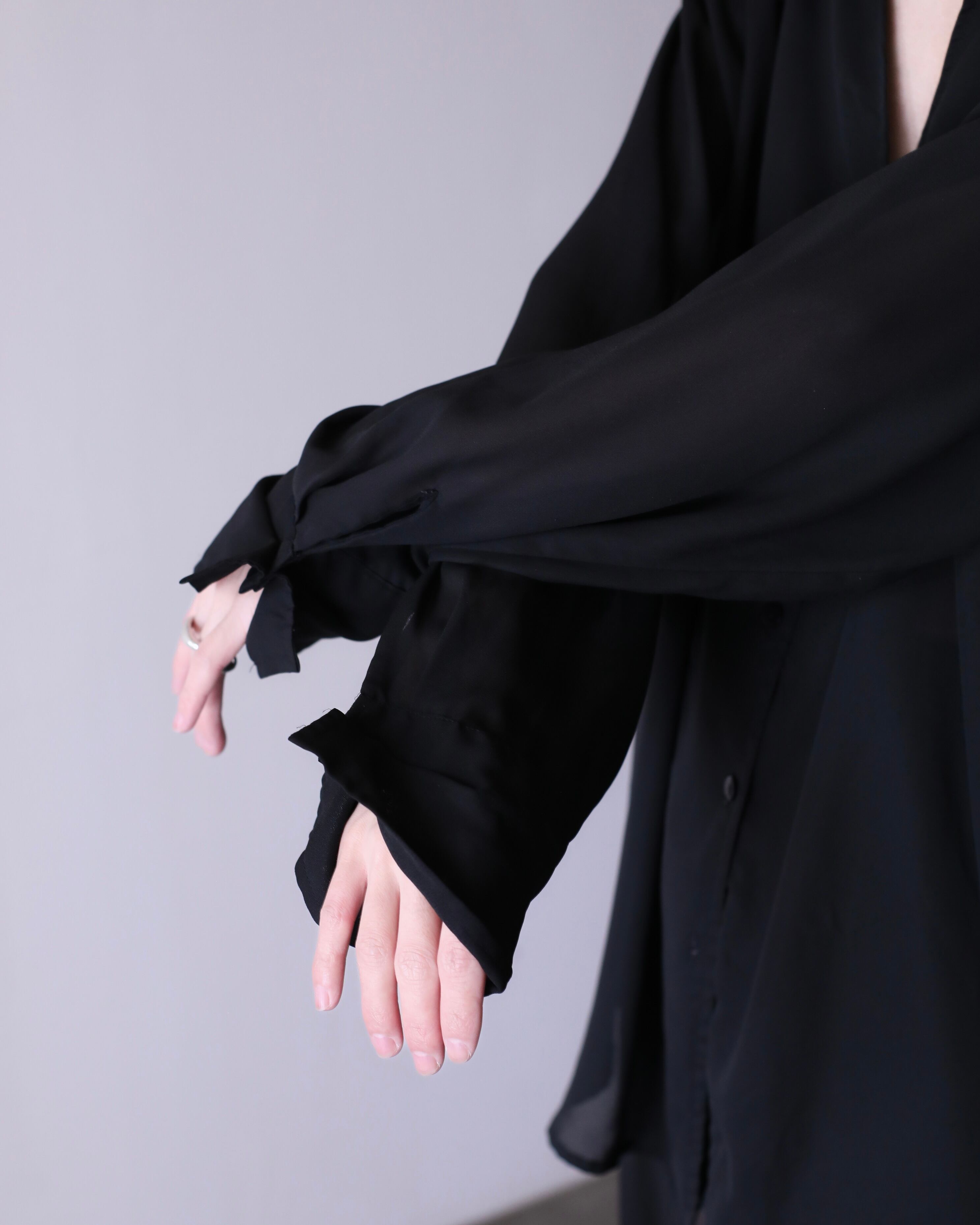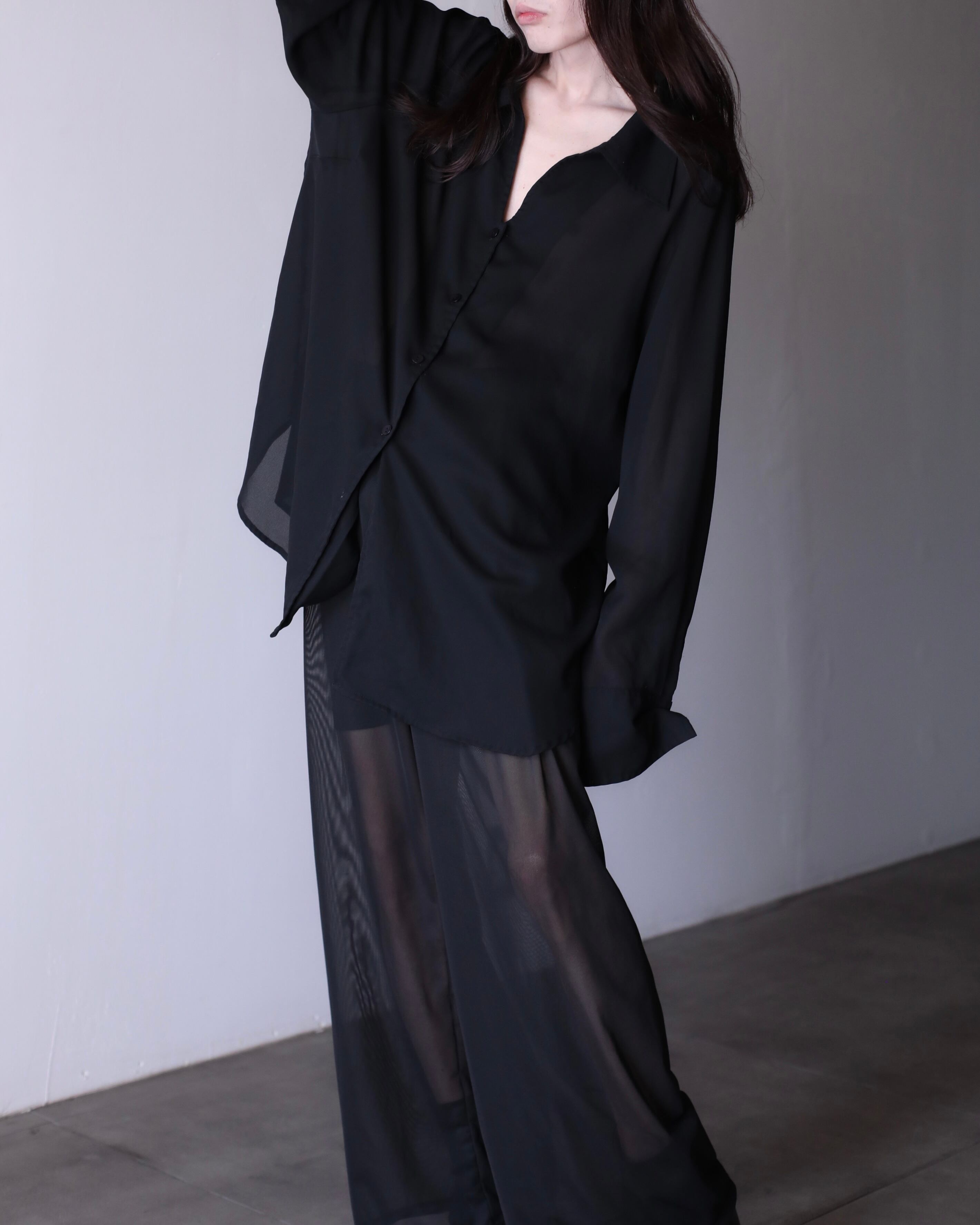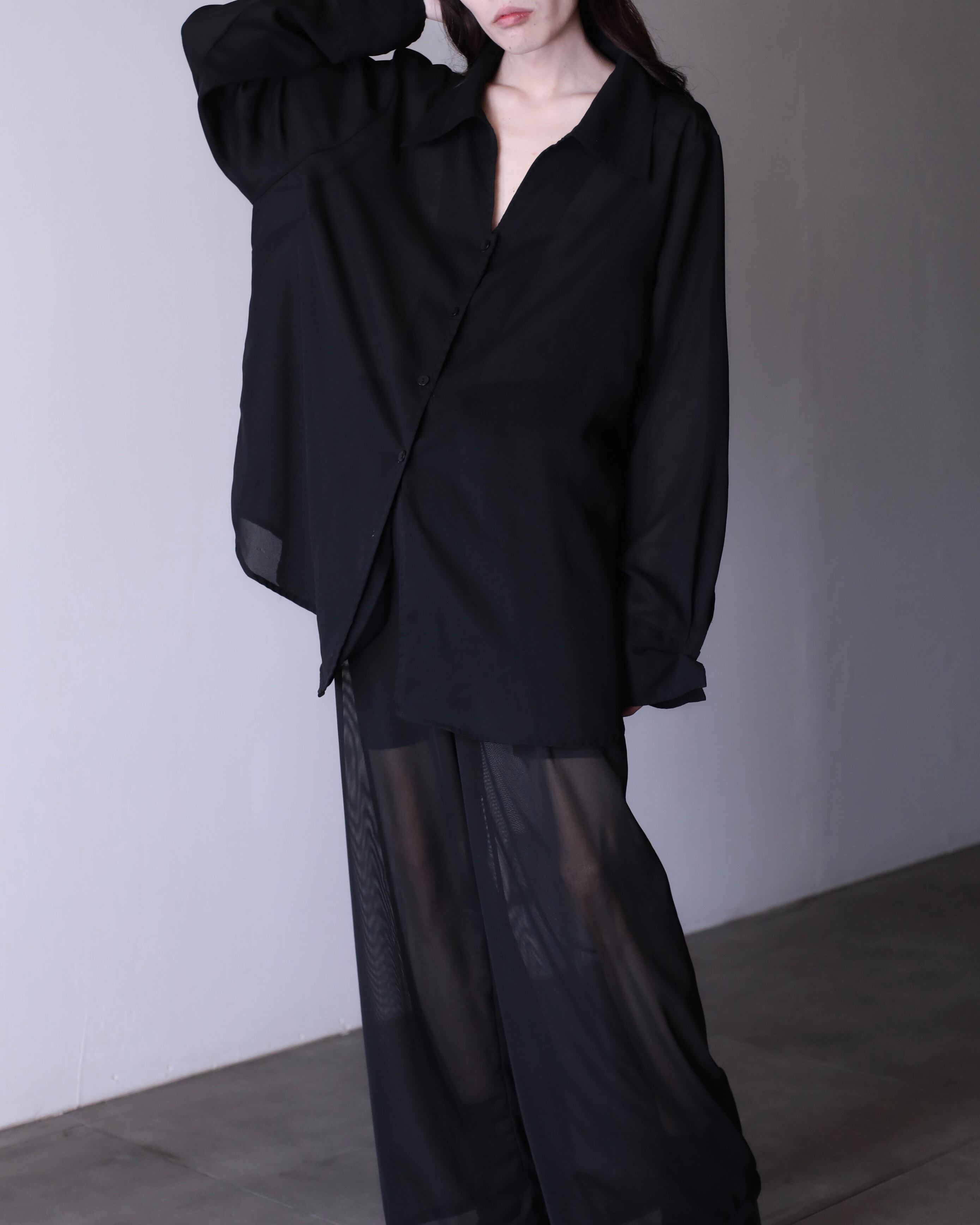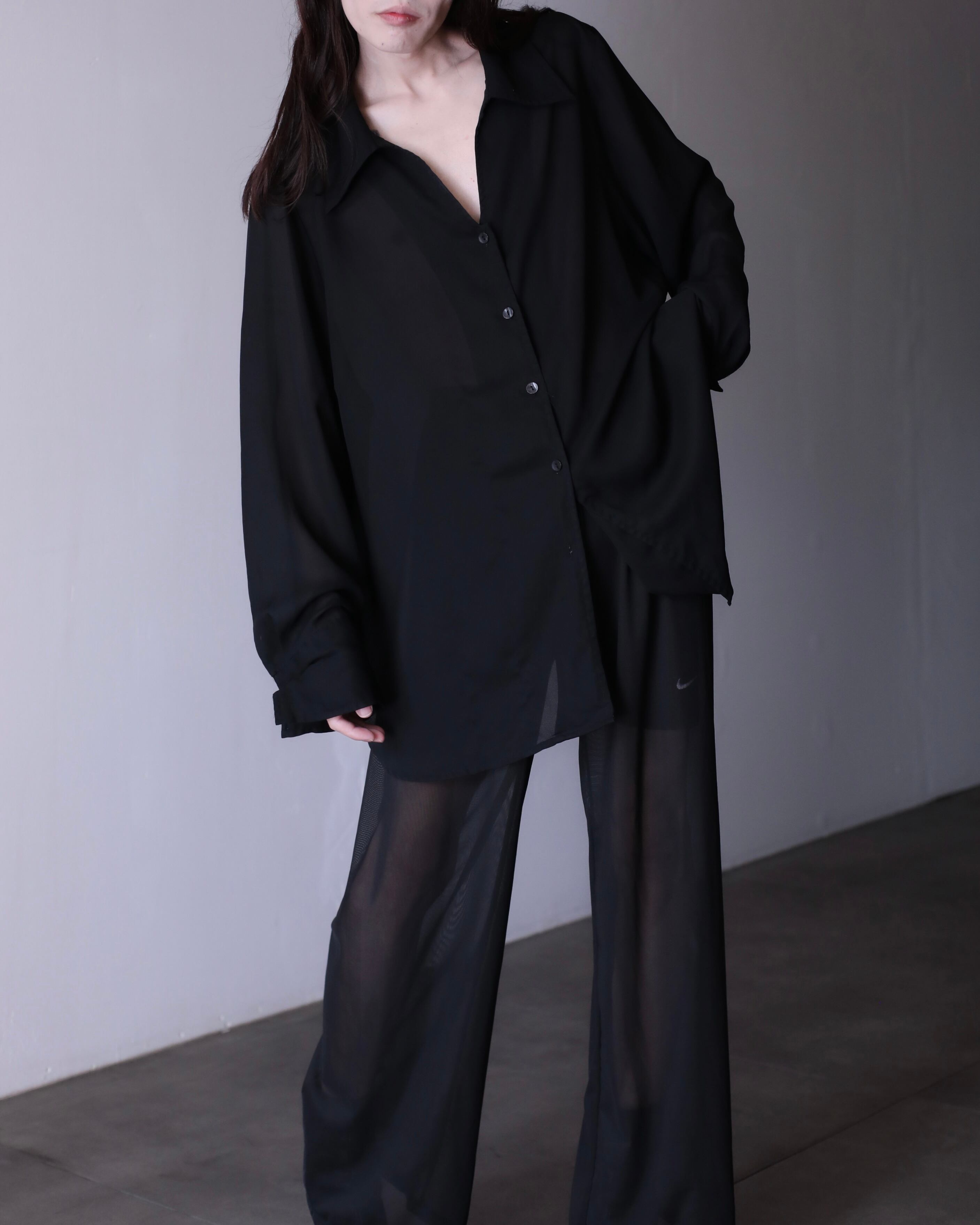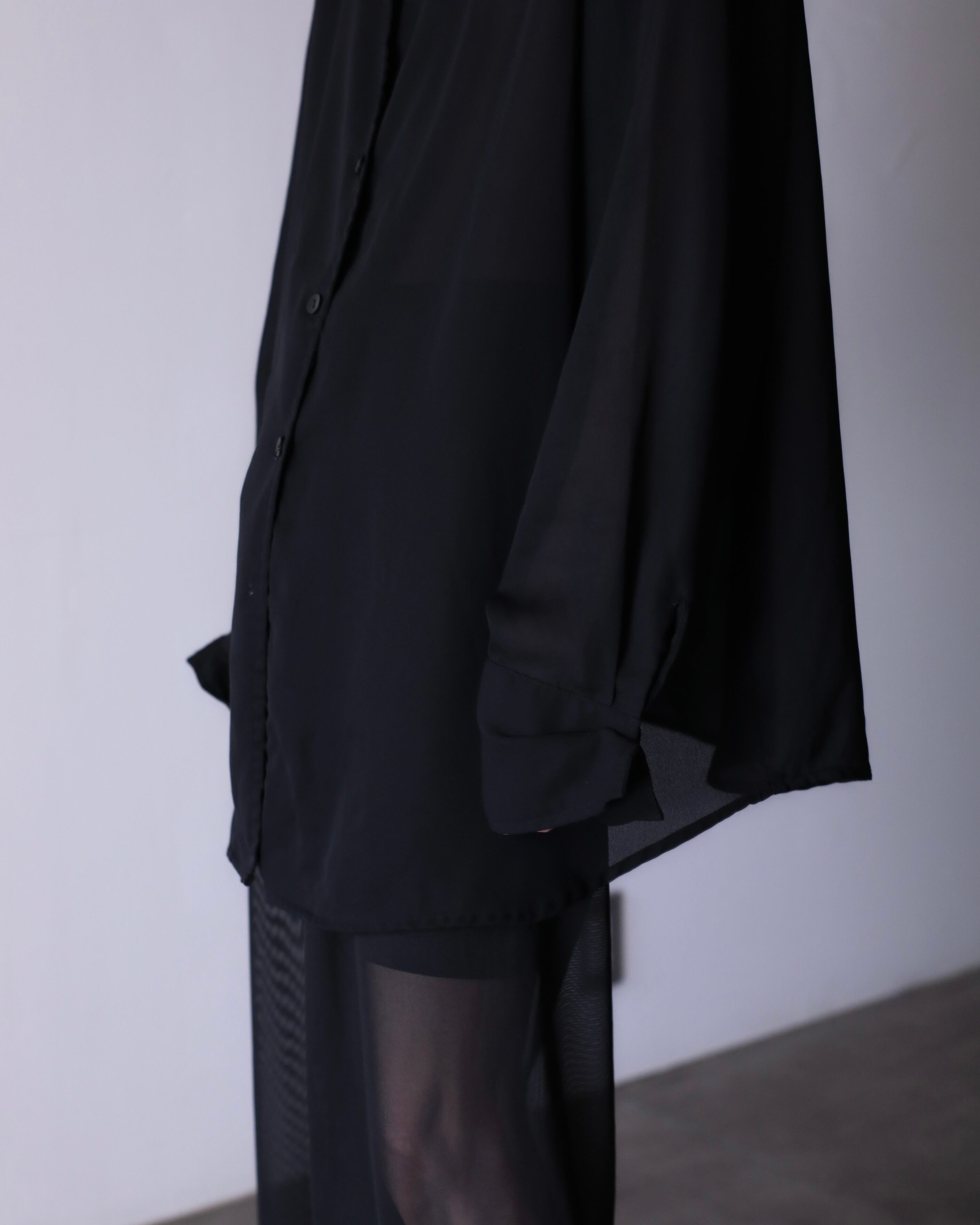 1990s sheer fabric drop shoulder over silhouette open collar shirt