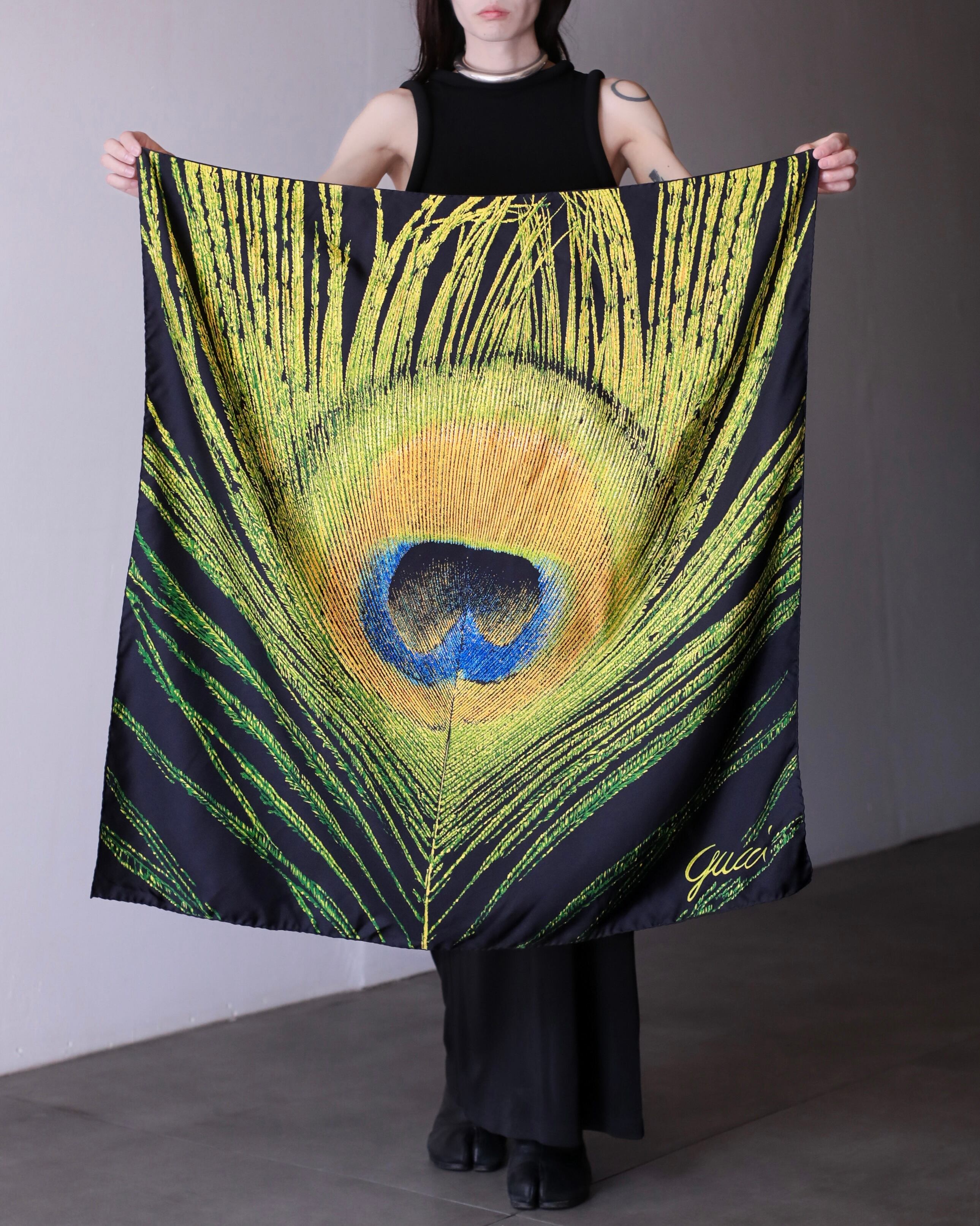 GUCCI "kujaku" art design silk 100% big scarf made in Italy