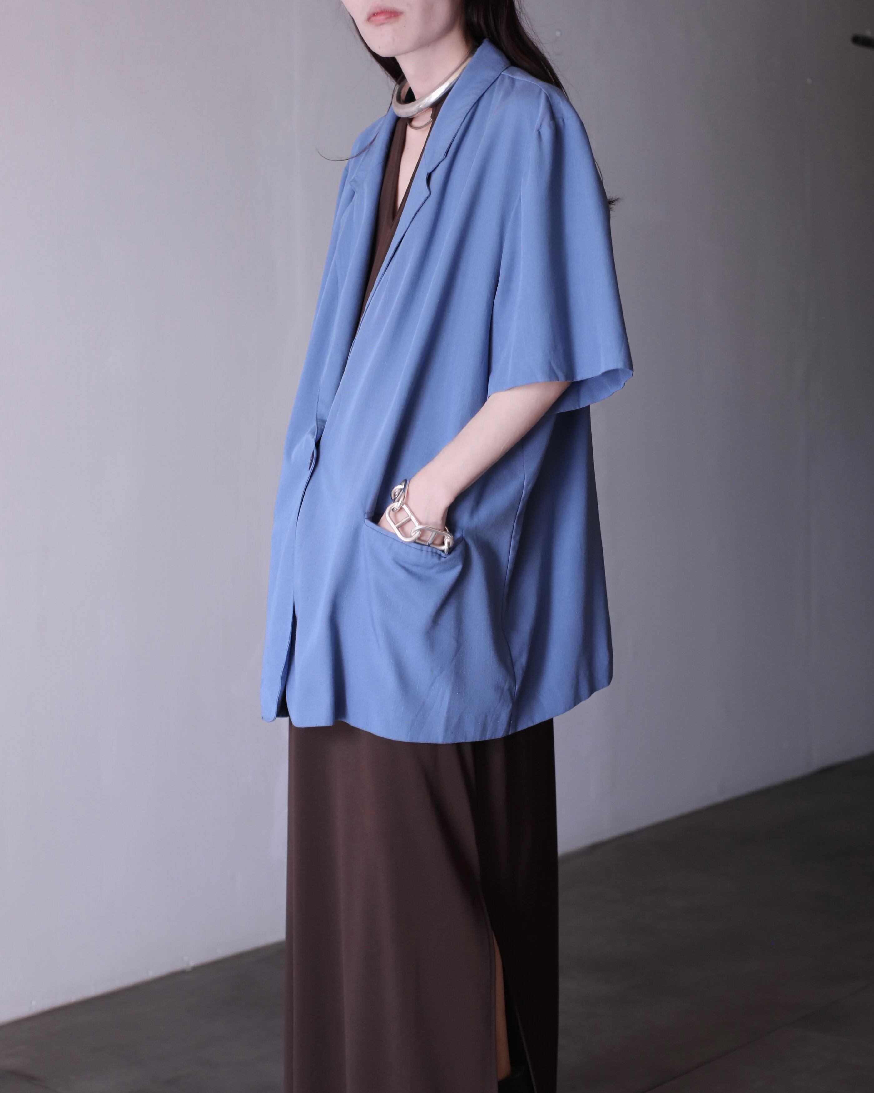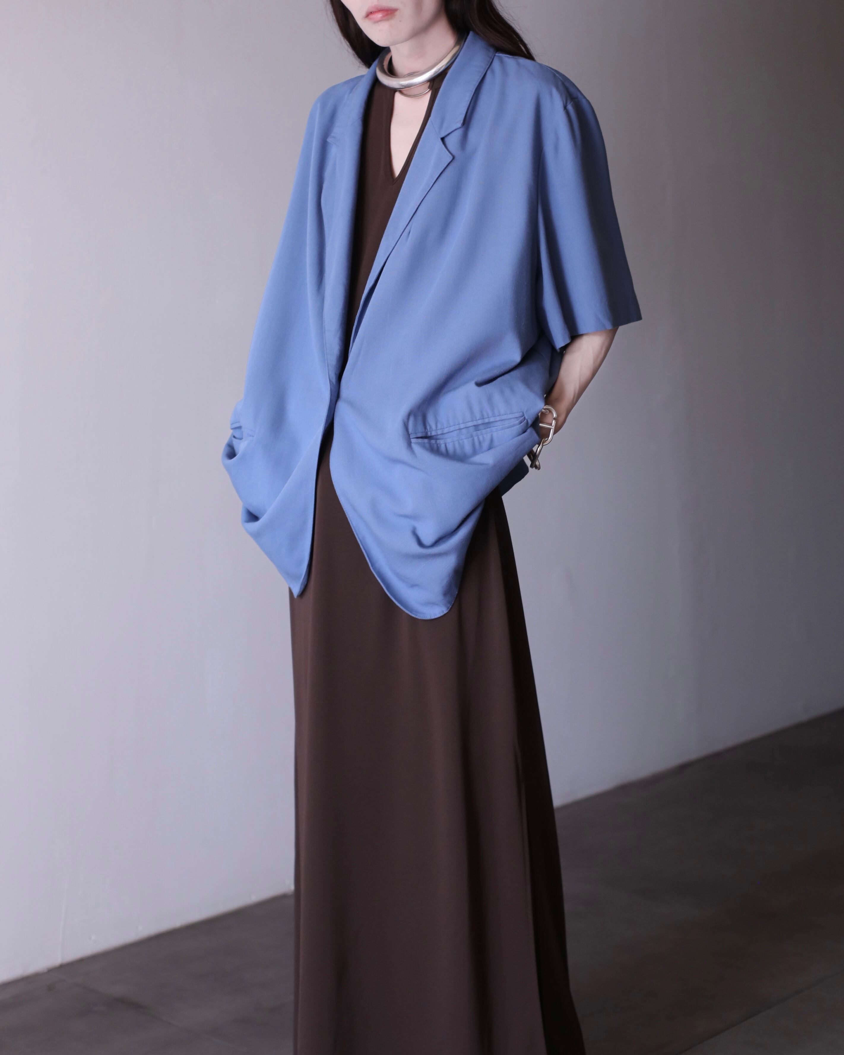 肩パッドも入っていなければ、裏地もないデザイン。レーヨンポリエステルのさらっとした生地感。