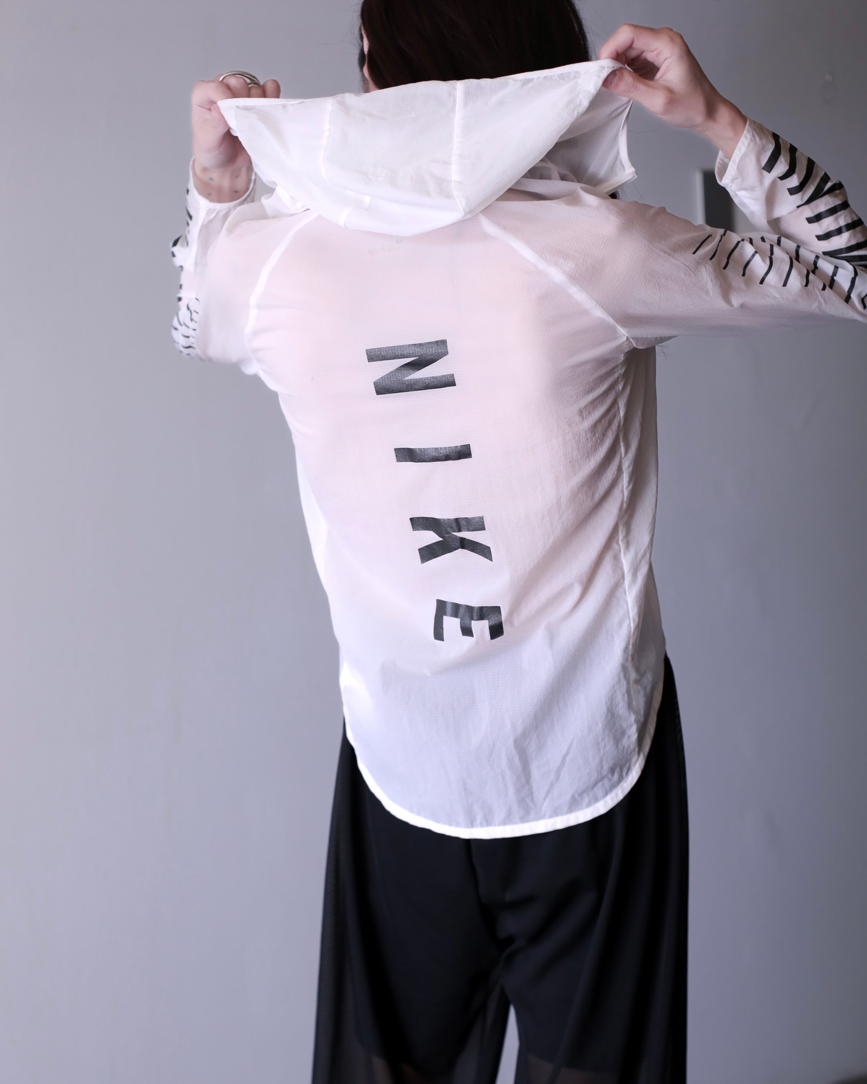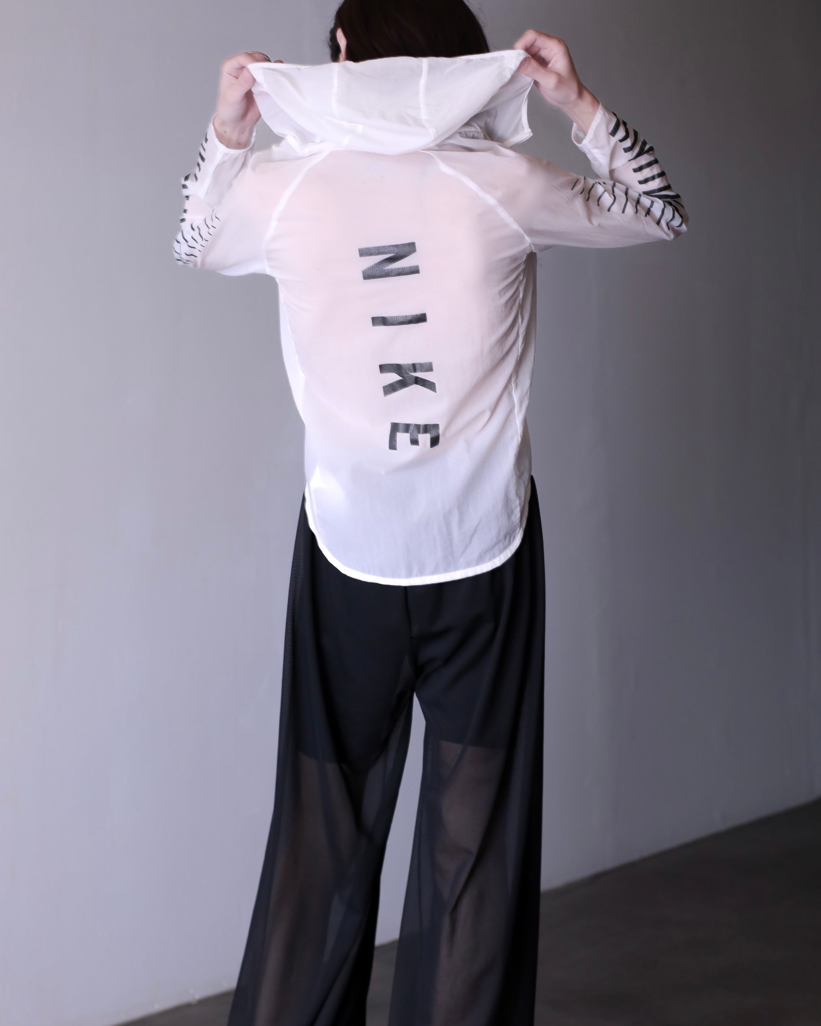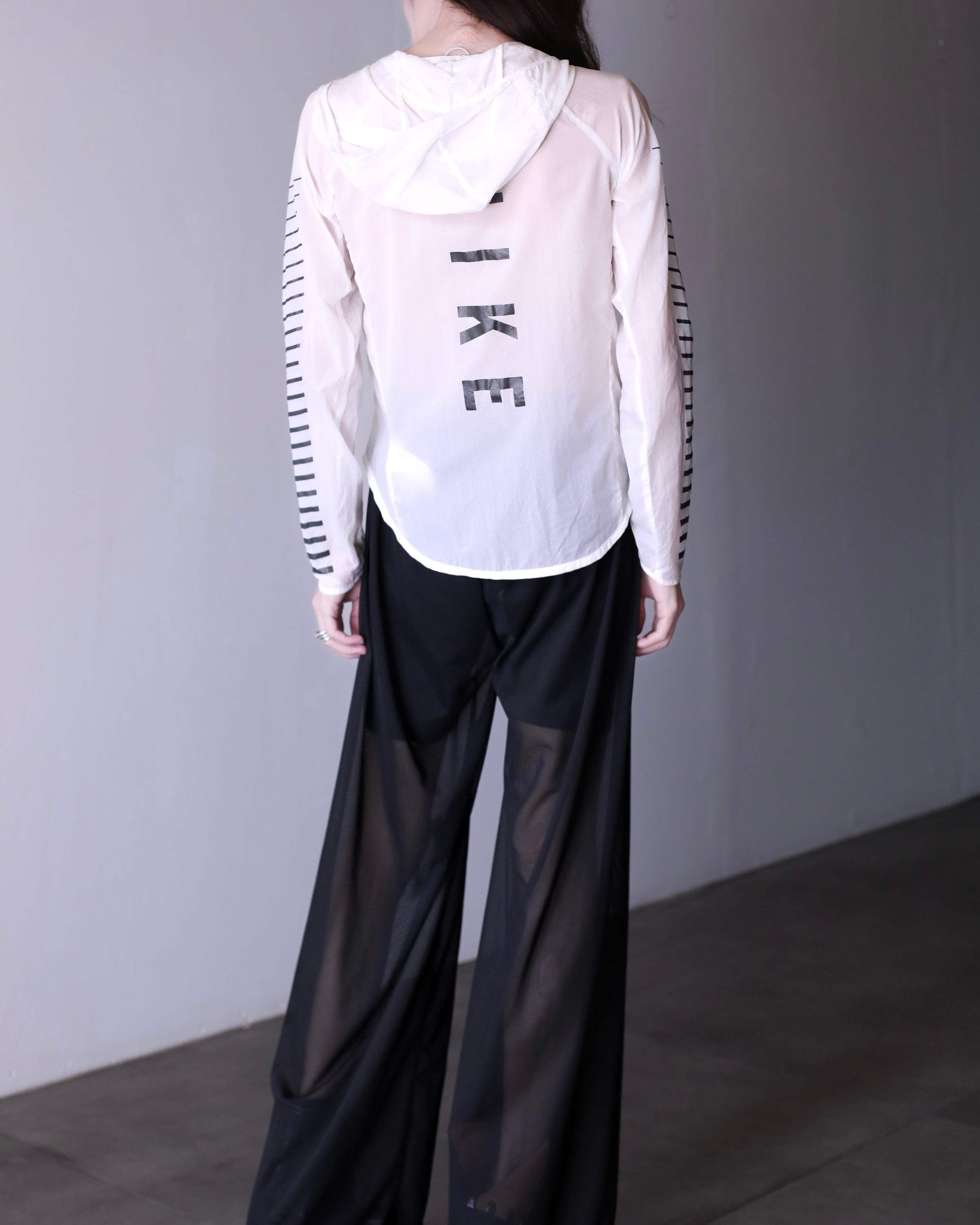 NIKE nylon sheer fabric back " N I K E" half zip parka