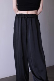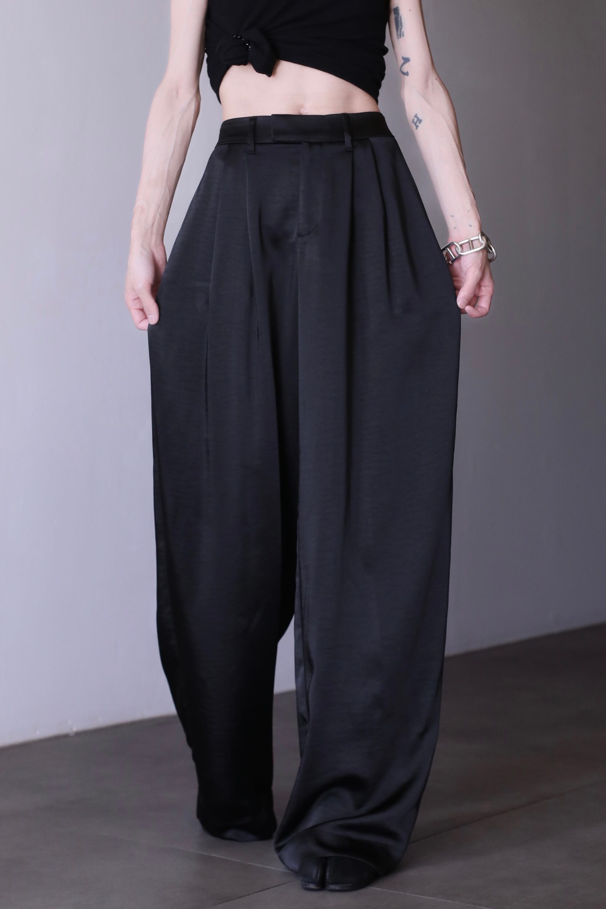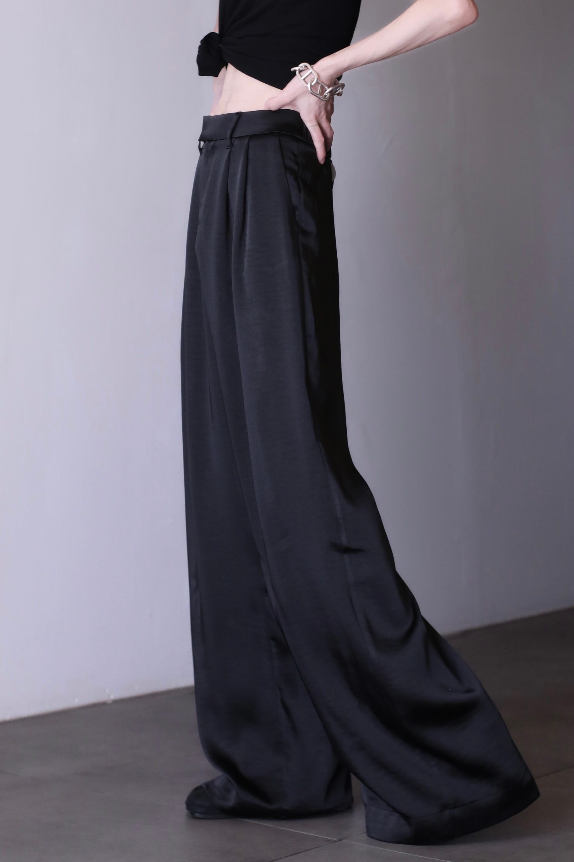hi-waist satin fabric 2tuck volume wide straight slacks