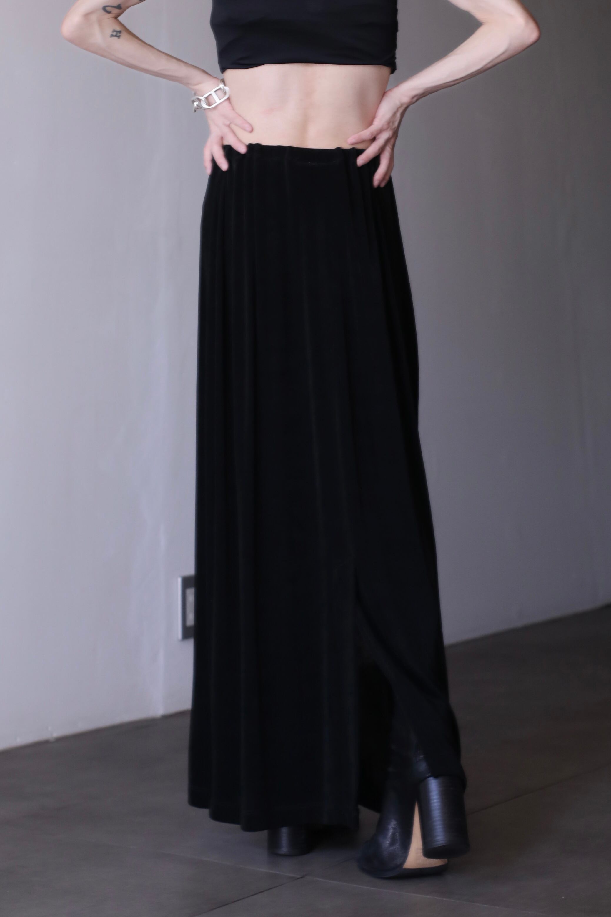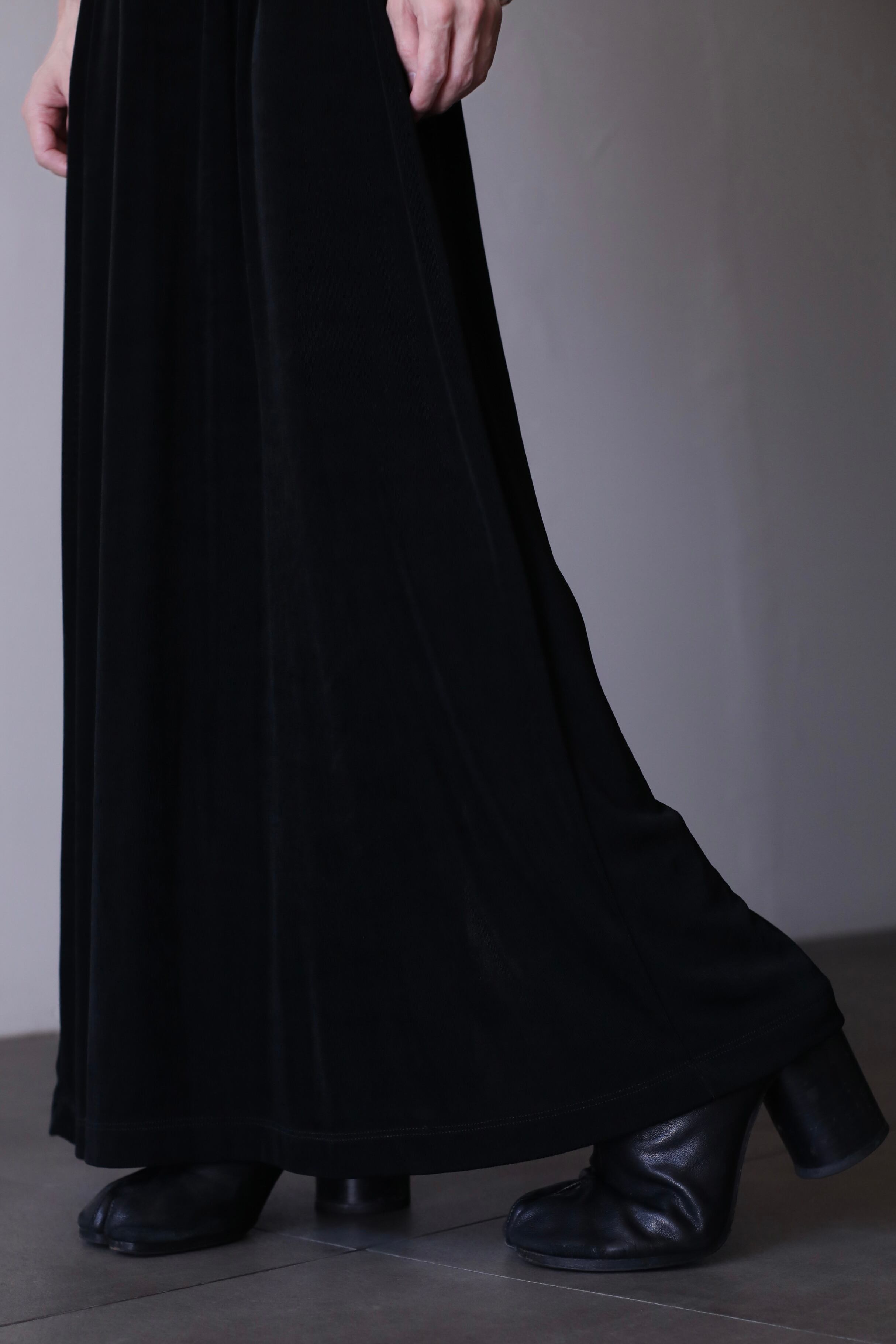 ドゥルドゥルとした縦横無尽にドレープする生地感が素晴らしいロングスカート。