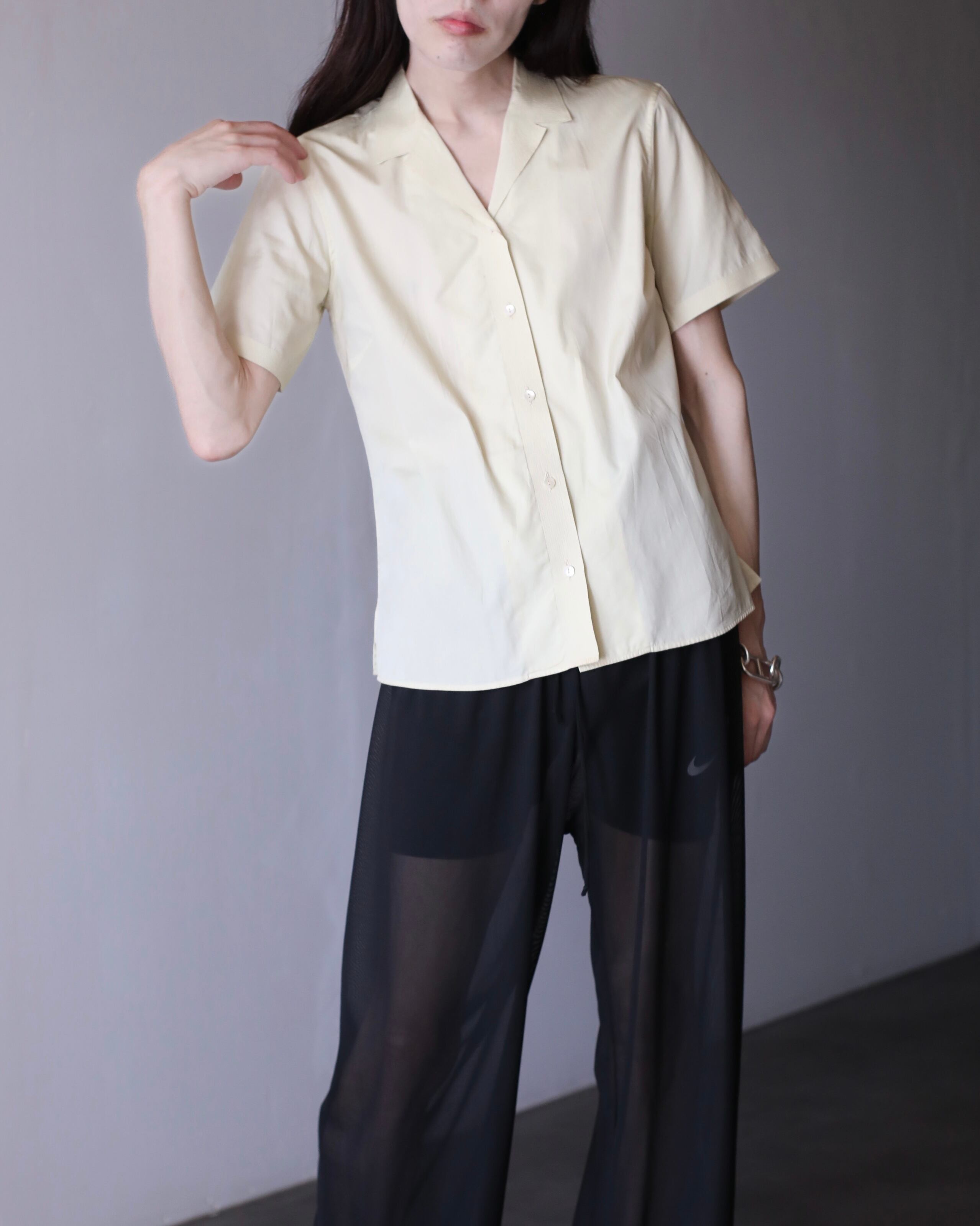 1990s JIL SANDER+ "sashiko" design open collar short sleeve box shirt Made In Italy
