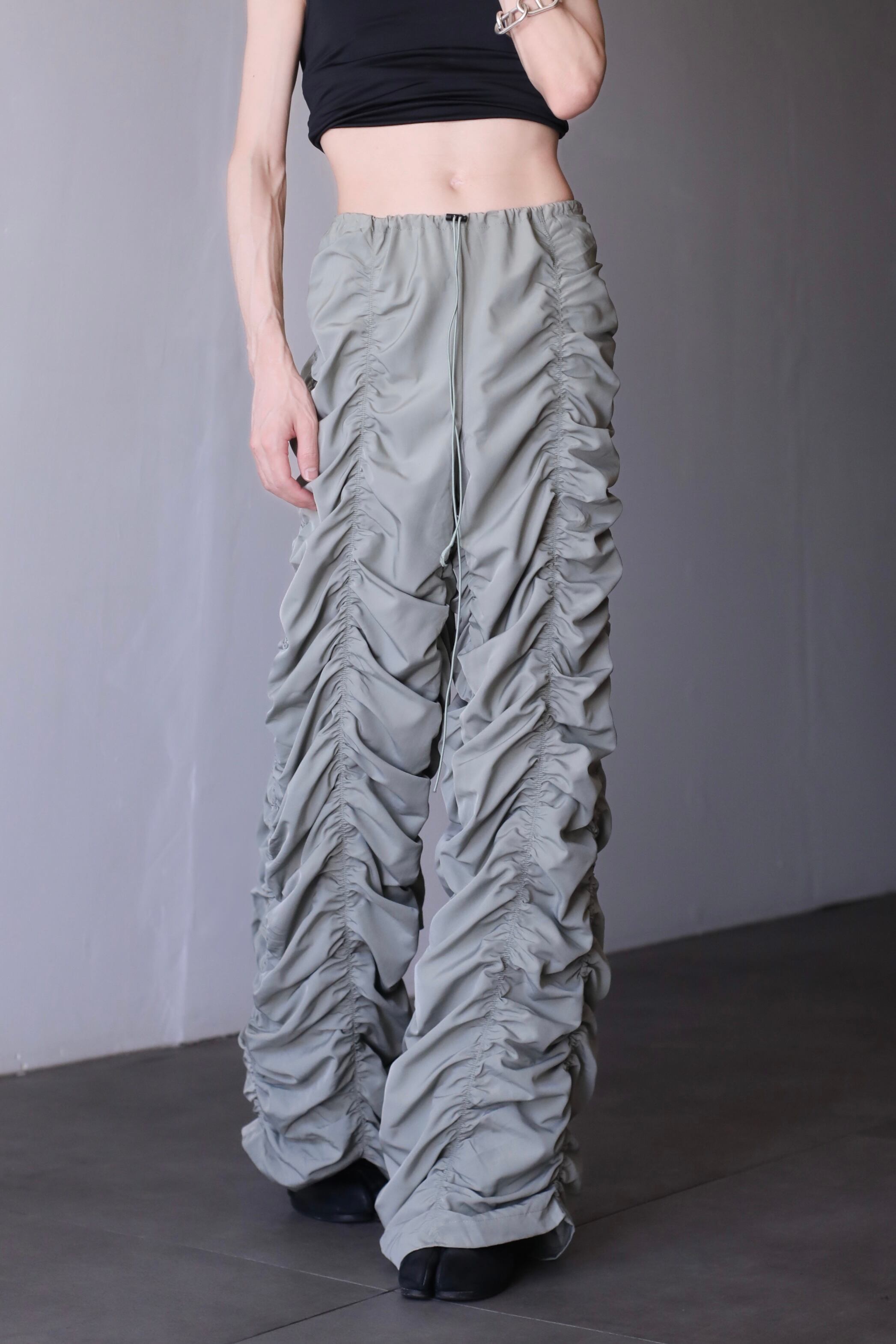 super shirring tech drawstring design wide straight pants