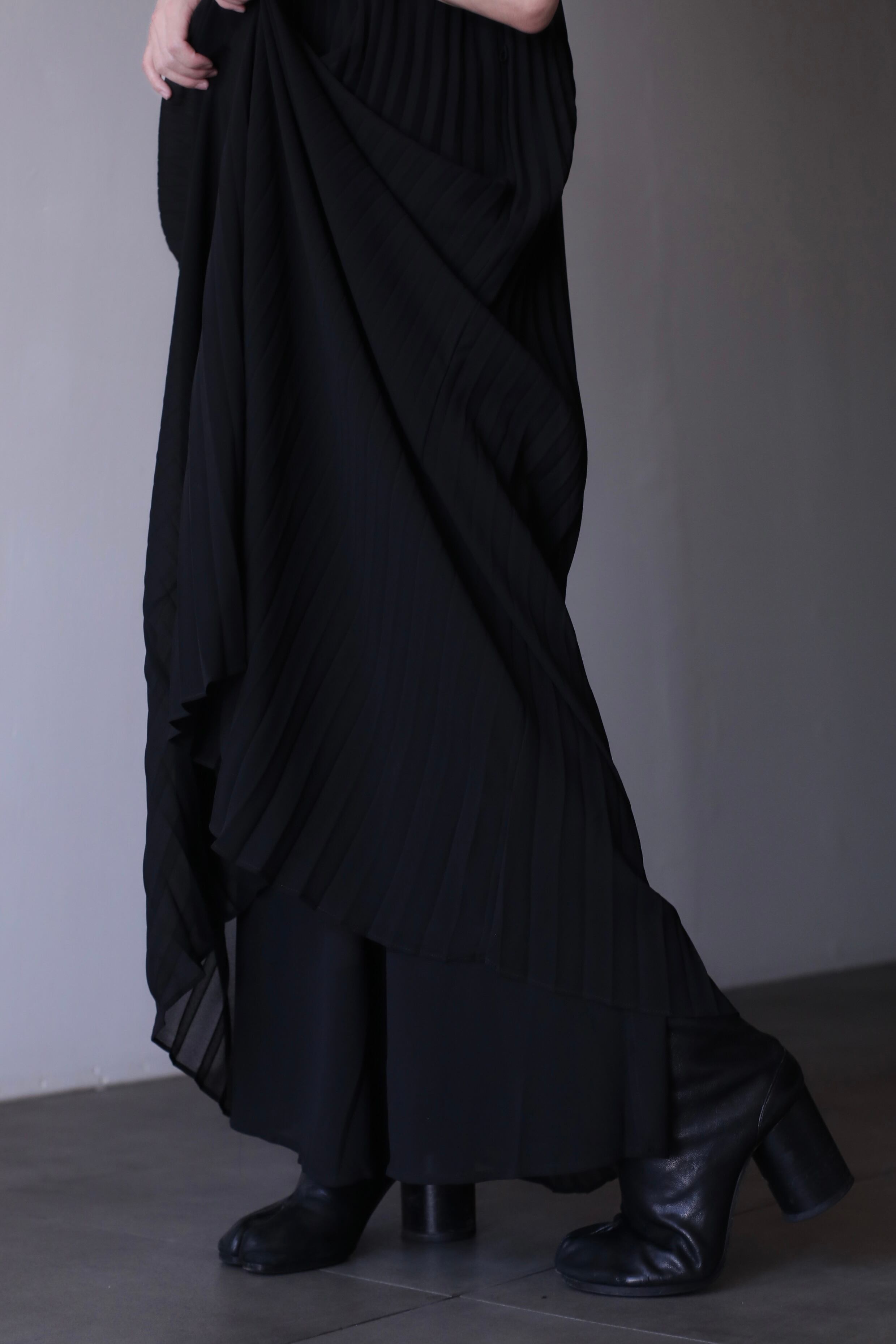 1990s~ pleats volume A-line silhouette maxi length dress one piece