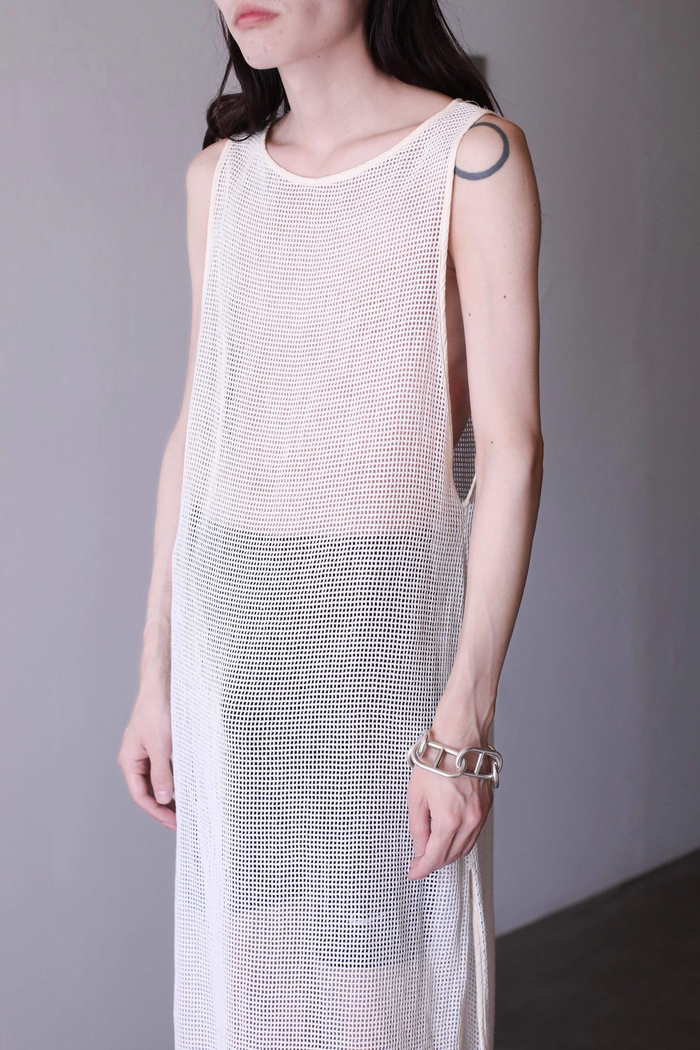mesh knit maxi length over silhouette no sleeve dress one piece