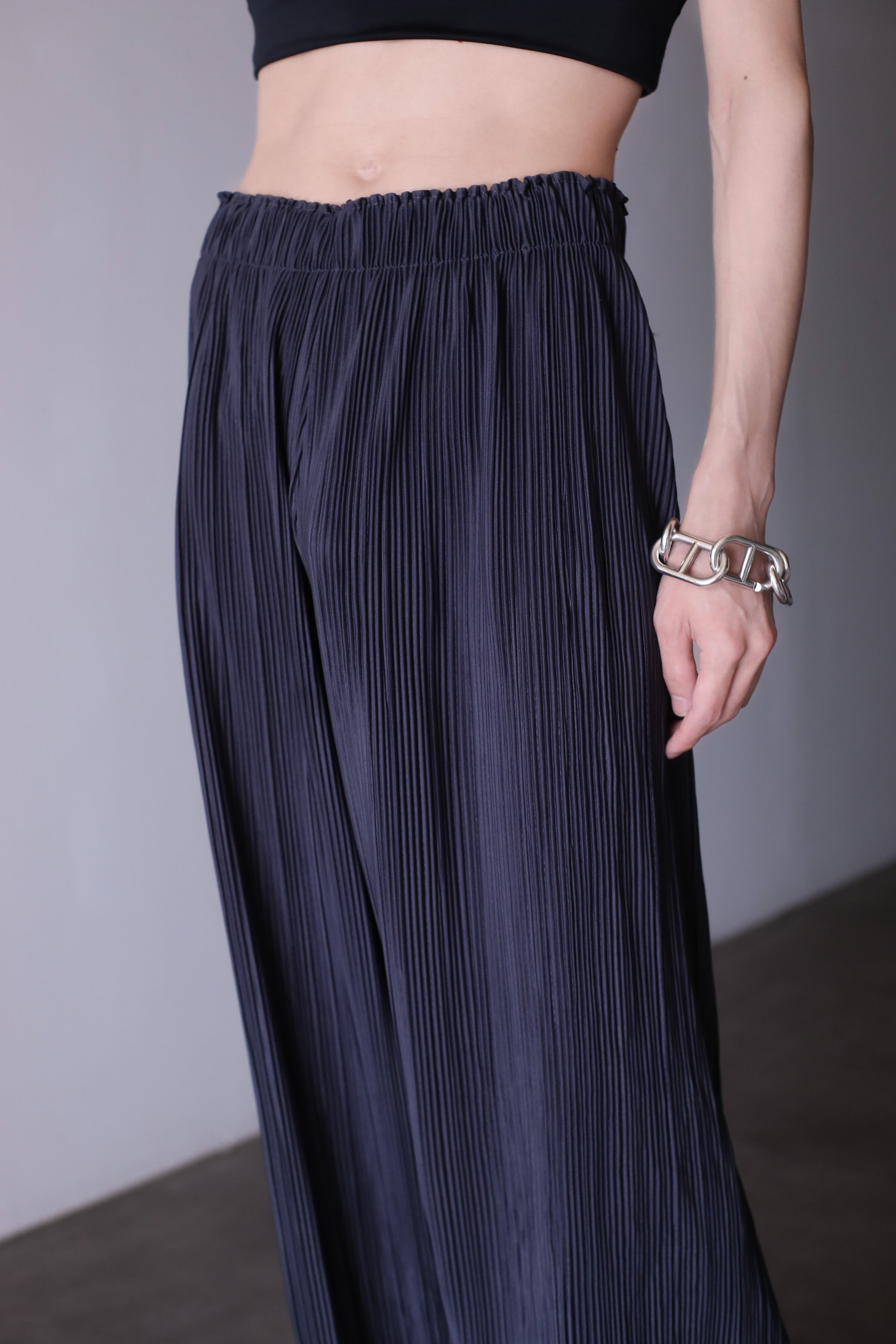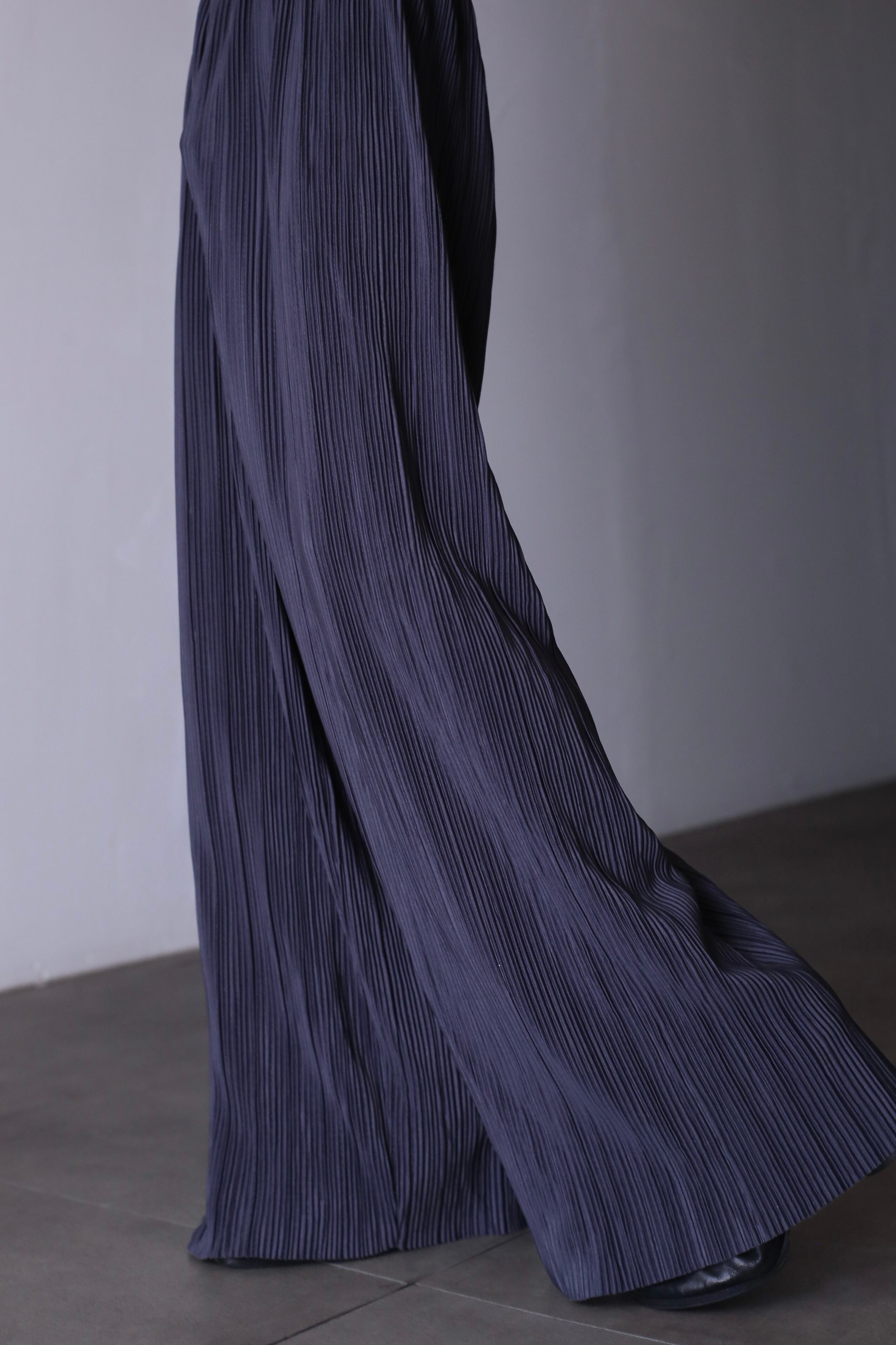 "tsutsu" 3D wide straight pleats pants deep gray color
