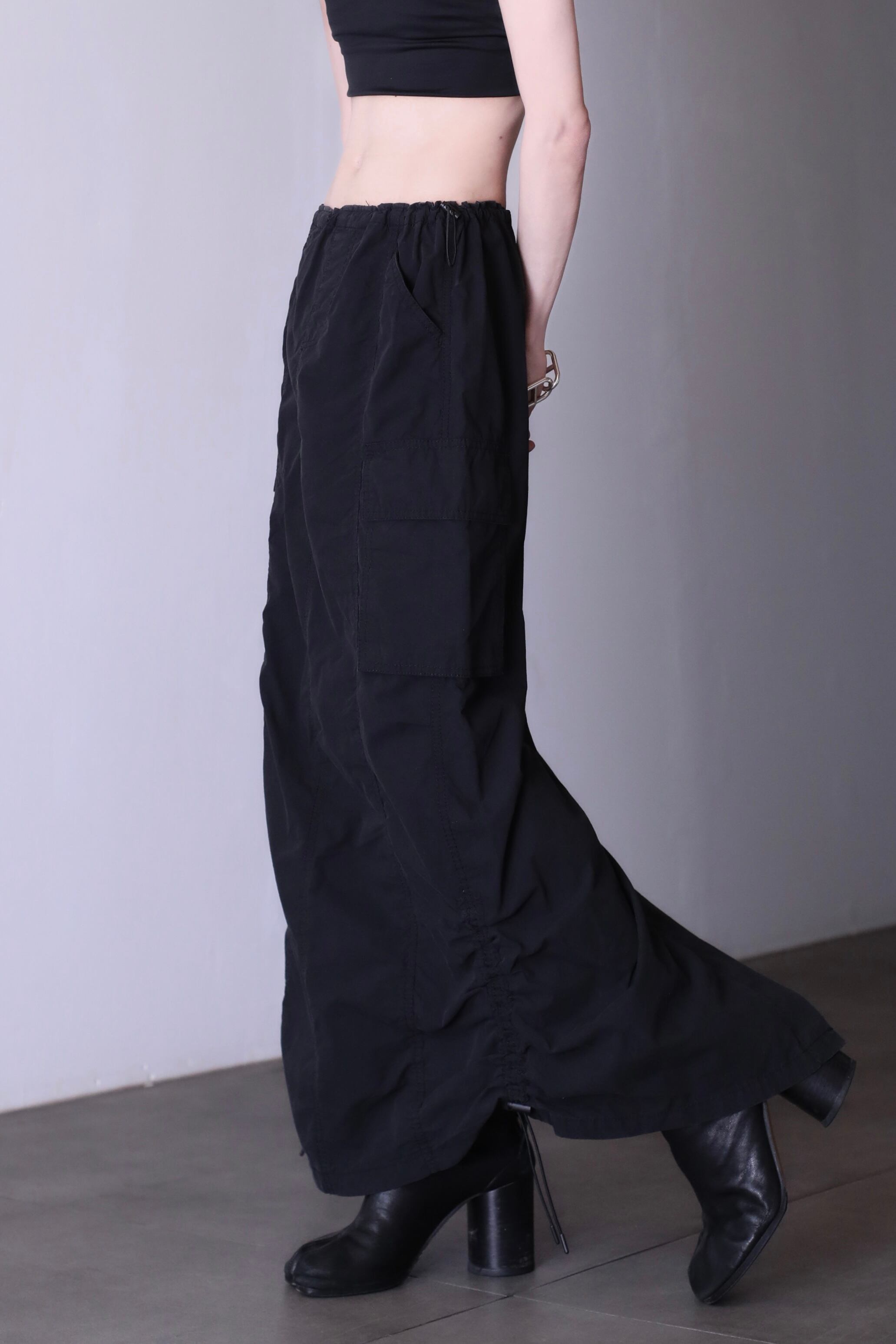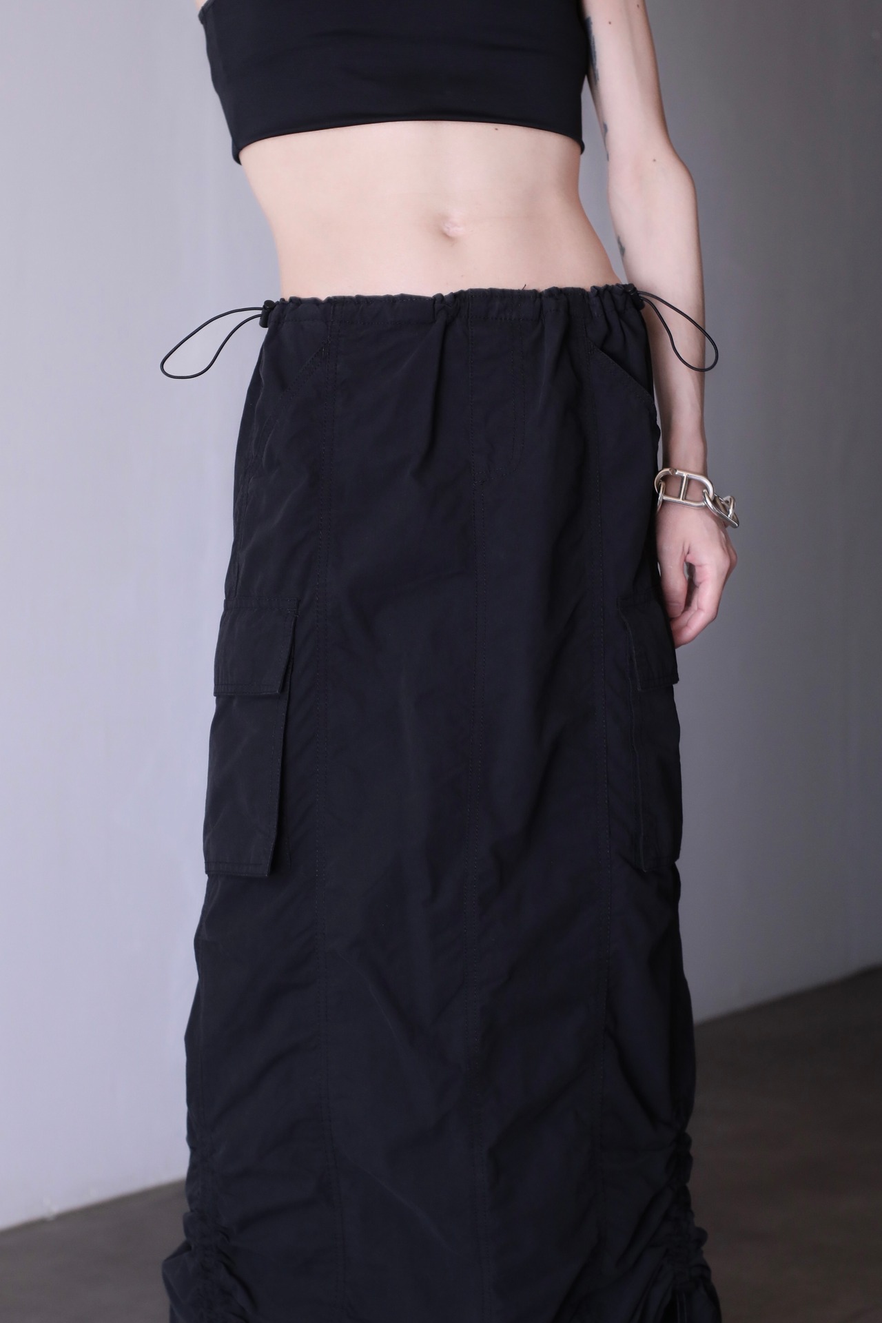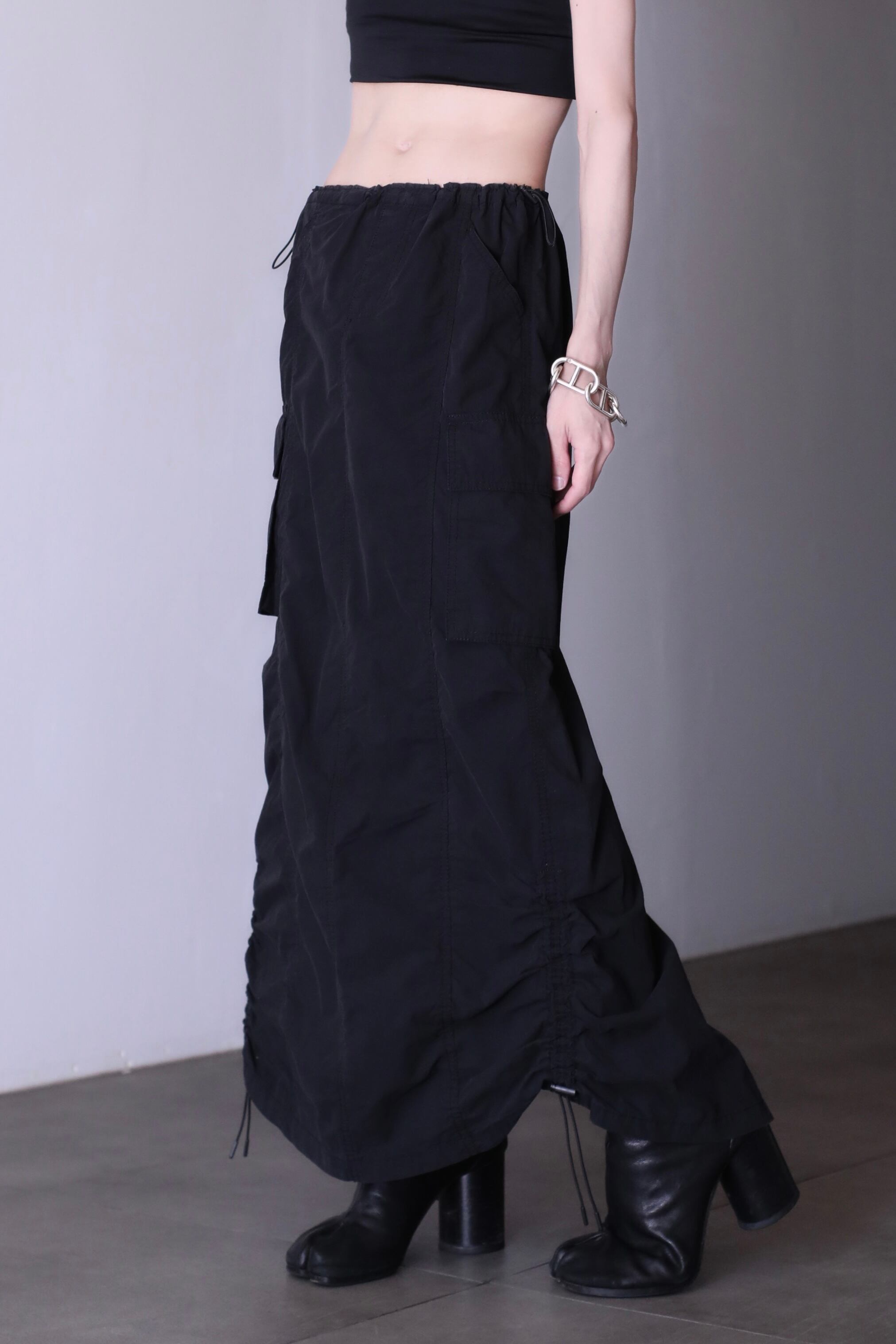 parachute tech drawstring design long skirt