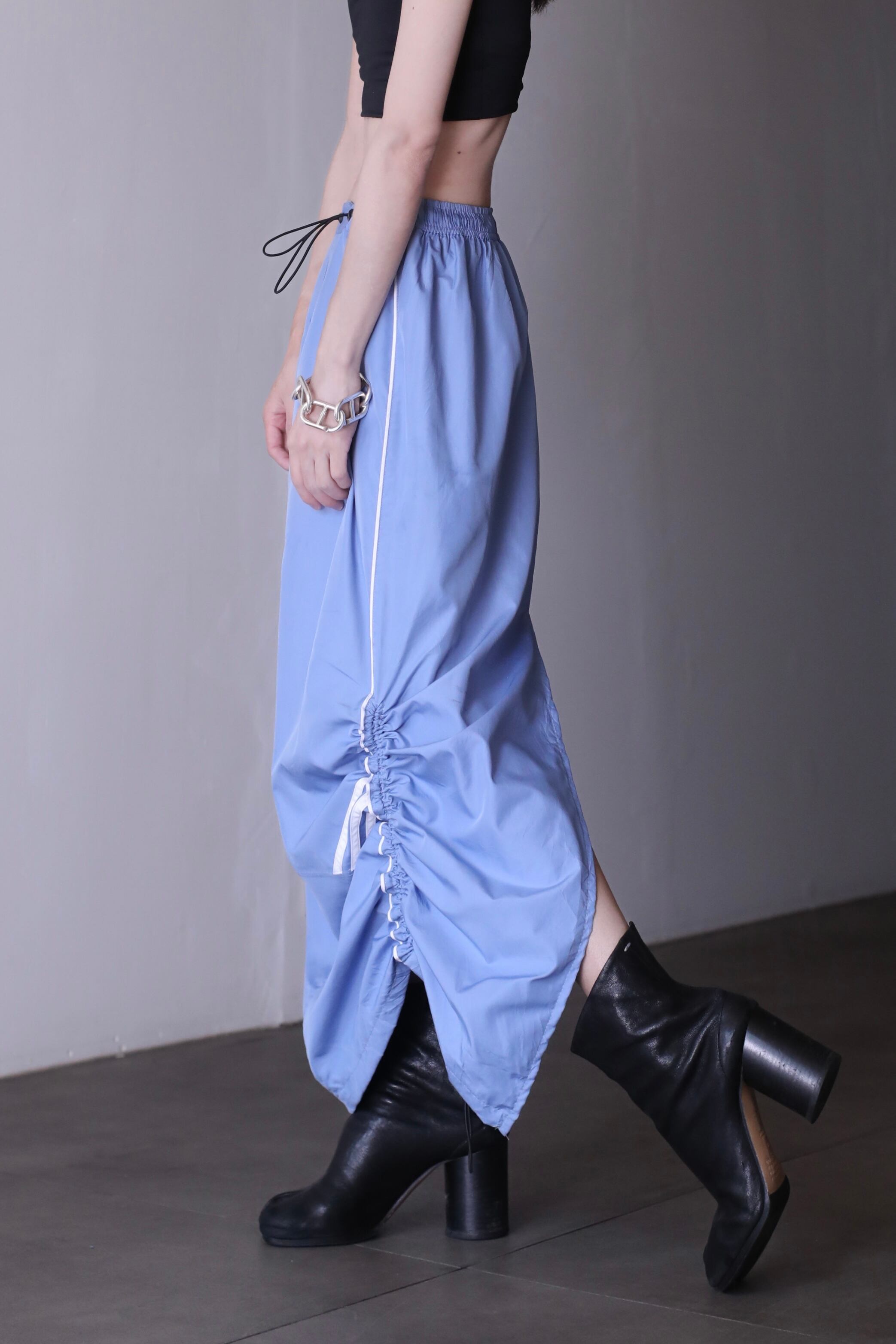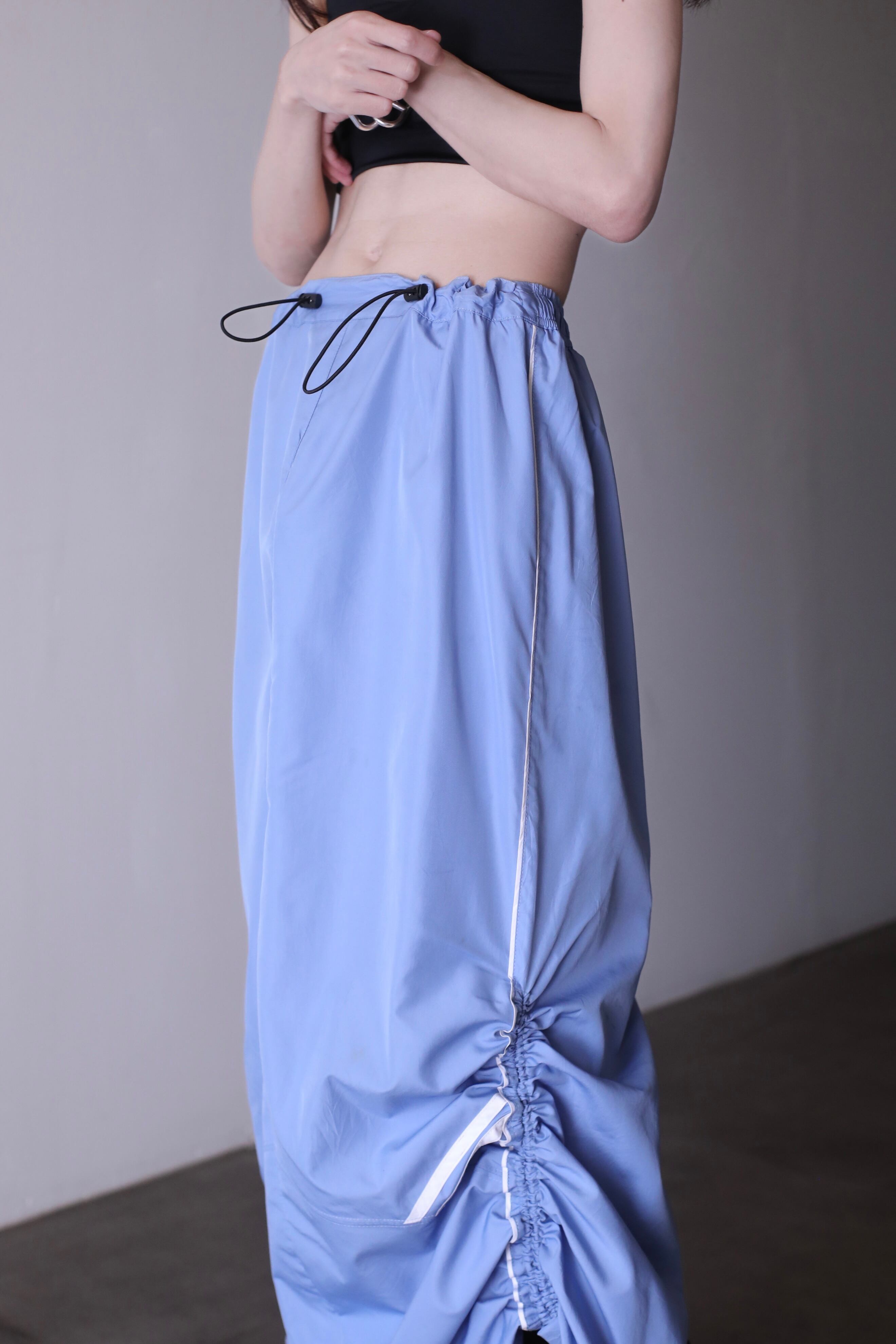 ウエストと両サイド裾にドローコードが仕込まれているディテールで裾のドローはしぼると縦にクシュクシュとしてくれてデザイン性もバッチリです。