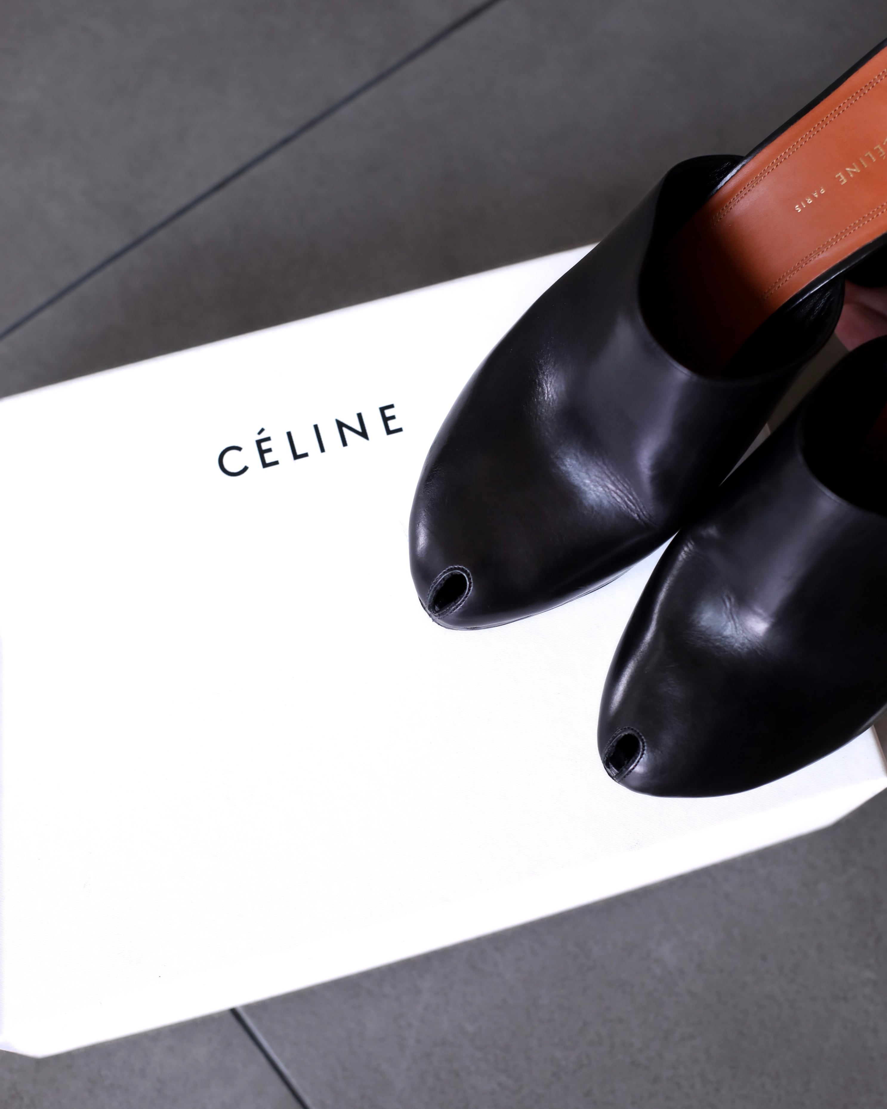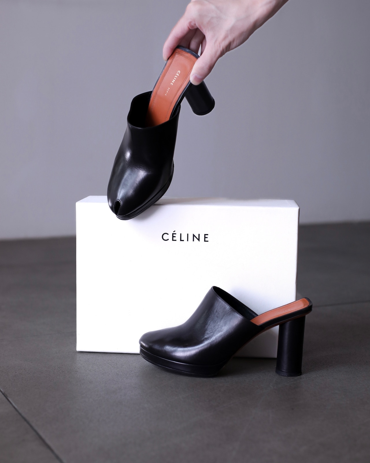 CÉLINE by PHOEBE PHILO peep toe design chunky heel leather mule