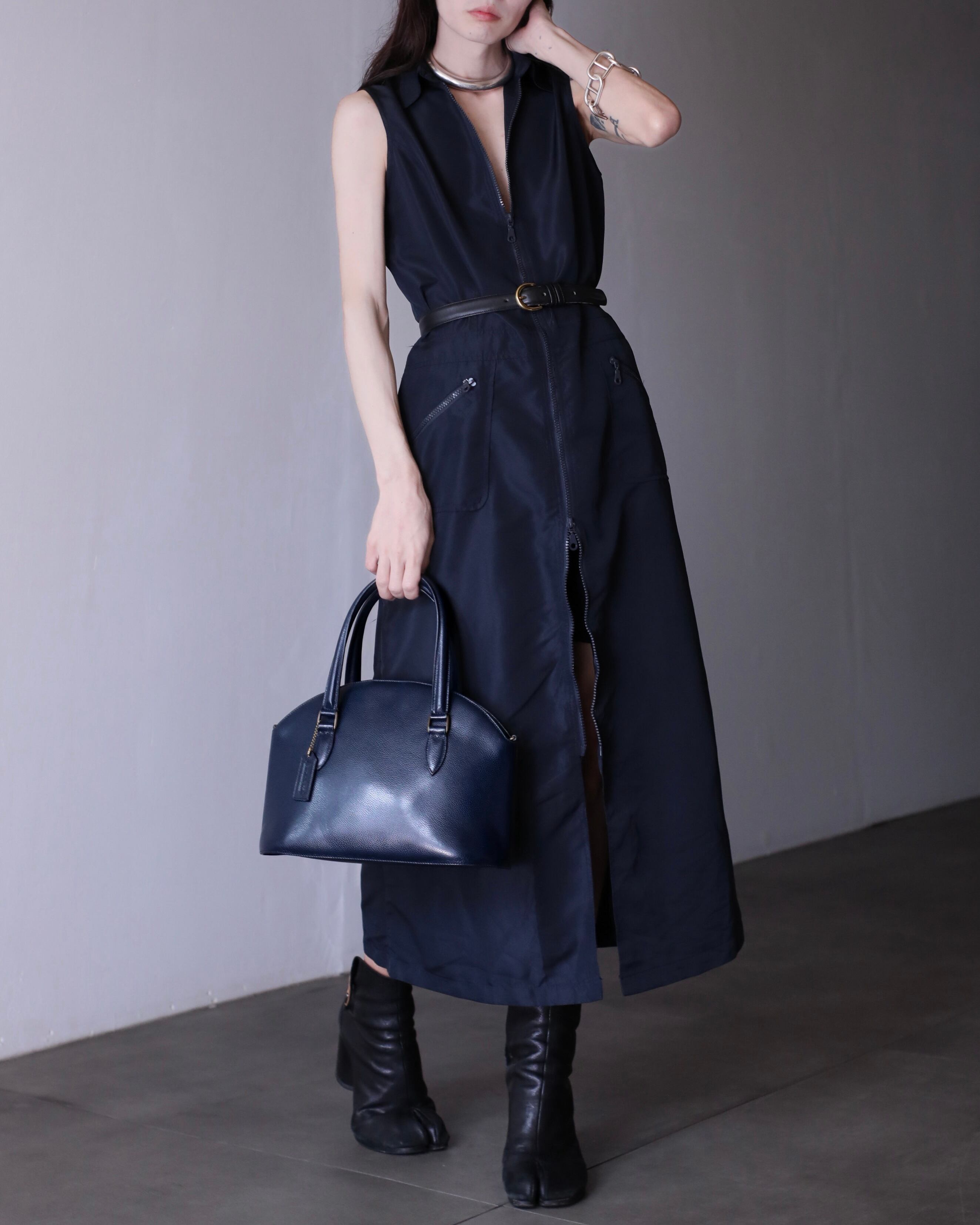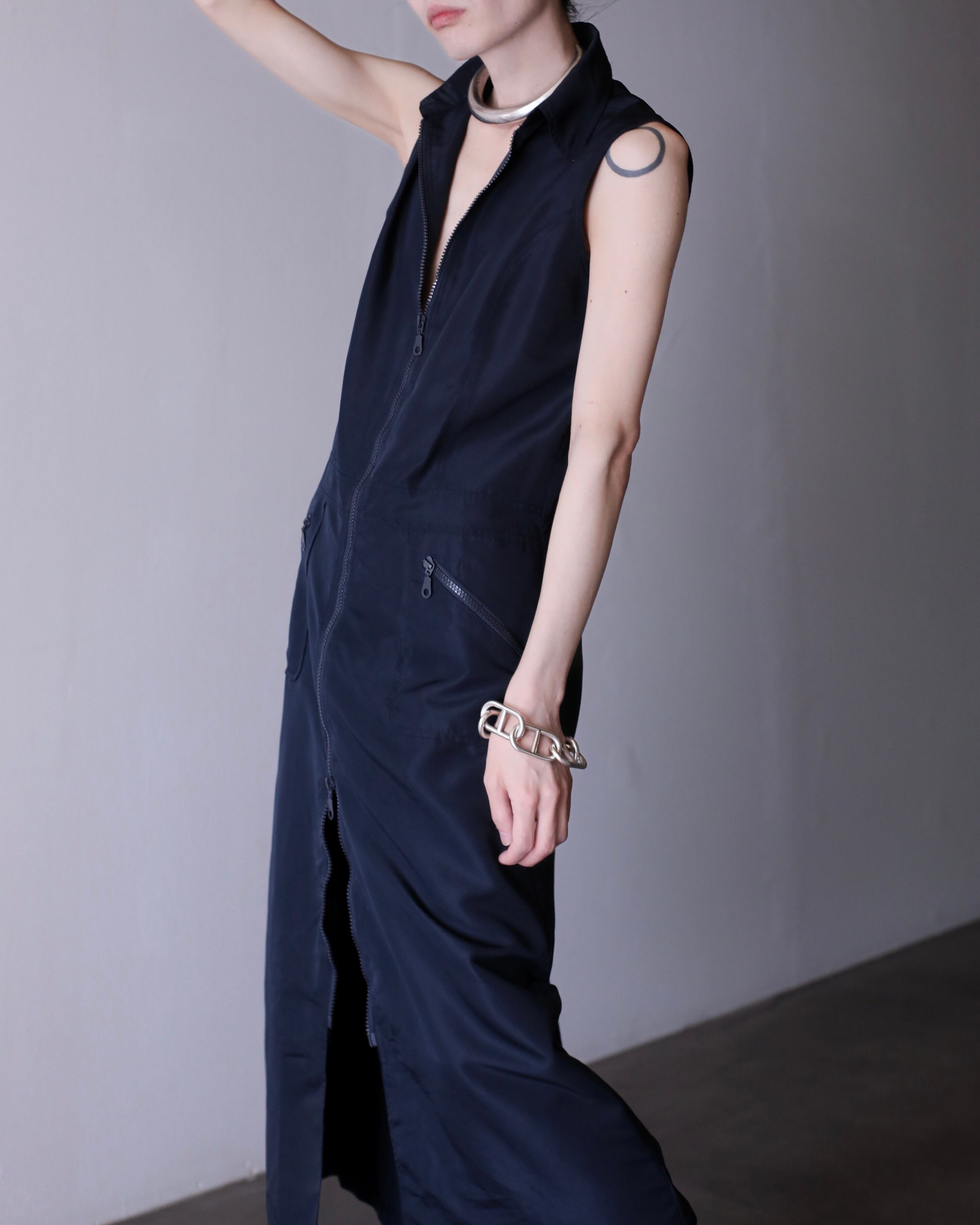 1990s euro tech double zip design long one piece