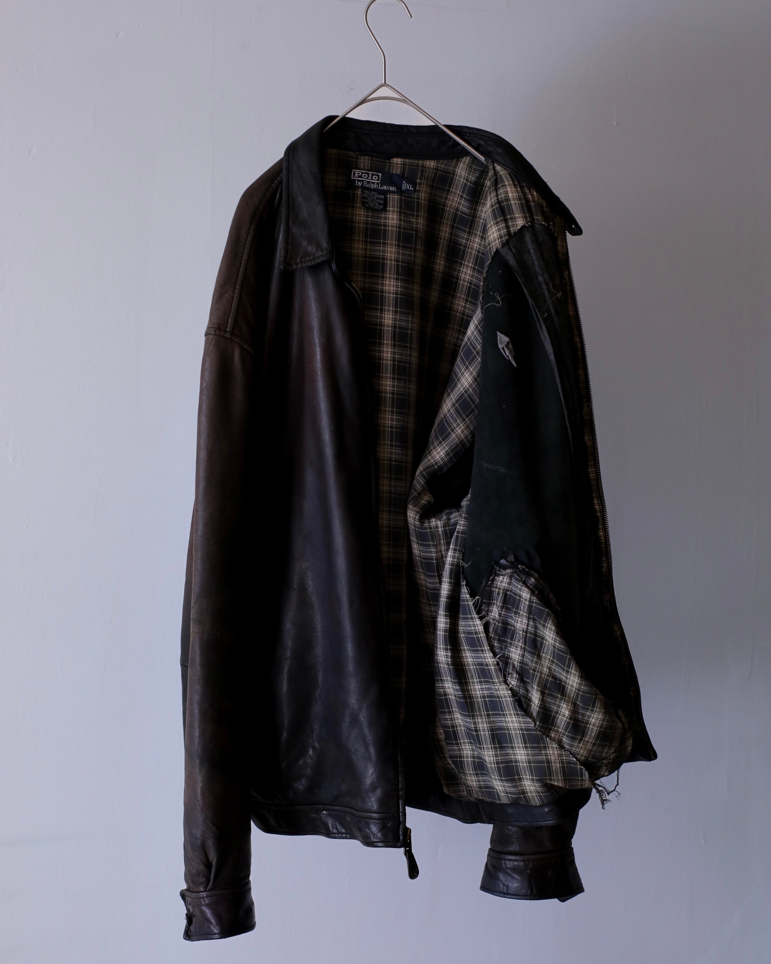 1990s Polo by Ralph Lauren "boro" mochi mochi leather jacket oversized