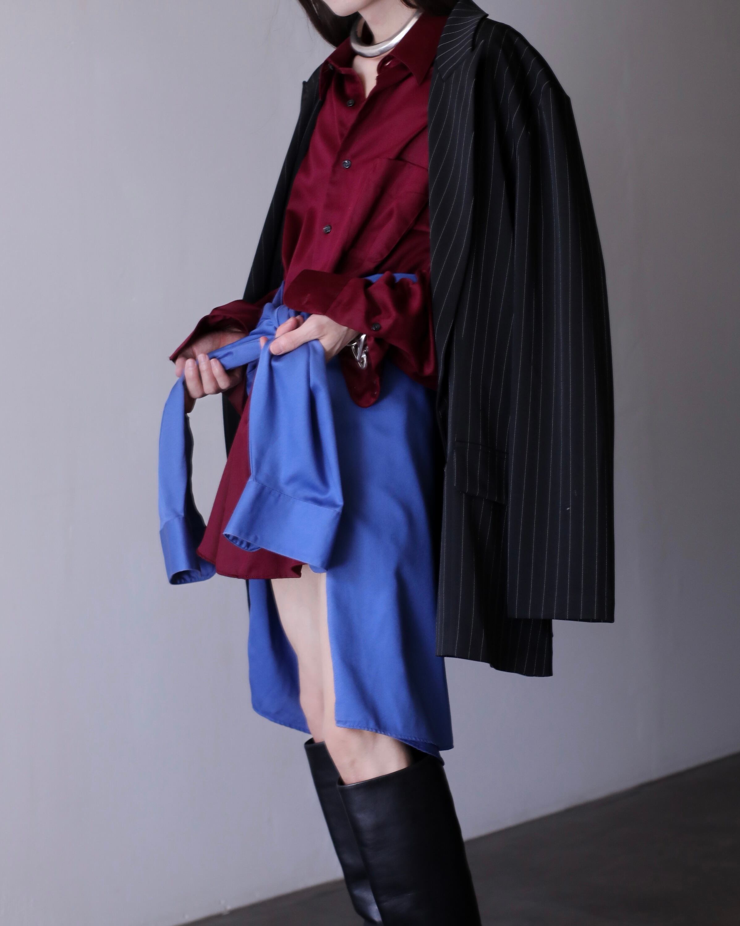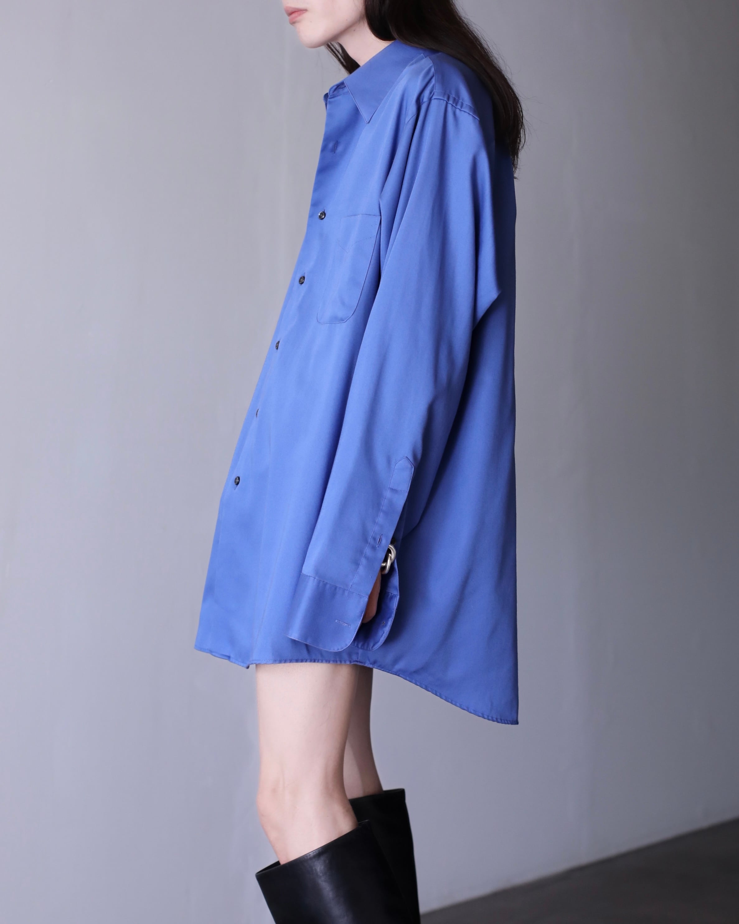 1990s~ cotton satin blue color dress shirt oversized