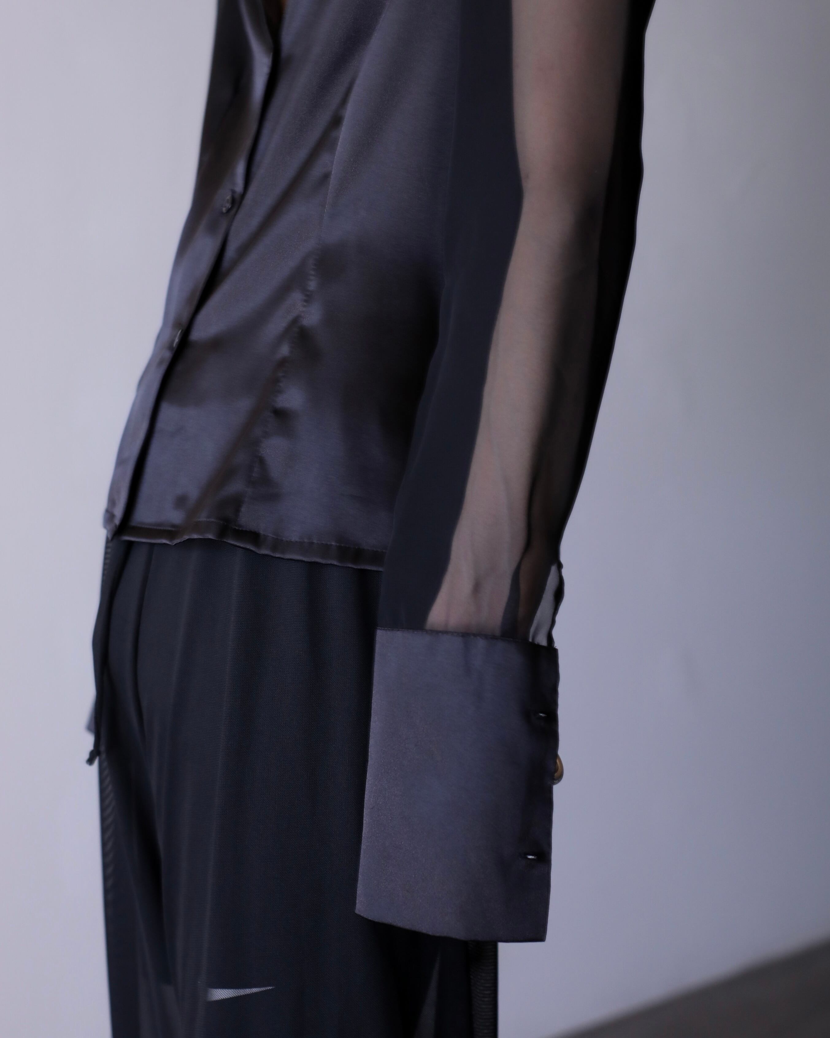 1990s sheer × satin switching design double cuffs dress shirt Made In Italy