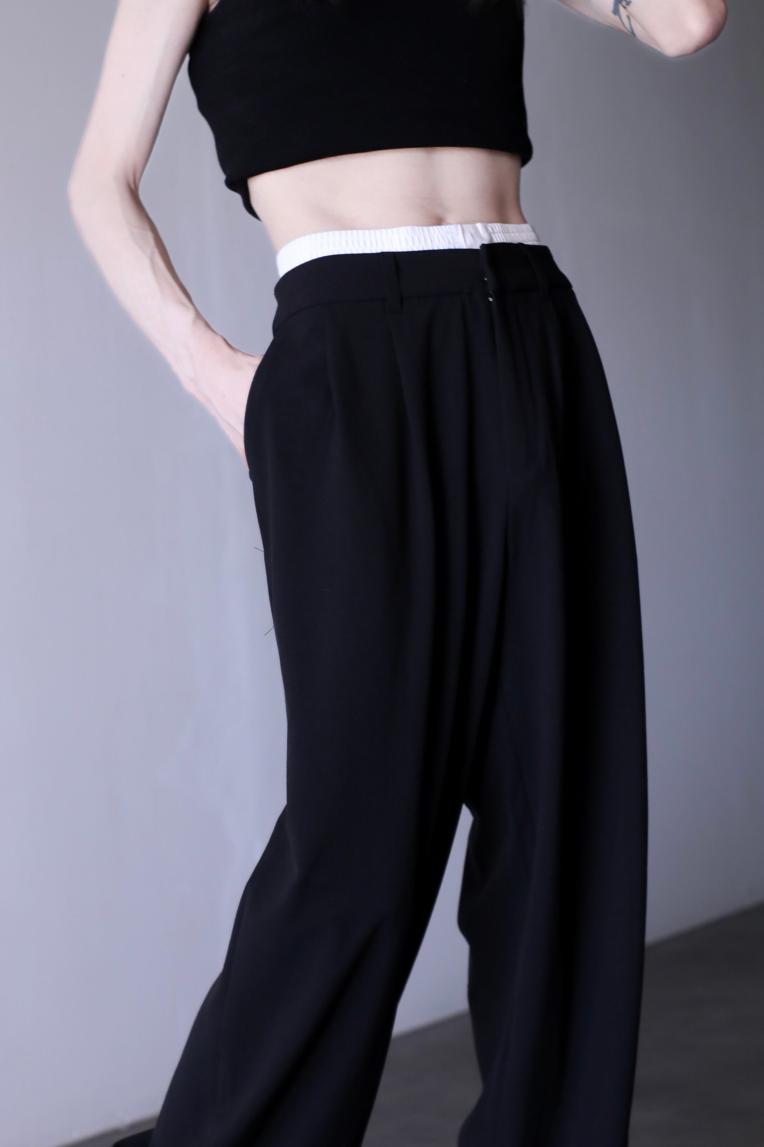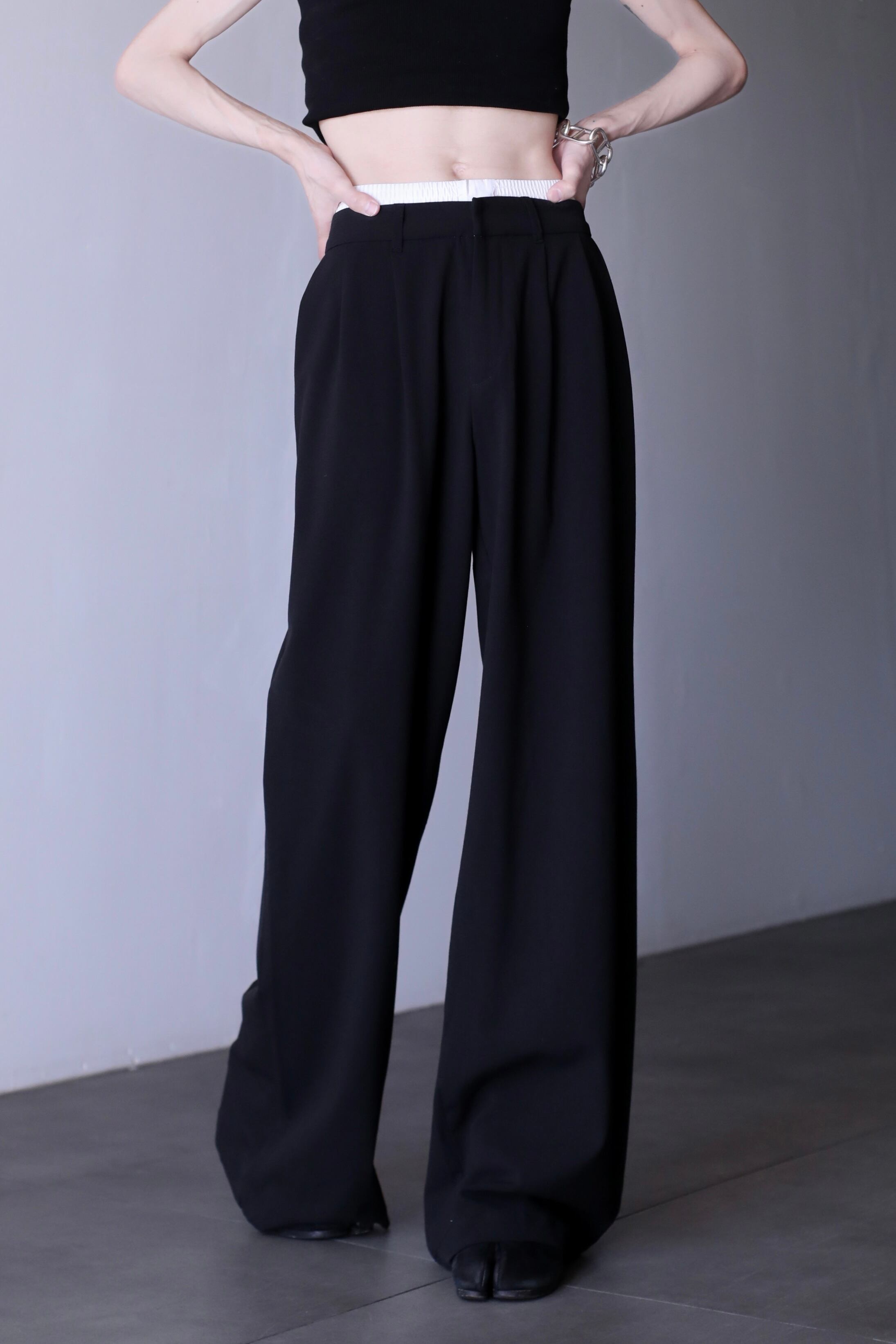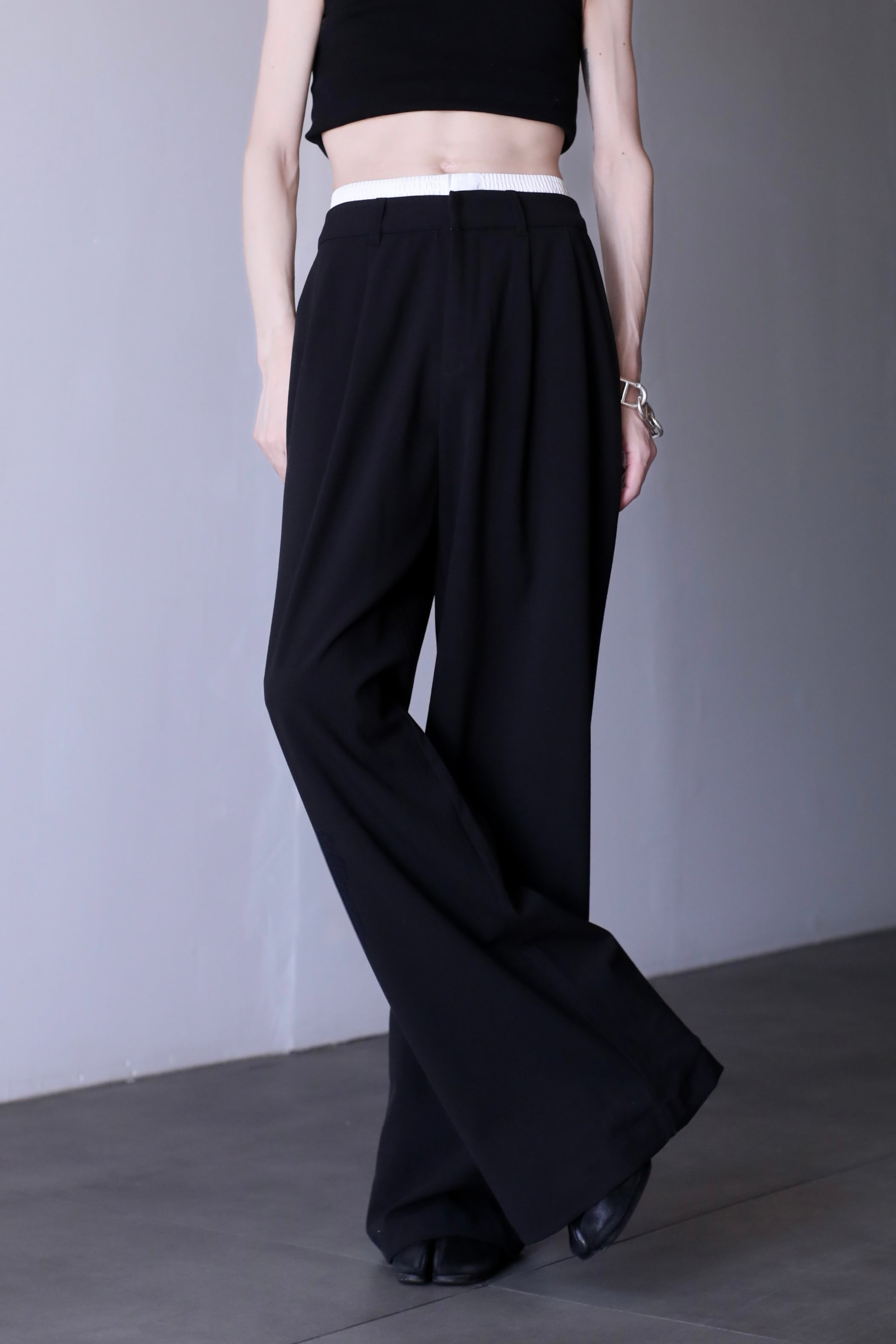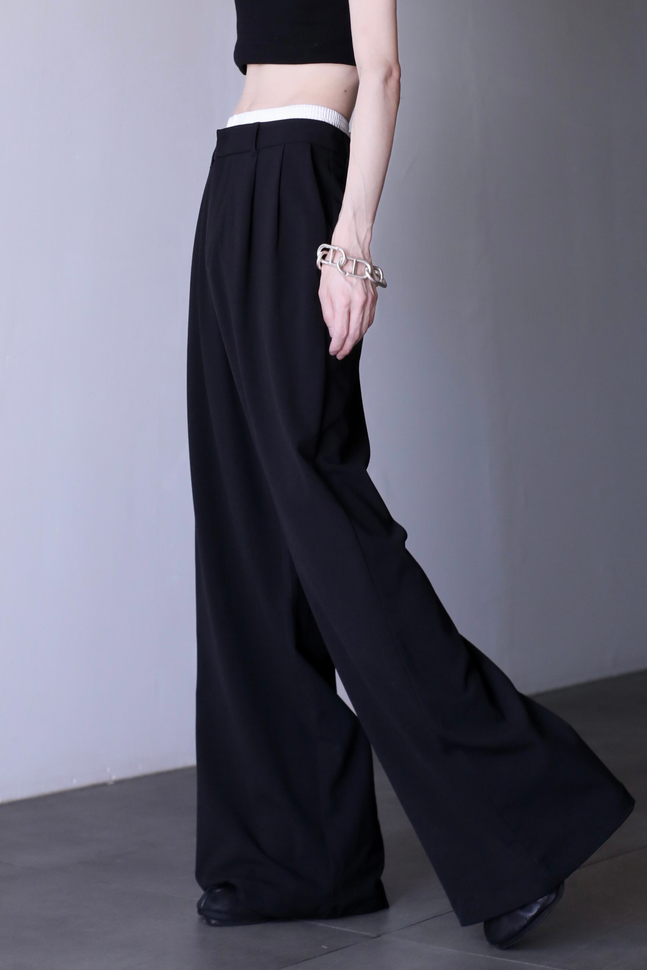 waist layered design 2tuck wide straight slacks