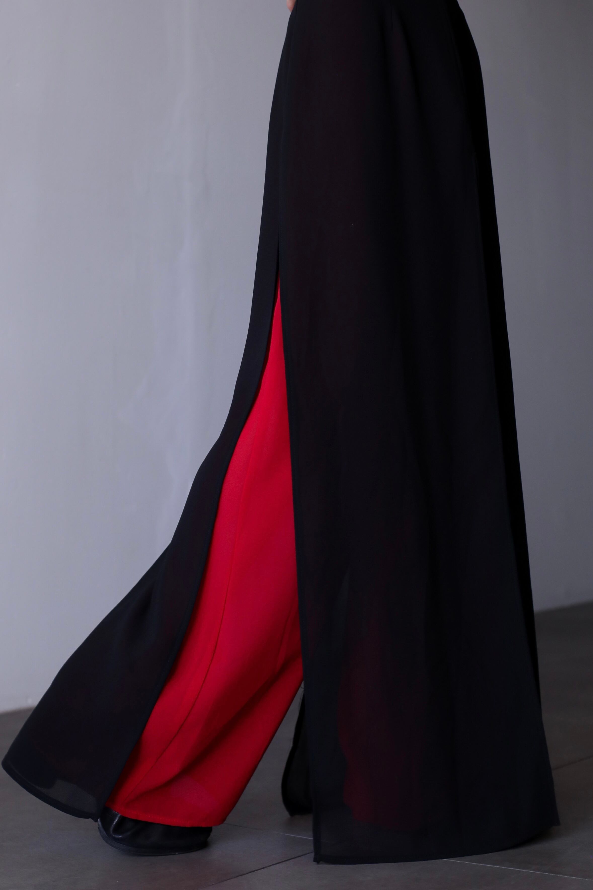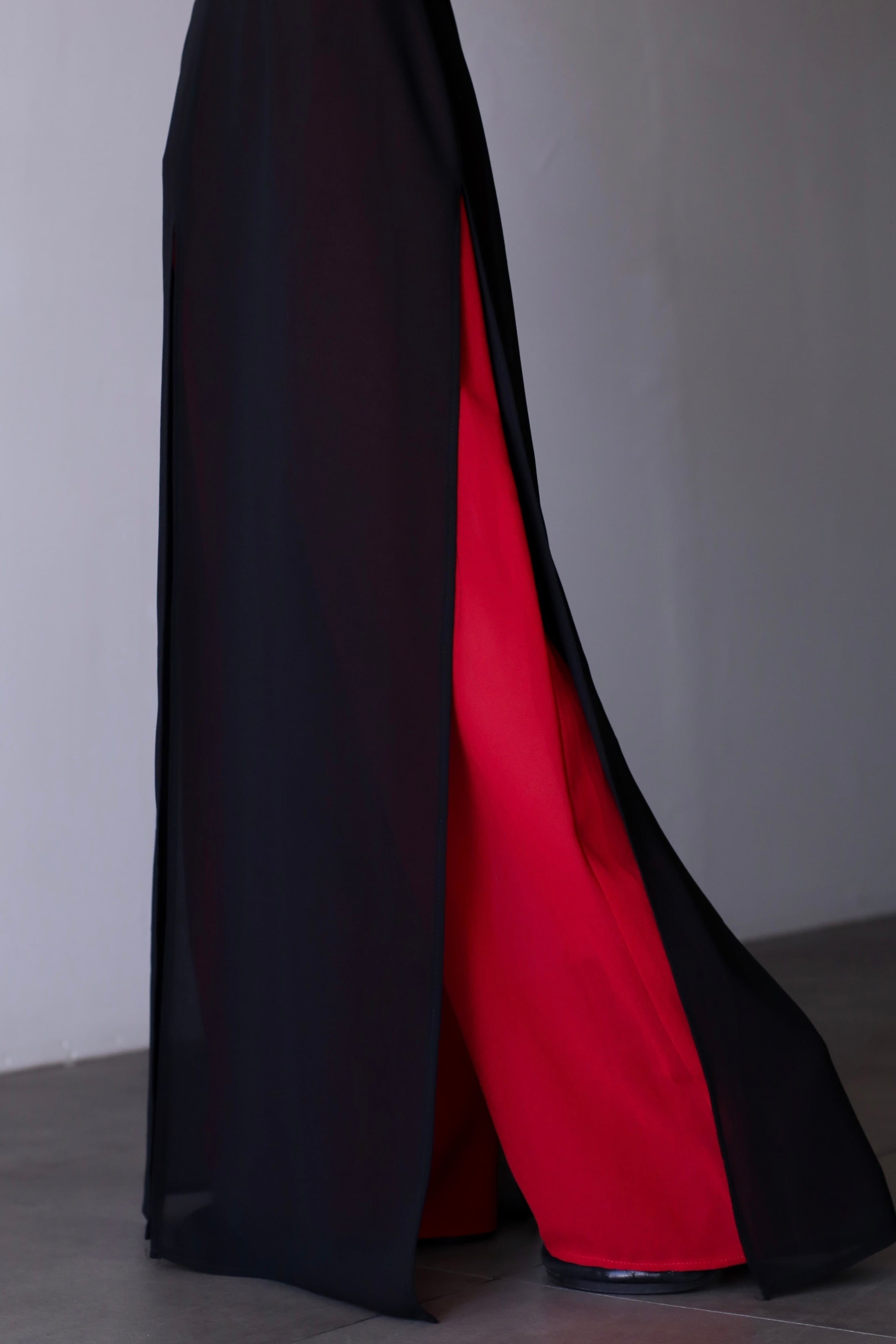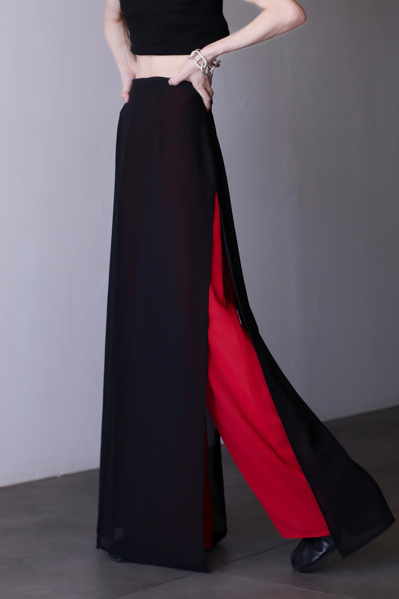 1980s sheer fabric "hakama" wide silhouette vivid color layered pants Made In Canada