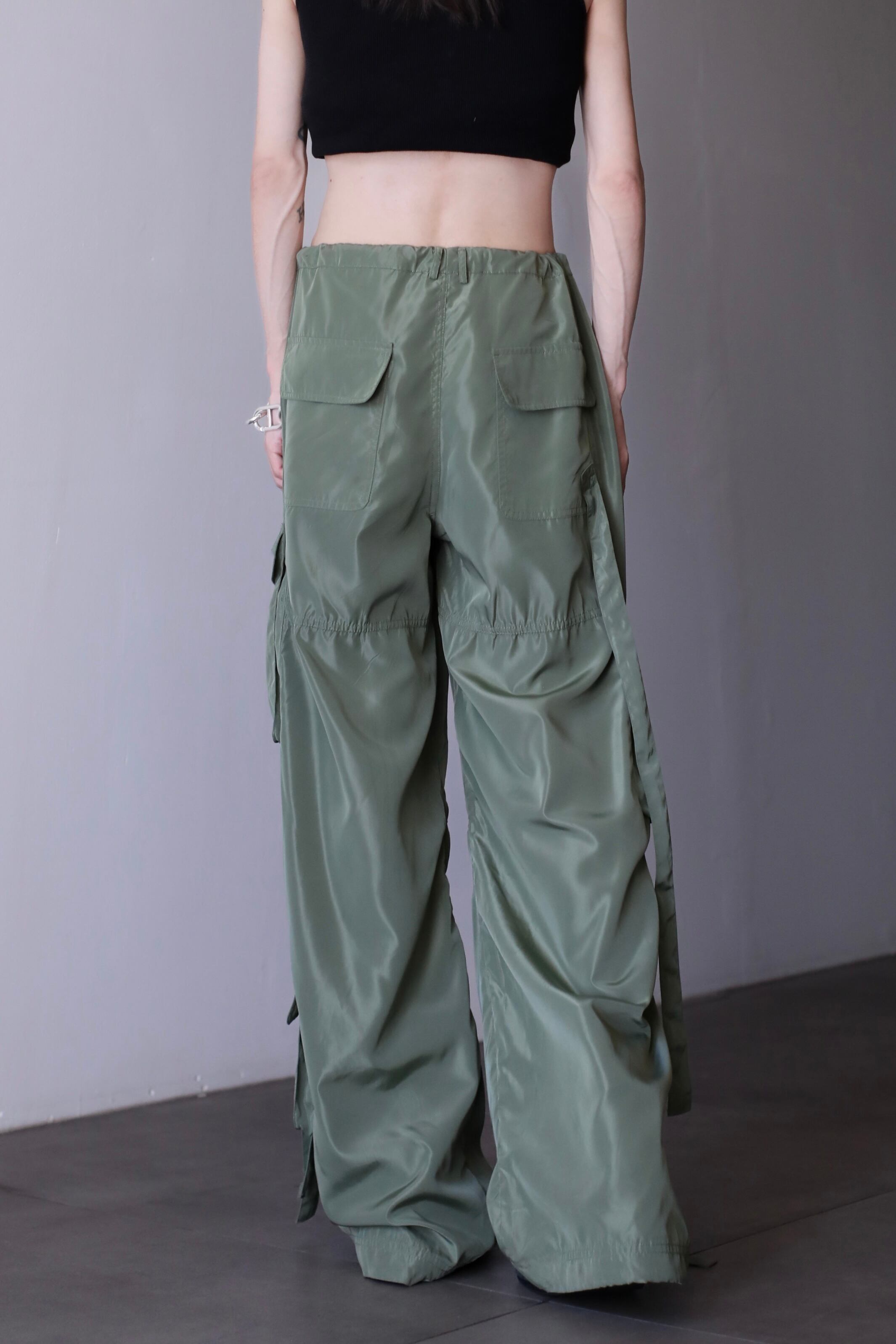 nylon tech drawstrings wide straight parachute pants