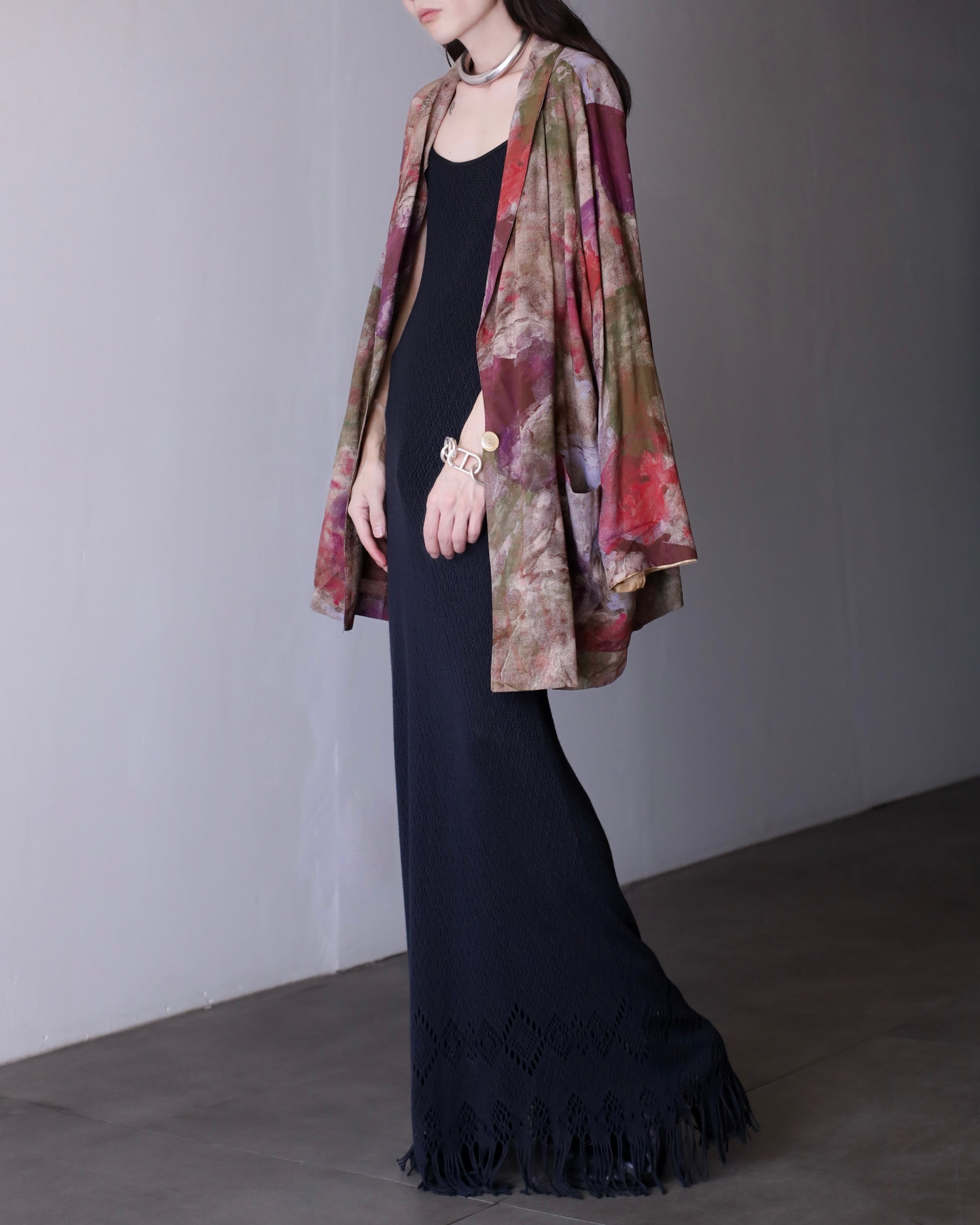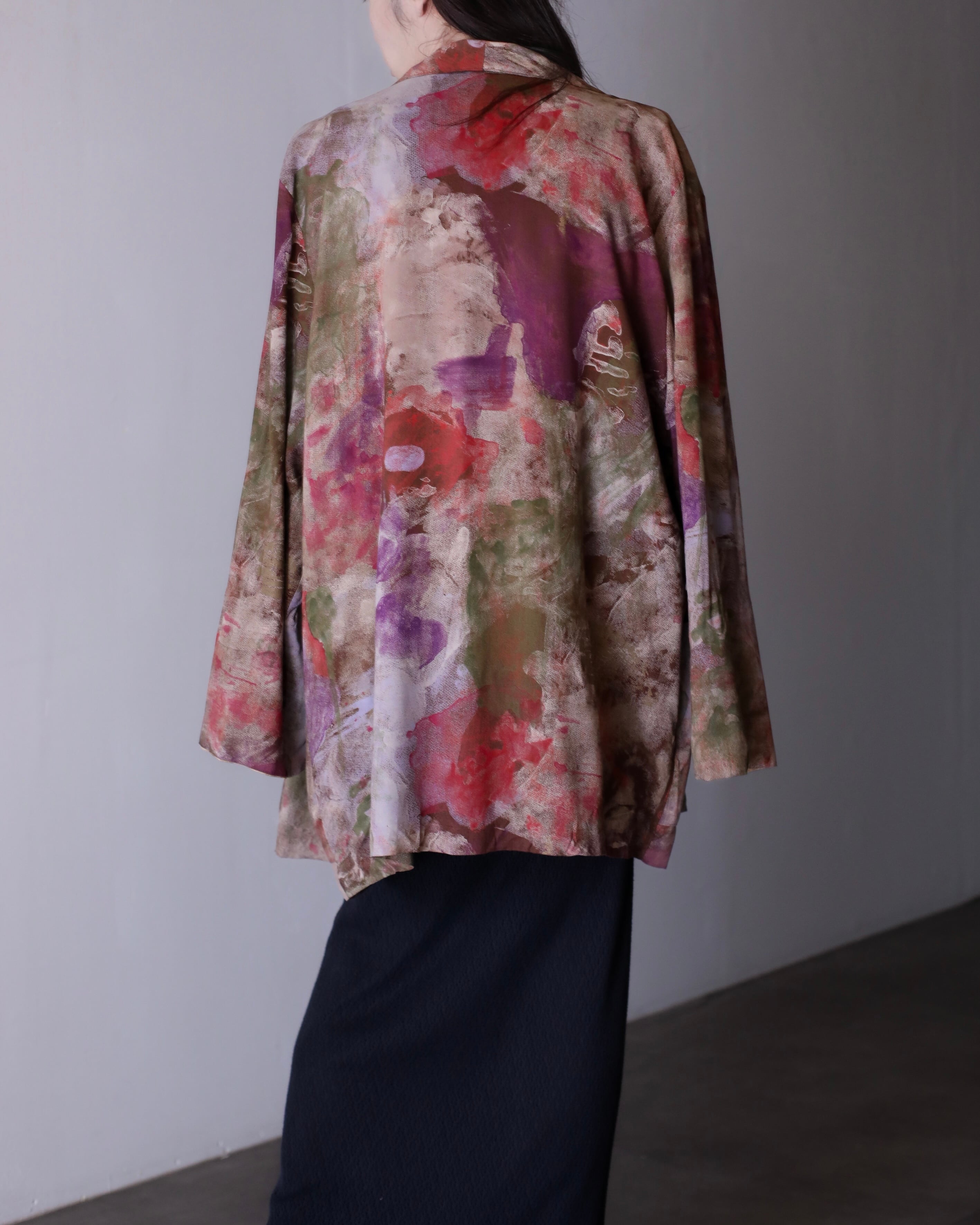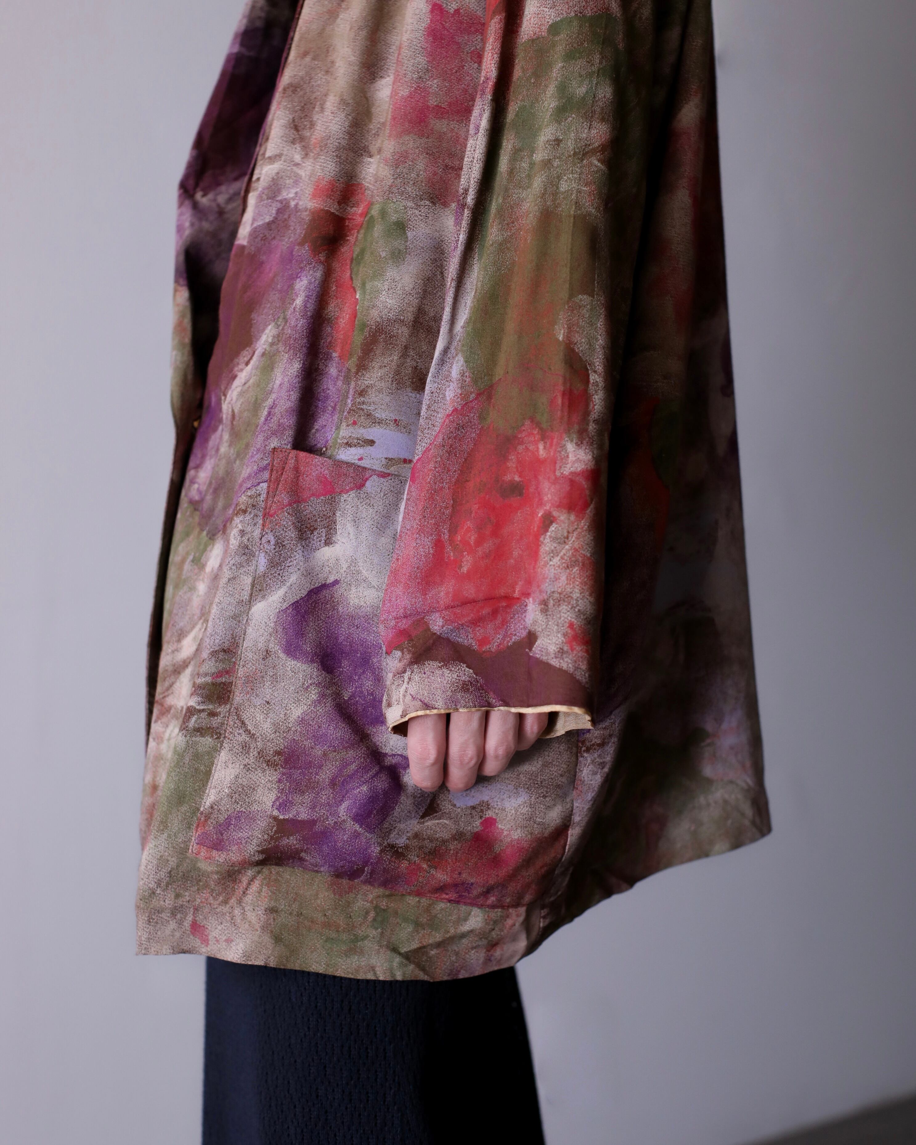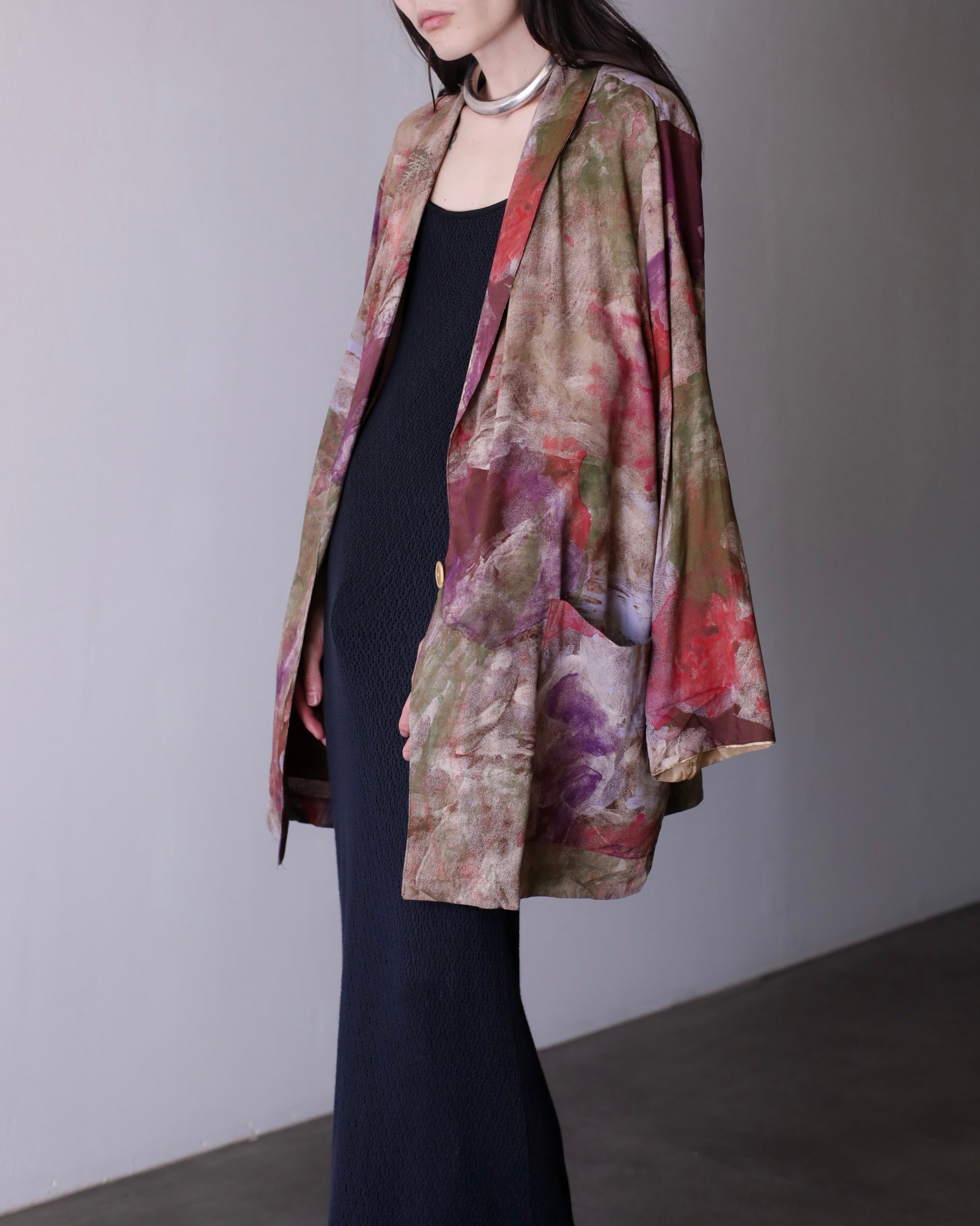柄物ながら圧がなく、羽織った感じに秋を感じる色味。